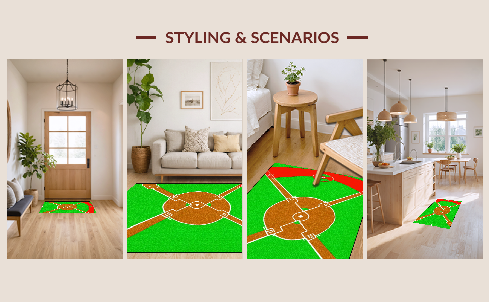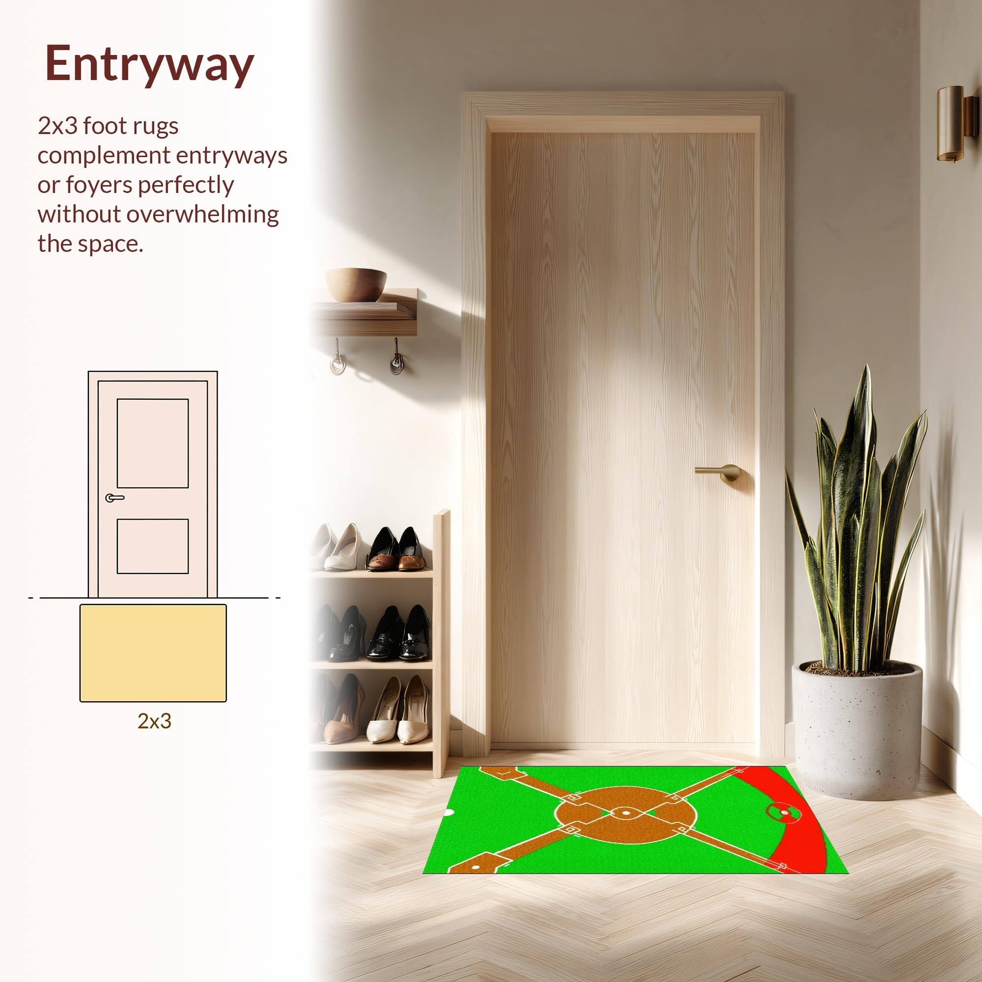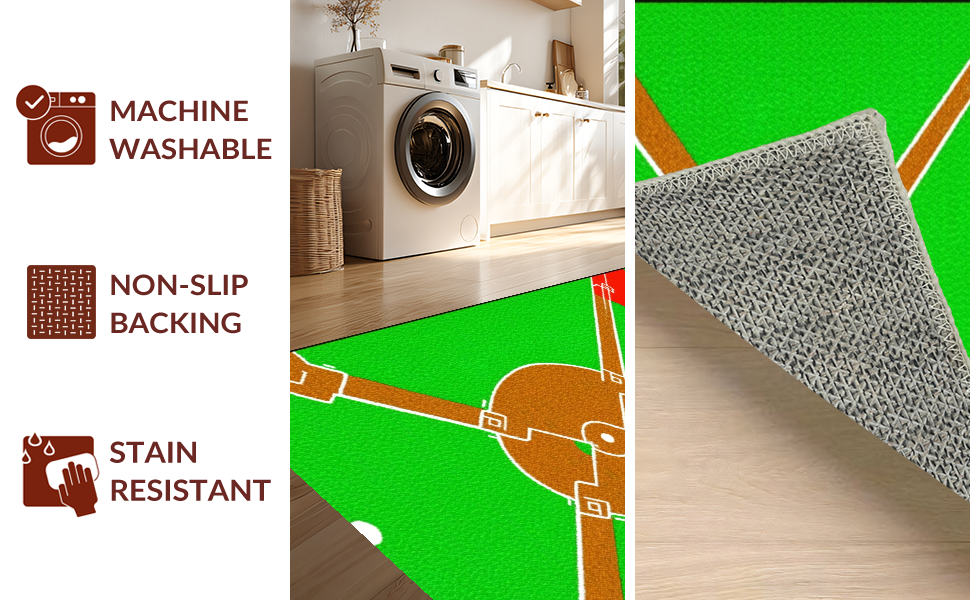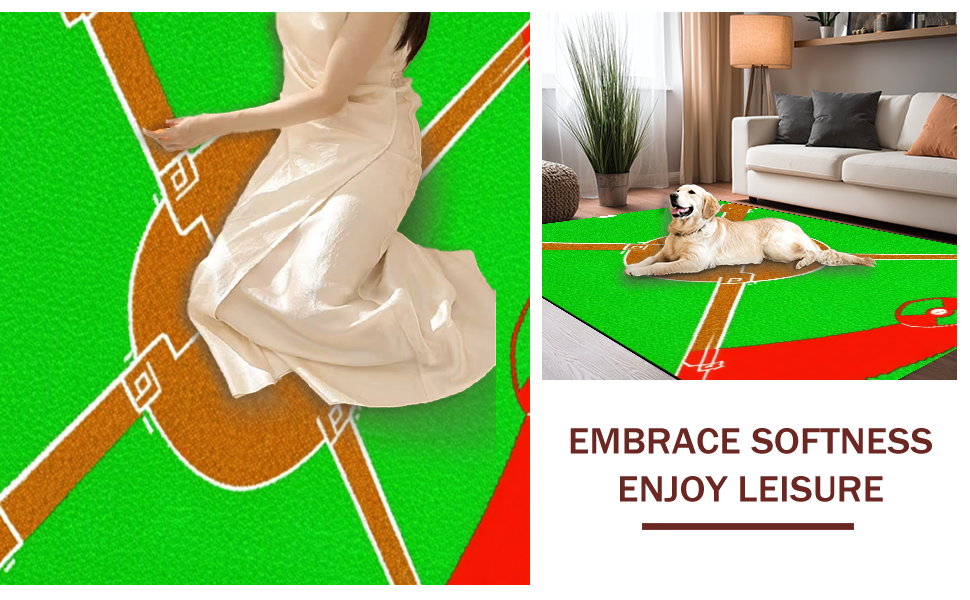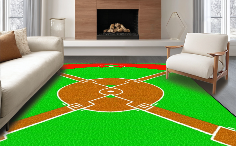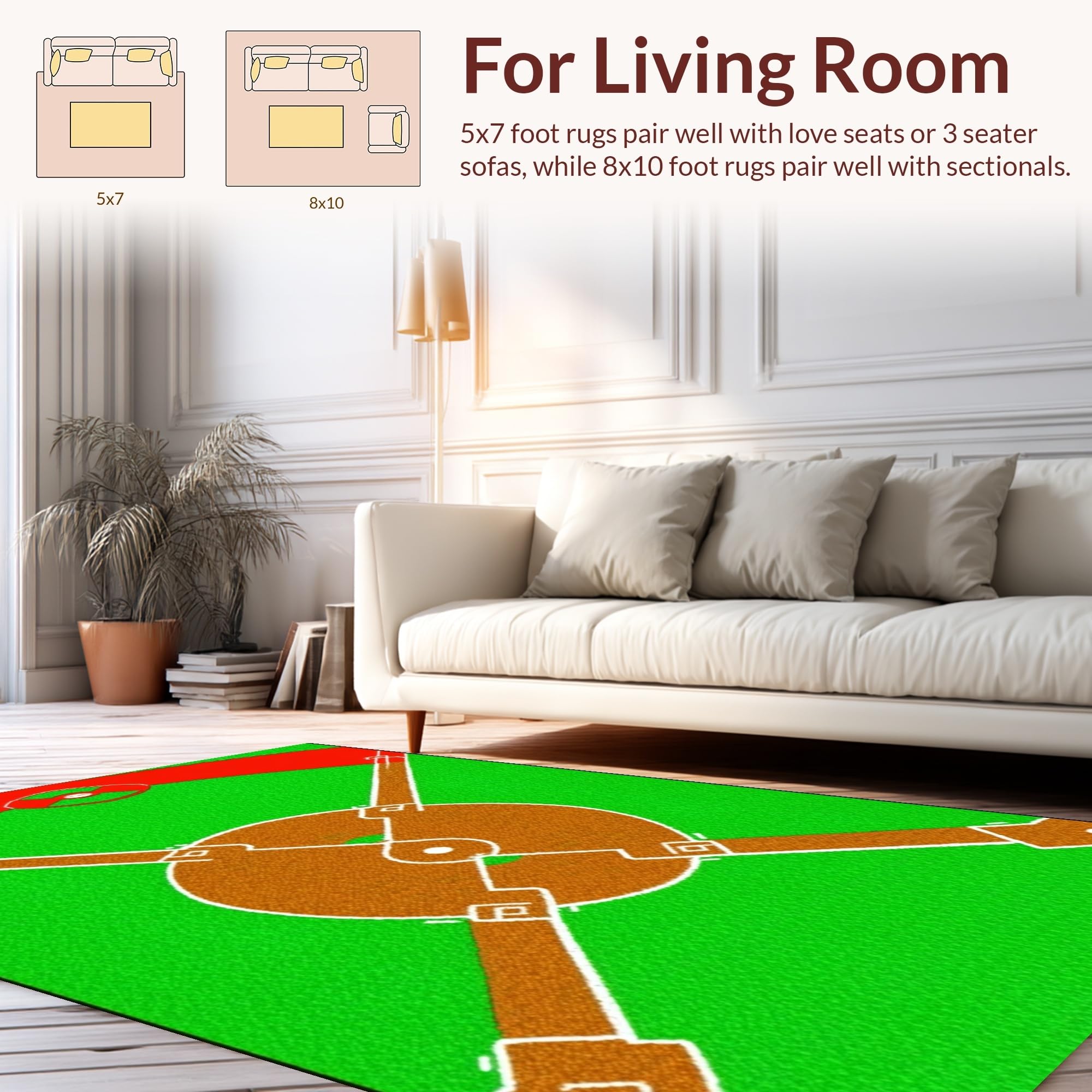 Ultra Soft Area Rug, Non Slip, Stain Resistant, Washable Area Rugs for Living Room, Bedroom, Energetic Baseball Inspired Design(Green) Overview: