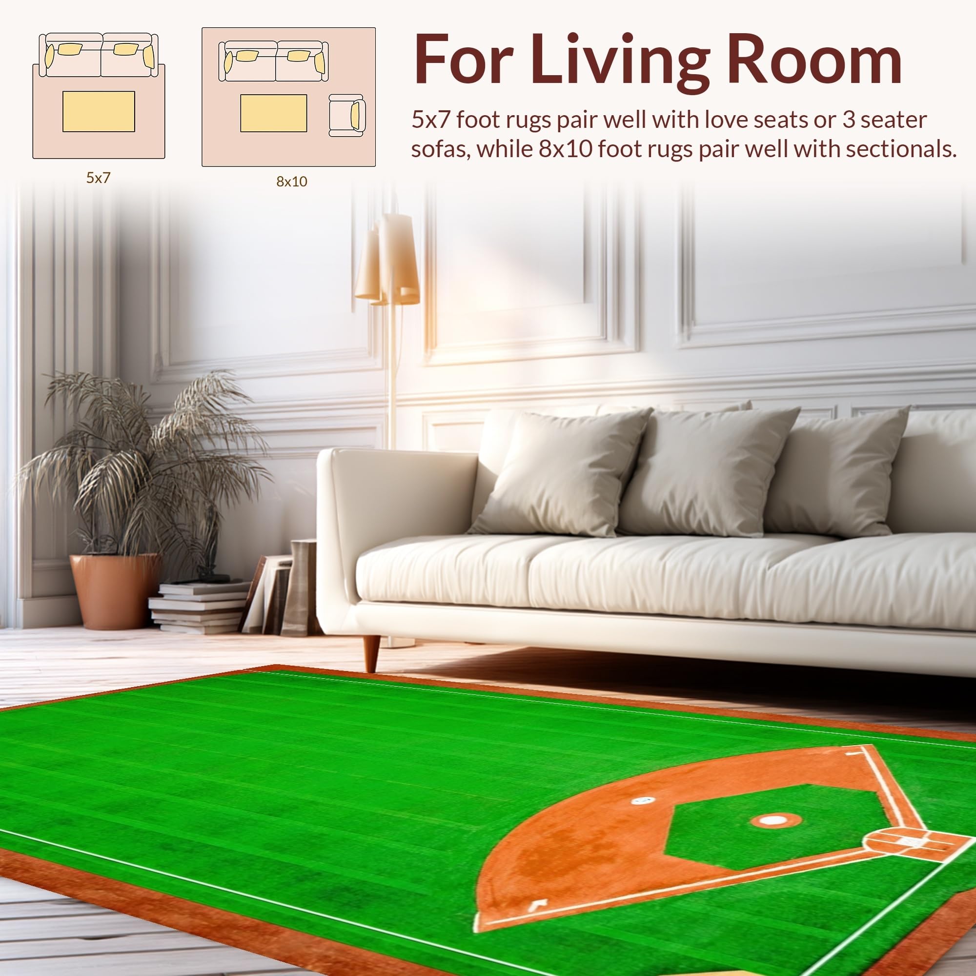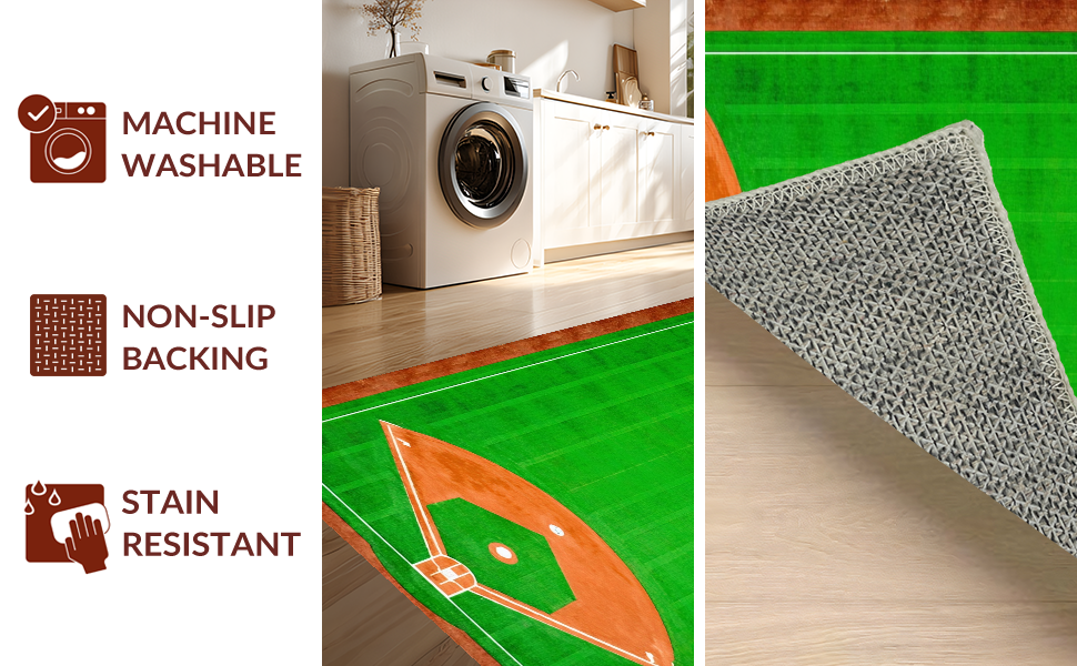 Ultra Soft Area Rug, Non Slip, Stain Resistant, Washable Area Rugs for Living Room, Bedroom, Energetic Boys' Sports Aesthetic Piece(Green) Overview: