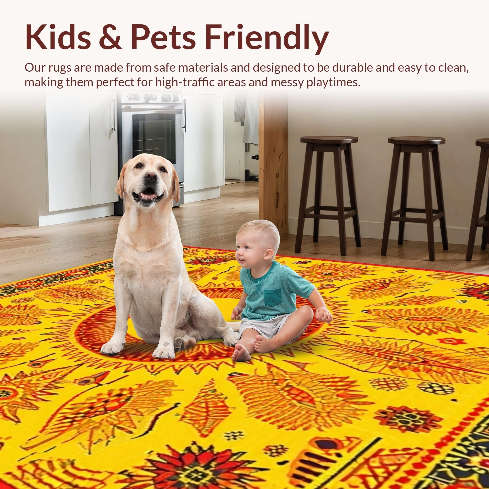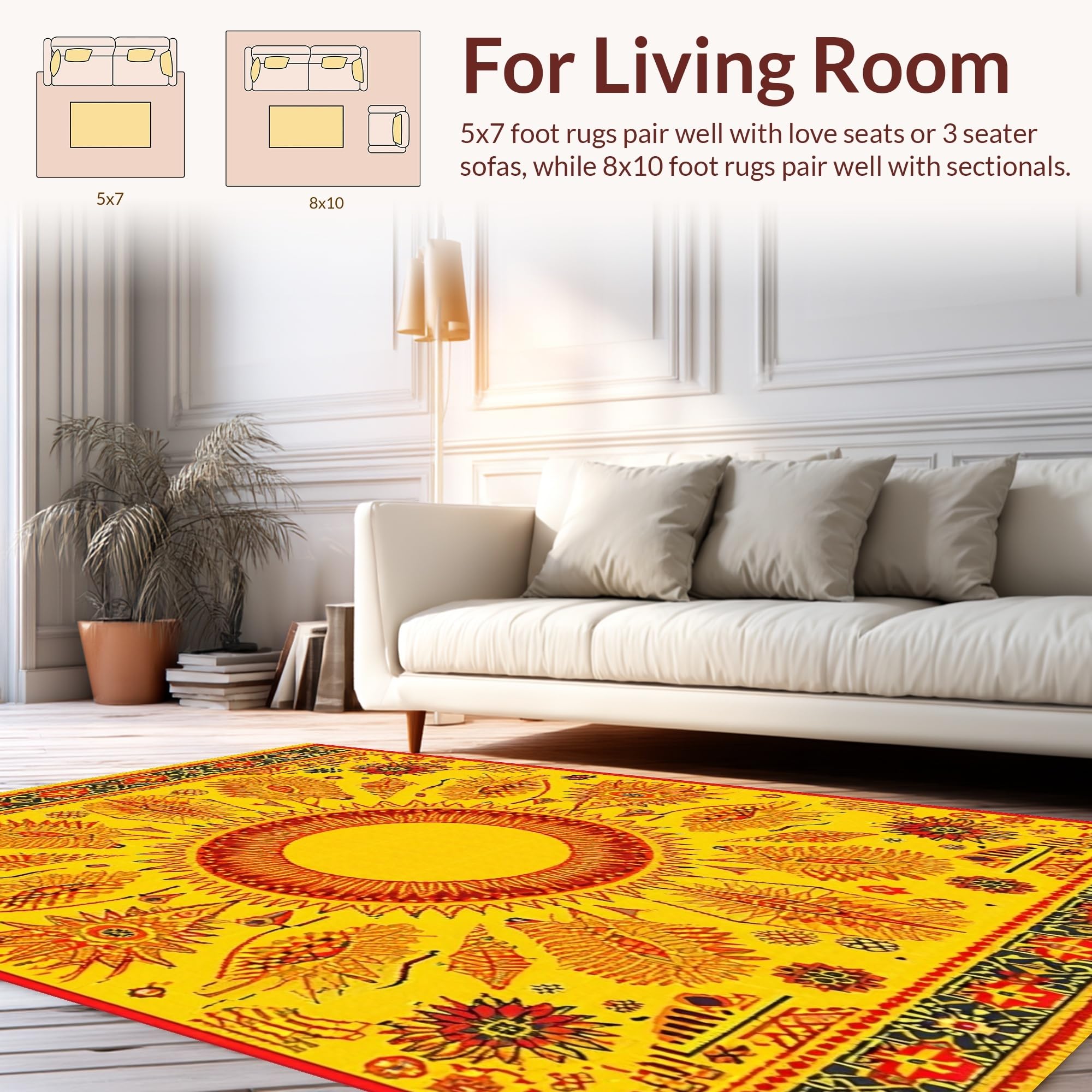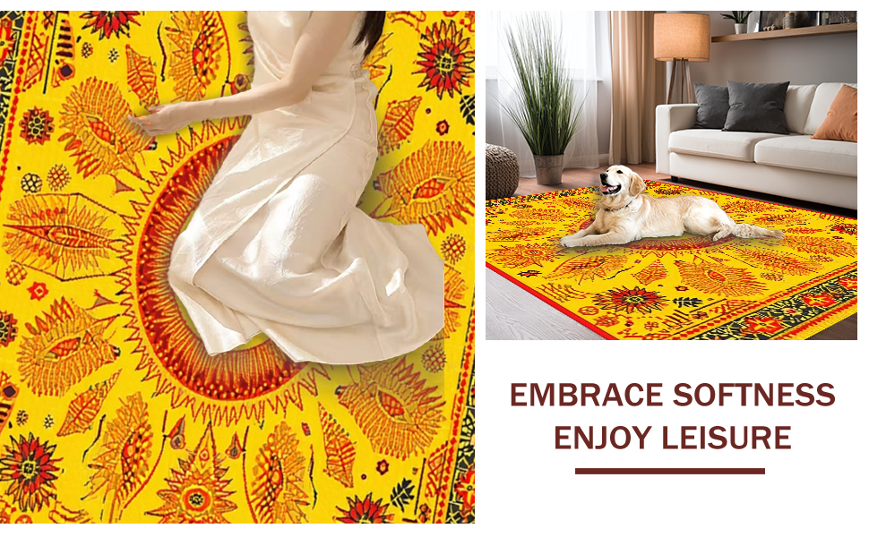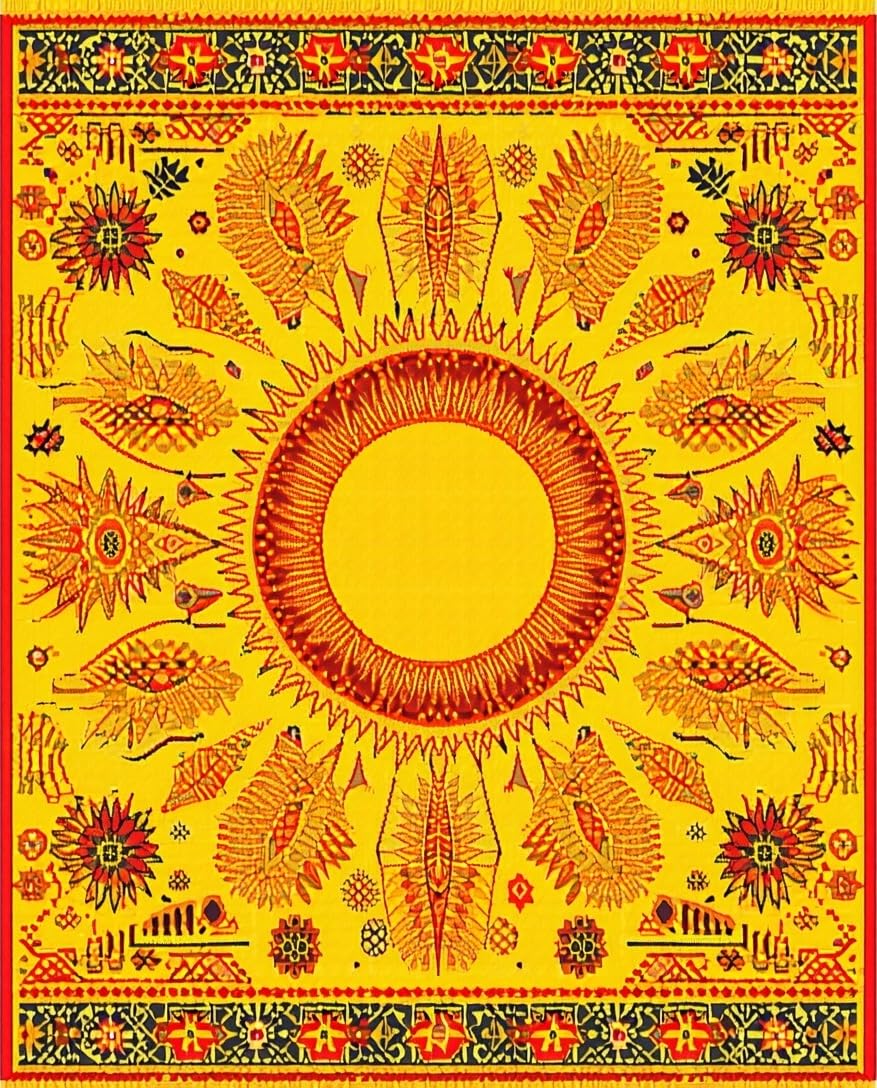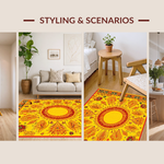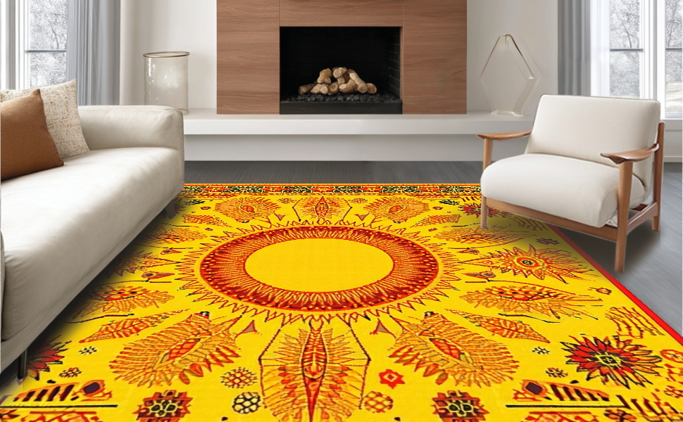Ultra Soft Area Rug, Non Slip, Stain Resistant, Washable Area Rugs for Living Room, Bedroom, Energetic Celestial Round Arrangement(Yellow) Overview: