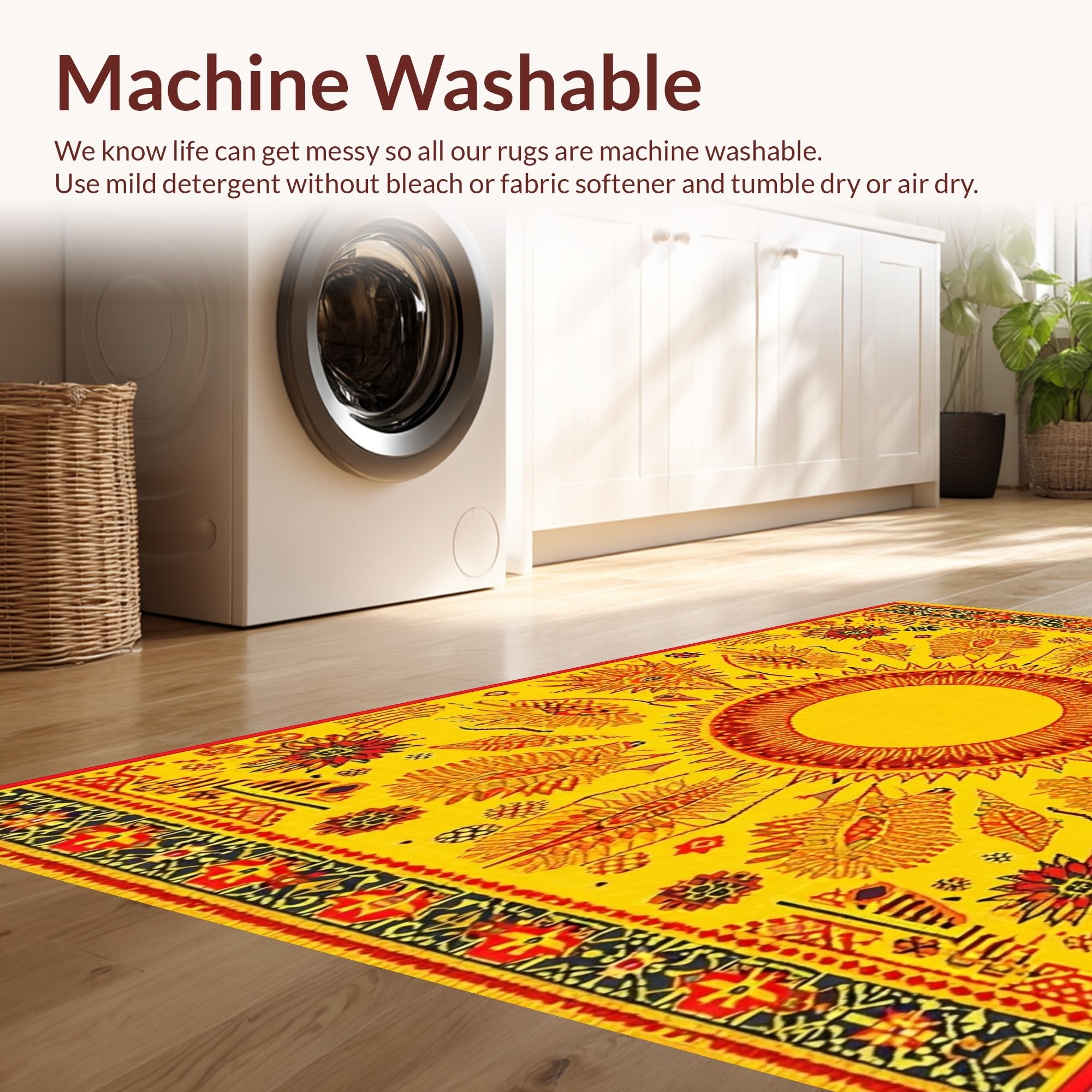 - Machine Washable: Our rugs can be easily thrown in the wash machine.