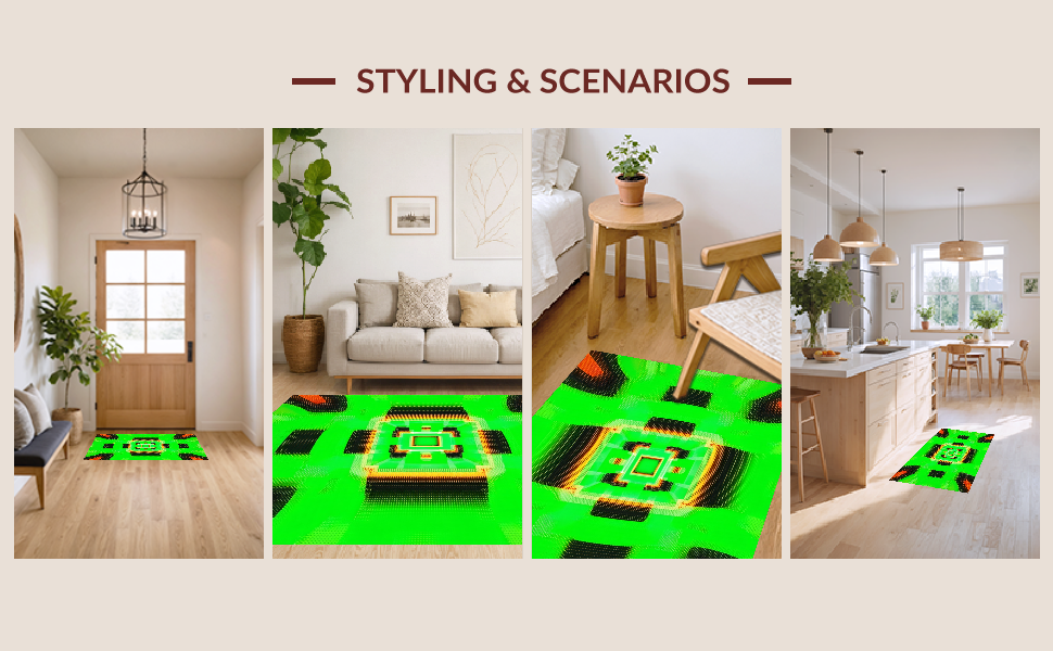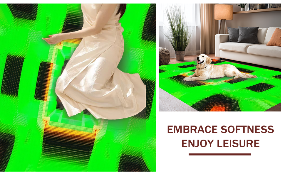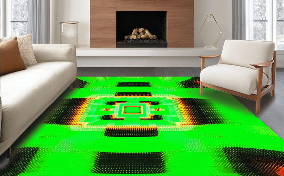 Ultra Soft Area Rug, Non Slip, Stain Resistant, Washable Area Rugs for Living Room, Bedroom, Energetic Color Burst Design(Green) Overview: