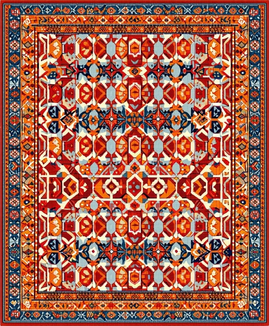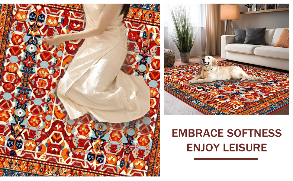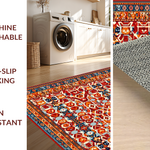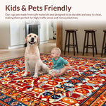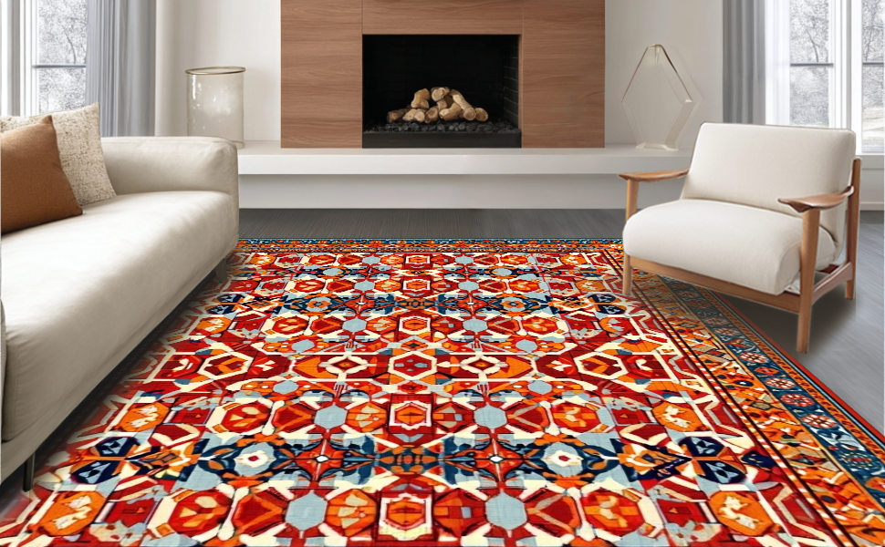 Ultra Soft Area Rug, Non Slip, Stain Resistant, Washable Area Rugs for Living Room, Bedroom, Energetic Colorful Medallion Theme(Red) Overview: