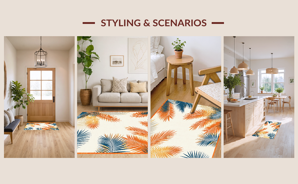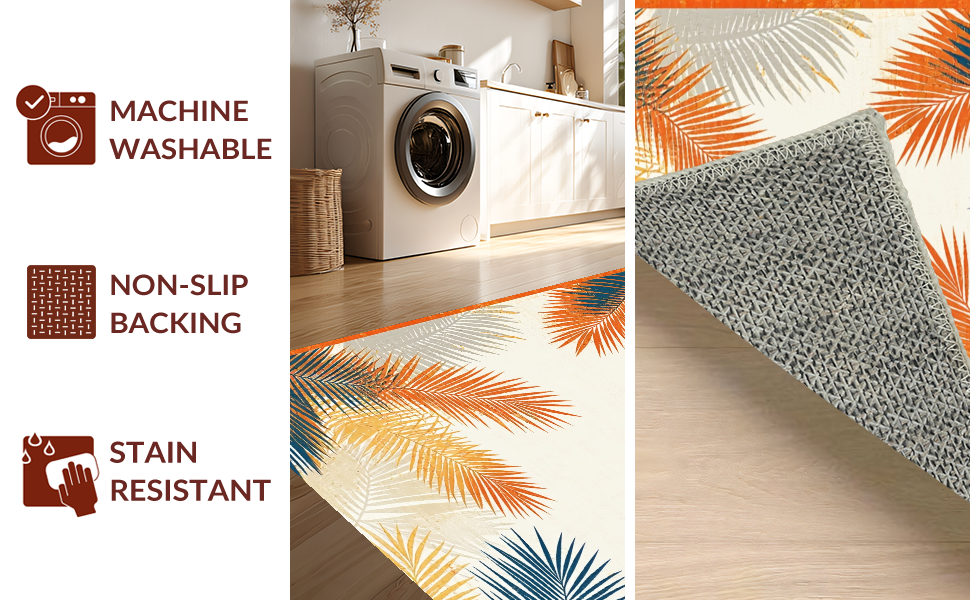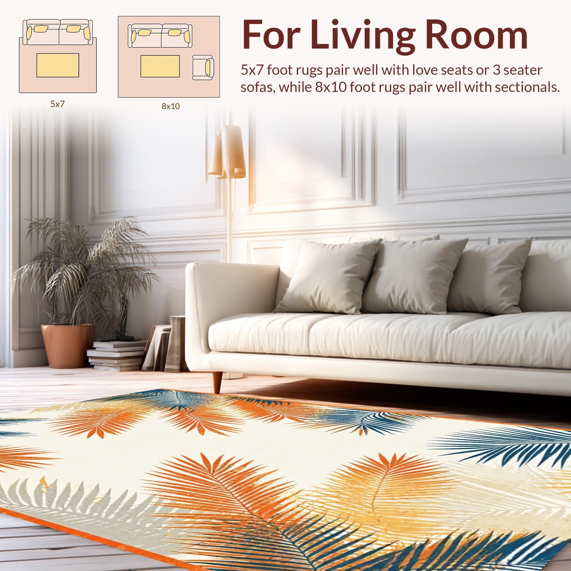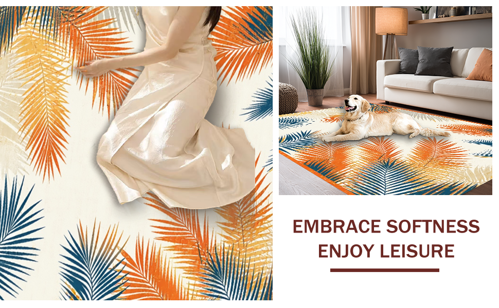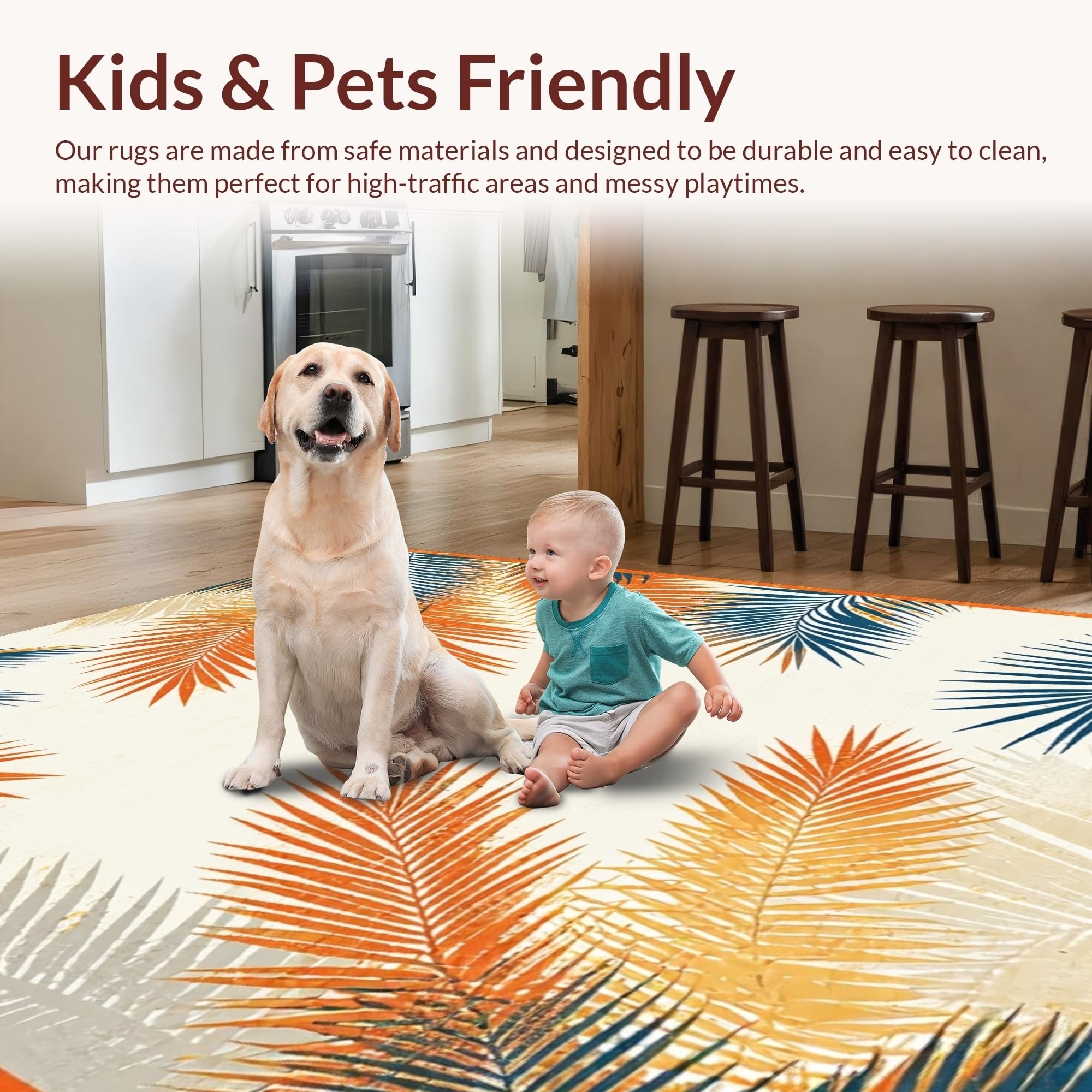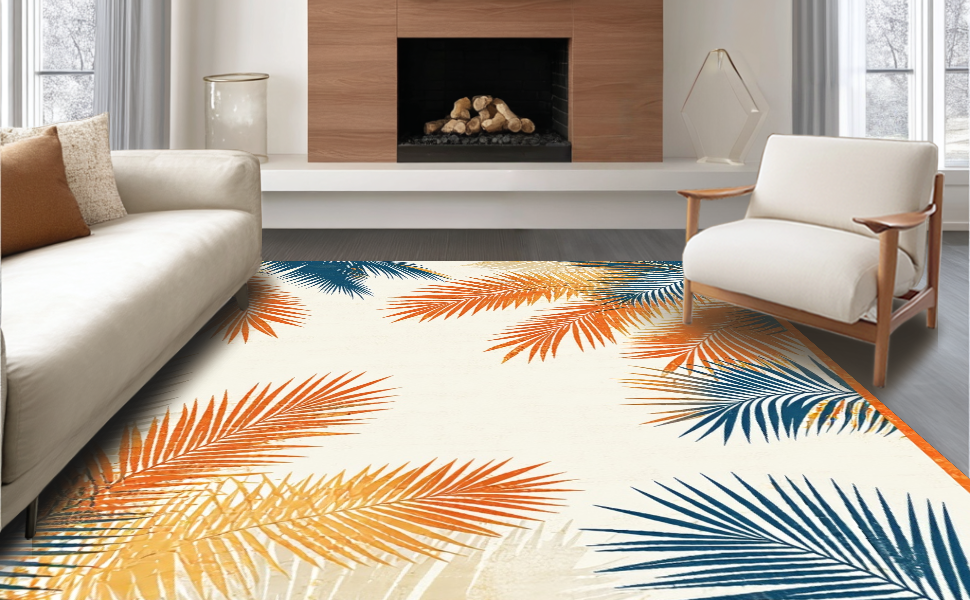 Ultra Soft Area Rug, Non Slip, Stain Resistant, Washable Area Rugs for Living Room, Bedroom, Energetic Cream and Coral Theme(Orange) Overview: