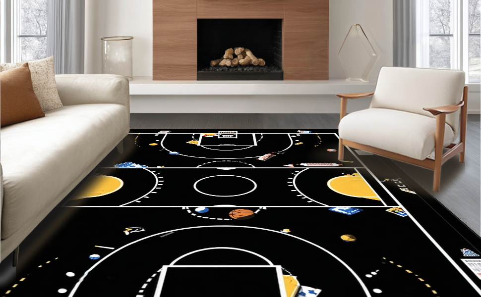 Ultra Soft Area Rug, Non Slip, Stain Resistant, Washable Area Rugs for Living Room, Bedroom, Energetic Geometric Ball Illustration(Black) Overview: