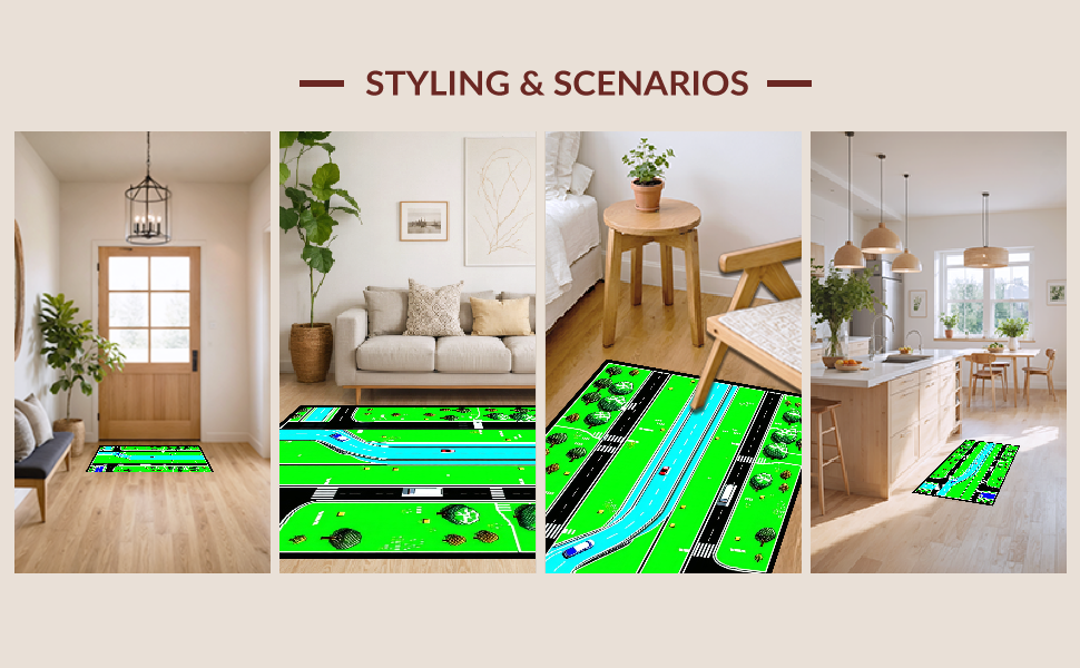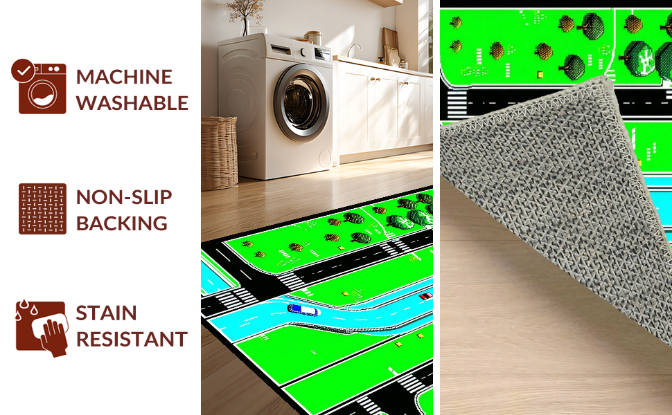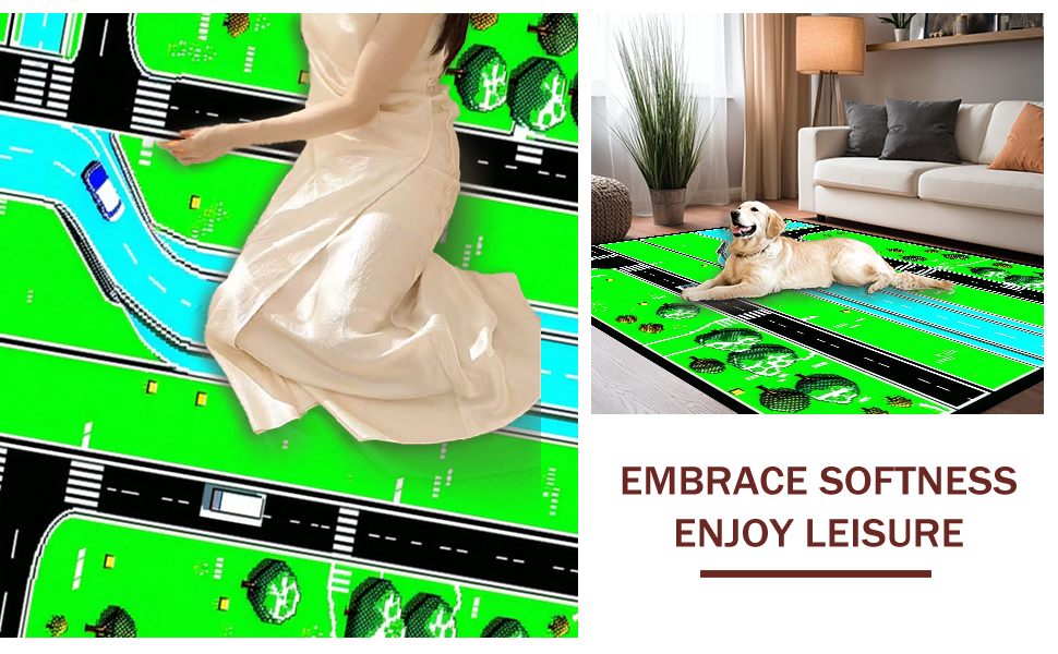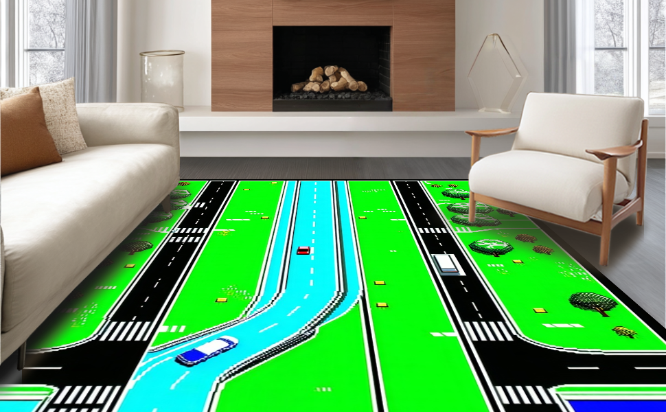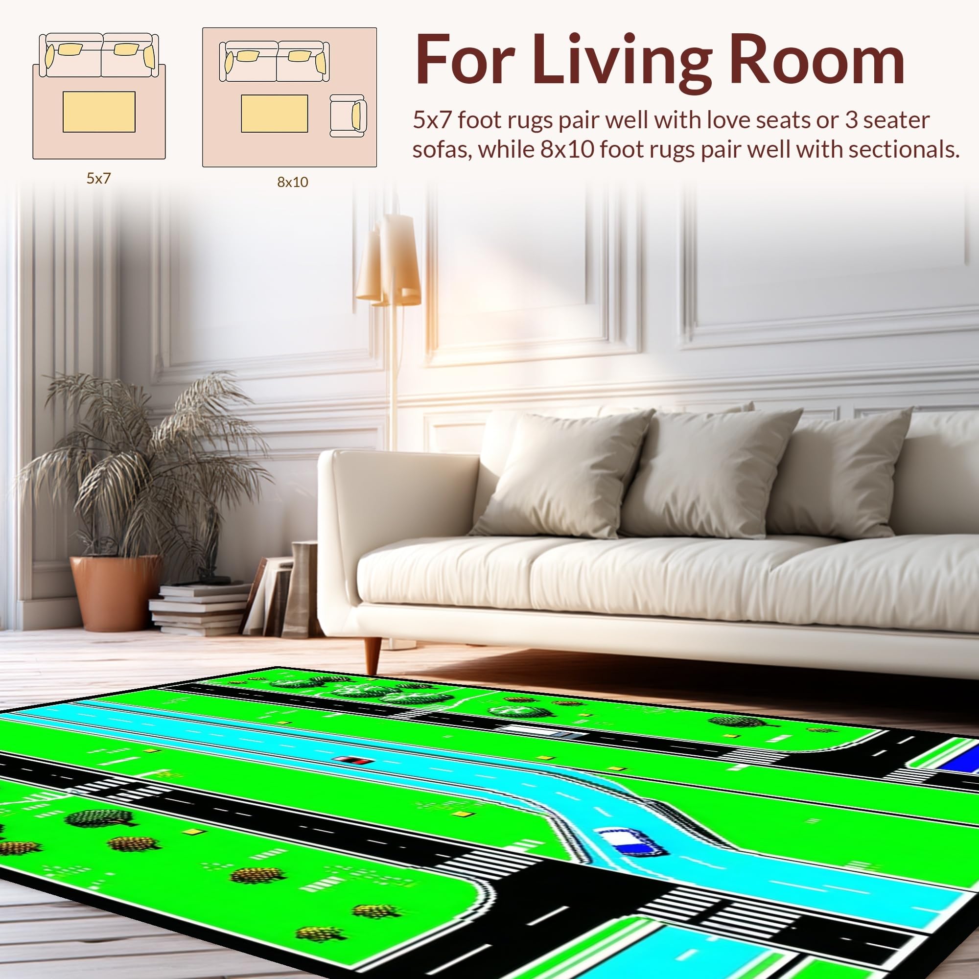 Ultra Soft Area Rug, Non Slip, Stain Resistant, Washable Area Rugs for Living Room, Bedroom, Energetic Landscape Play Zone Design(Green) Overview: