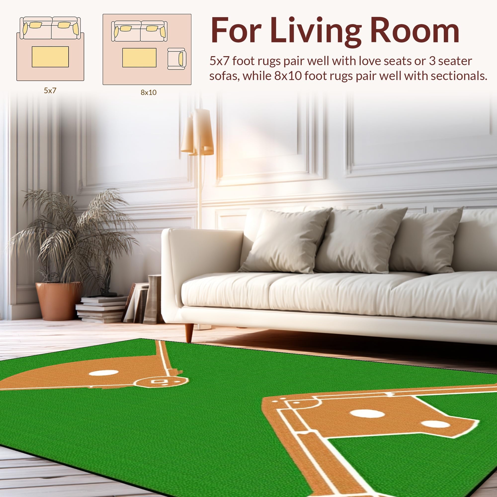 Ultra Soft Area Rug, Non Slip, Stain Resistant, Washable Area Rugs for Living Room, Bedroom, Energetic Modern Athletic Design Element(Green) Overview: