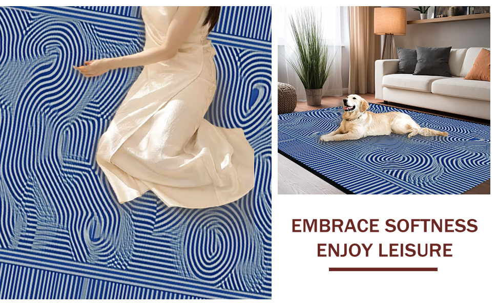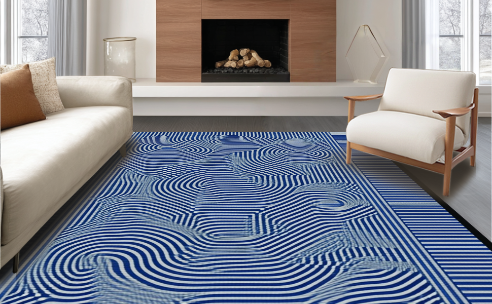 Ultra Soft Area Rug, Non Slip, Stain Resistant, Washable Area Rugs for Living Room, Bedroom, Energetic Multi-Color Spiraling Motif(Blue) Overview: