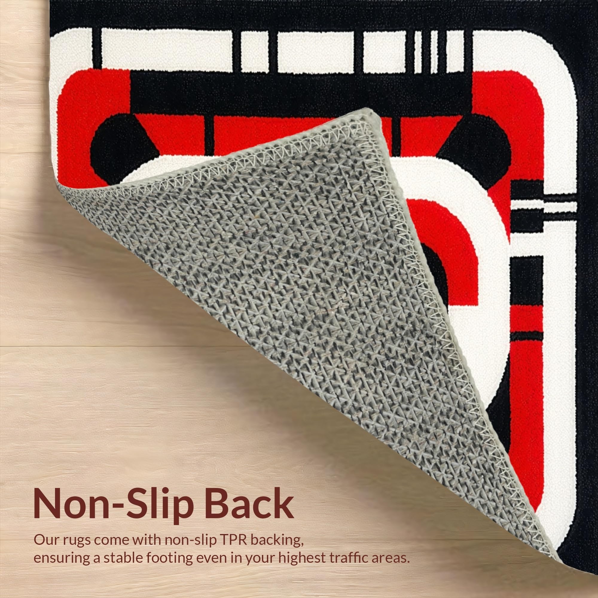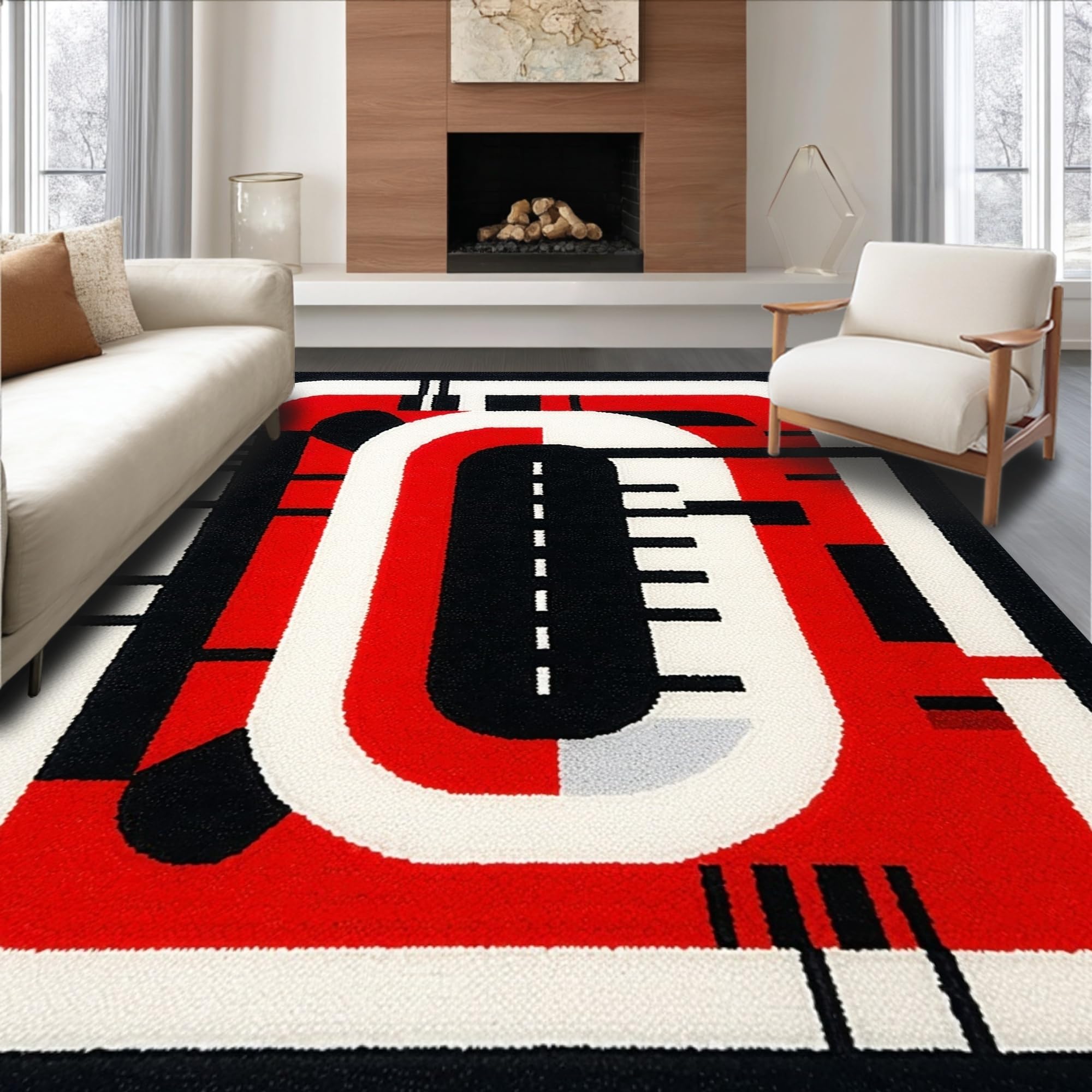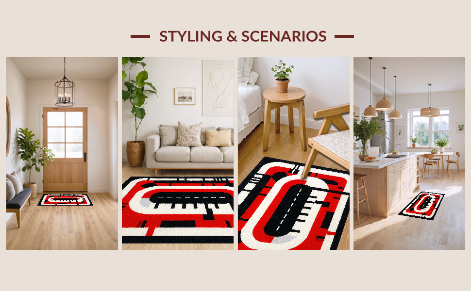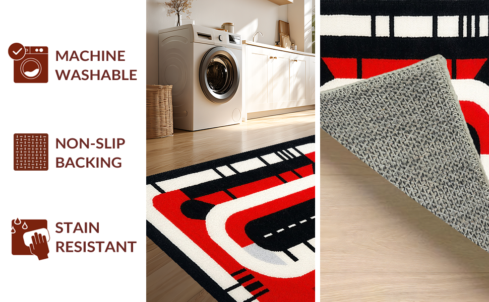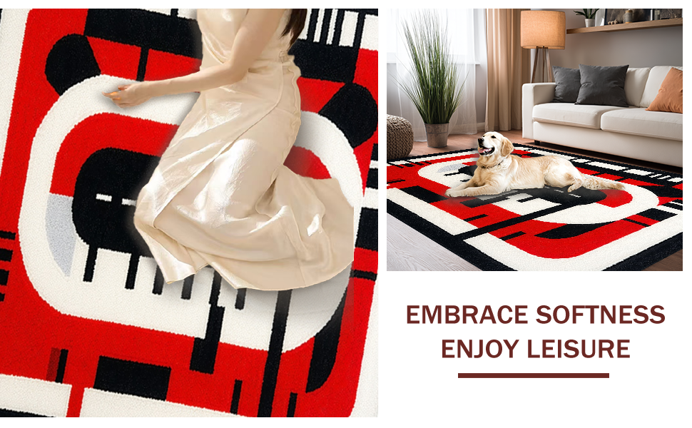Ultra Soft Area Rug, Non Slip, Stain Resistant, Washable Area Rugs for Living Room, Bedroom, Energetic Red and Black Motif(Red) Overview: