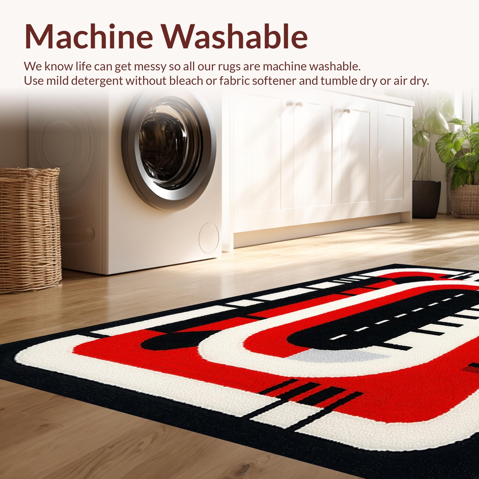 - Machine Washable: Our rugs can be easily thrown in the wash machine.