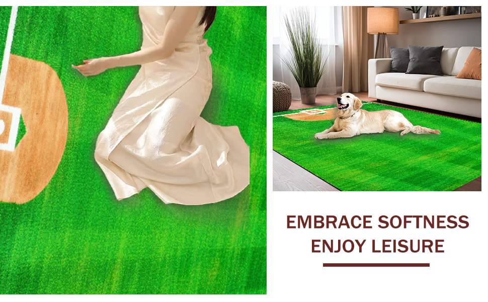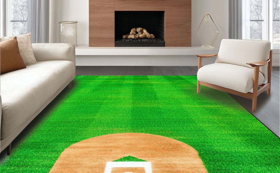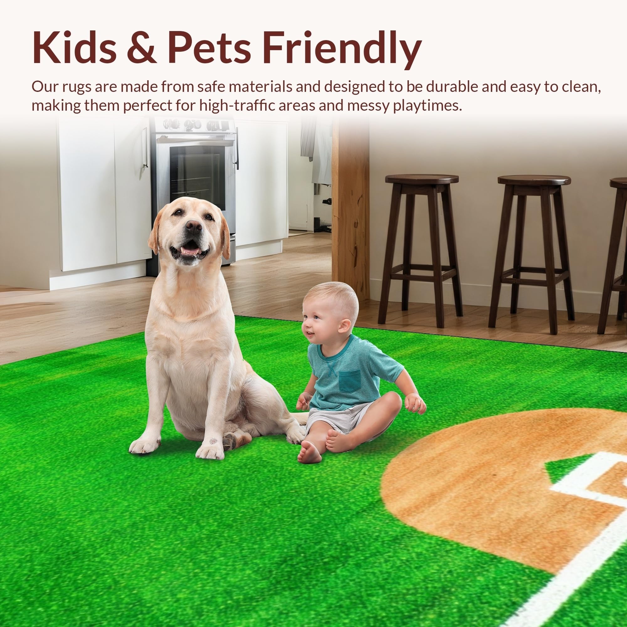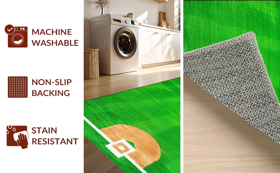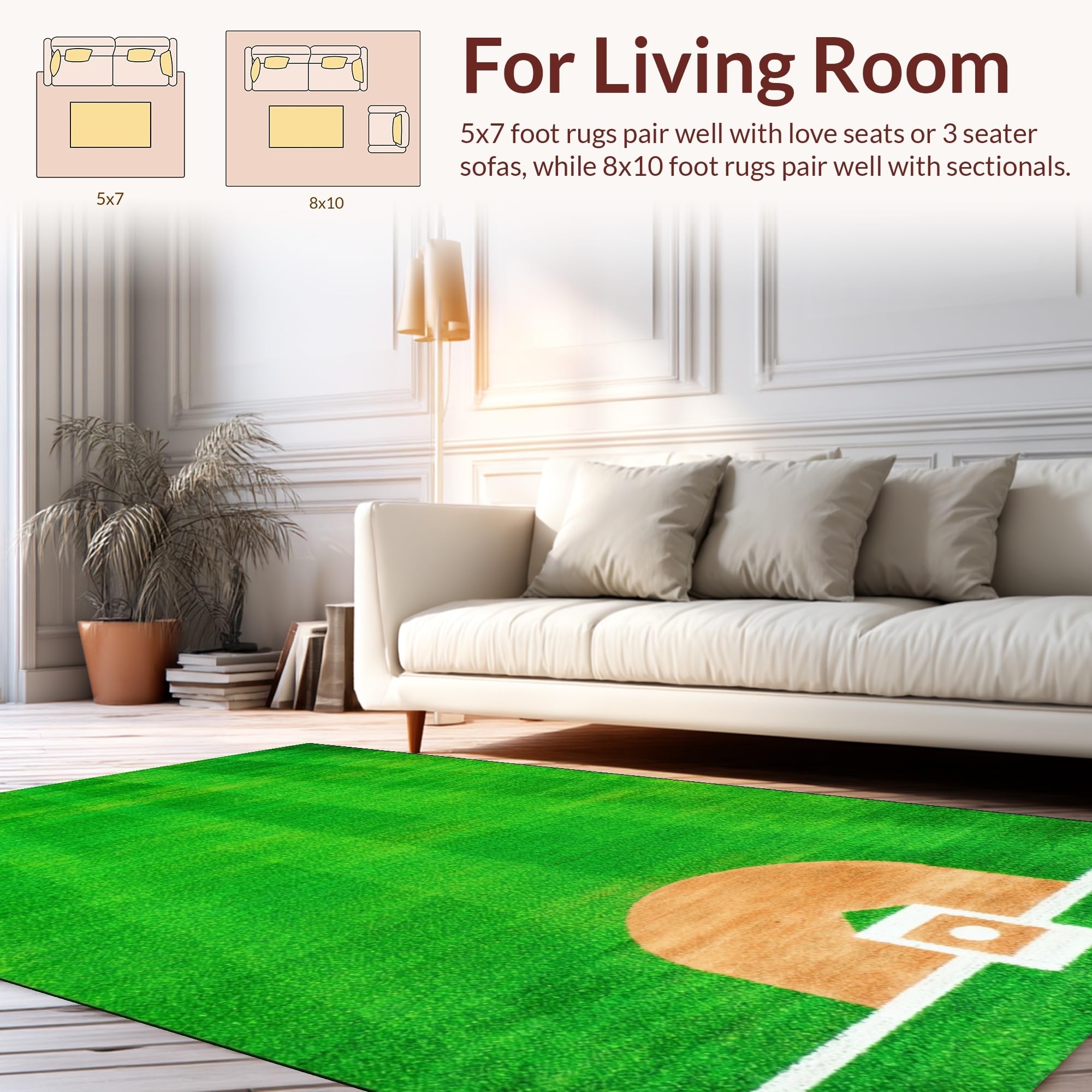 Ultra Soft Area Rug, Non Slip, Stain Resistant, Washable Area Rugs for Living Room, Bedroom, Energetic Sports Motif with White Accents(Green) Overview: