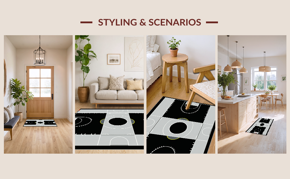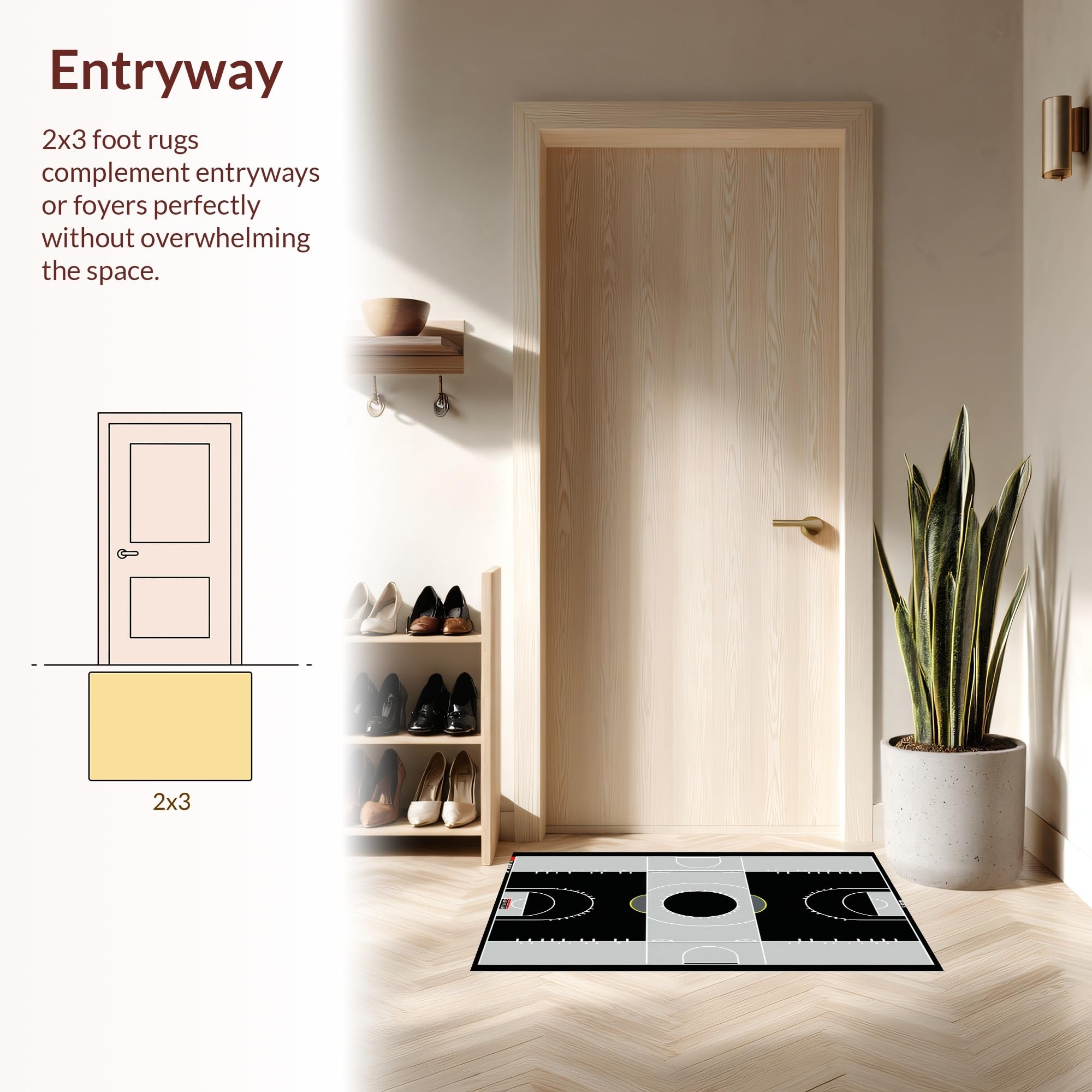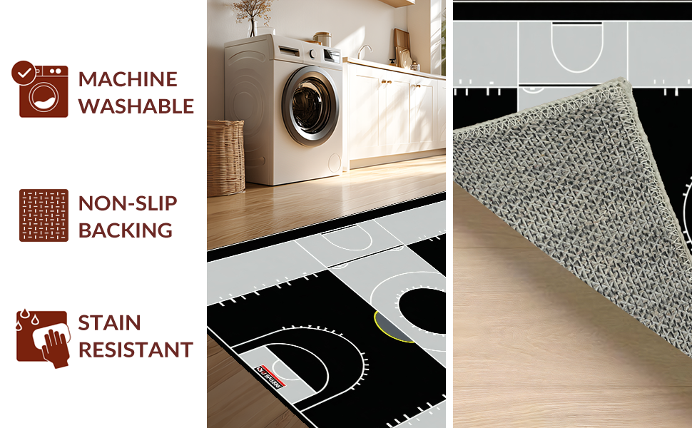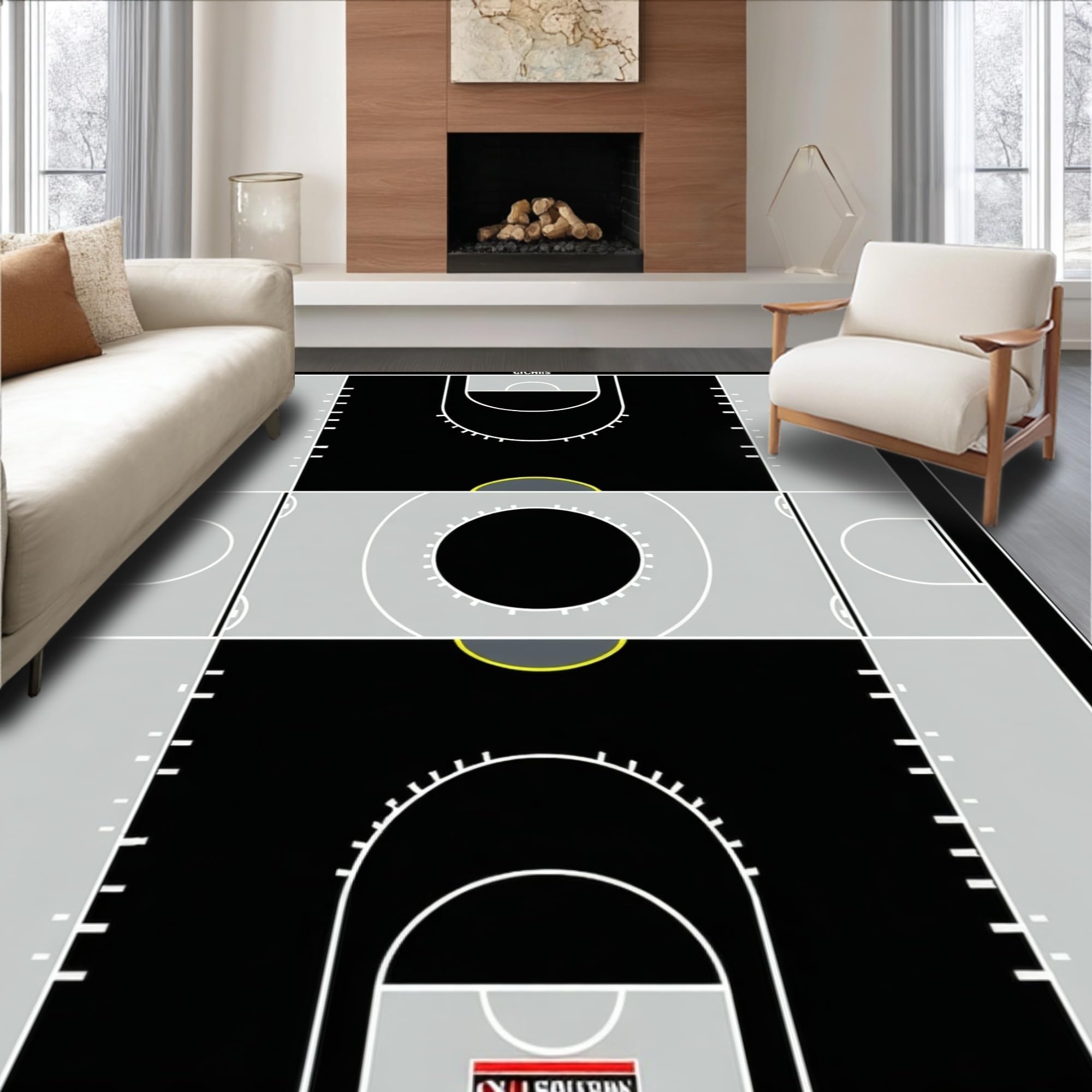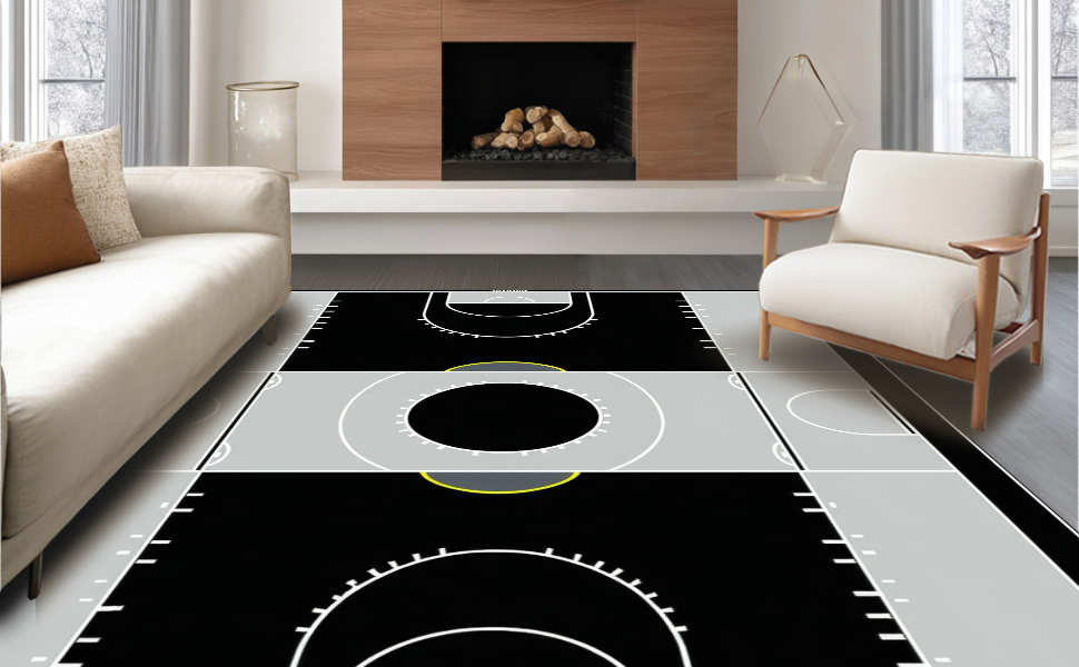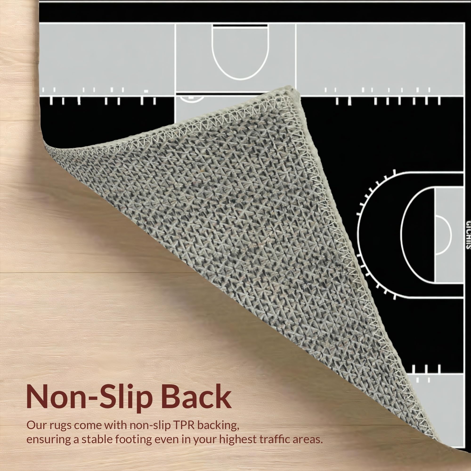 Ultra Soft Area Rug, Non Slip, Stain Resistant, Washable Area Rugs for Living Room, Bedroom, Energetic Striped Sports Motif(Black) Overview: