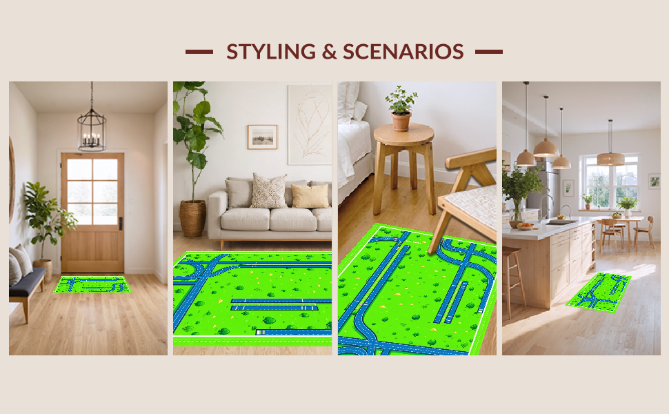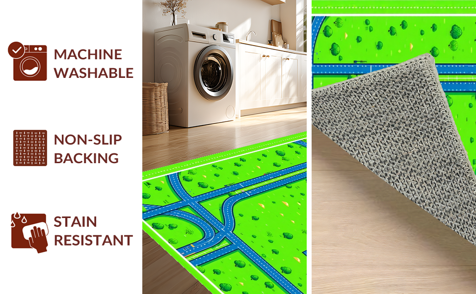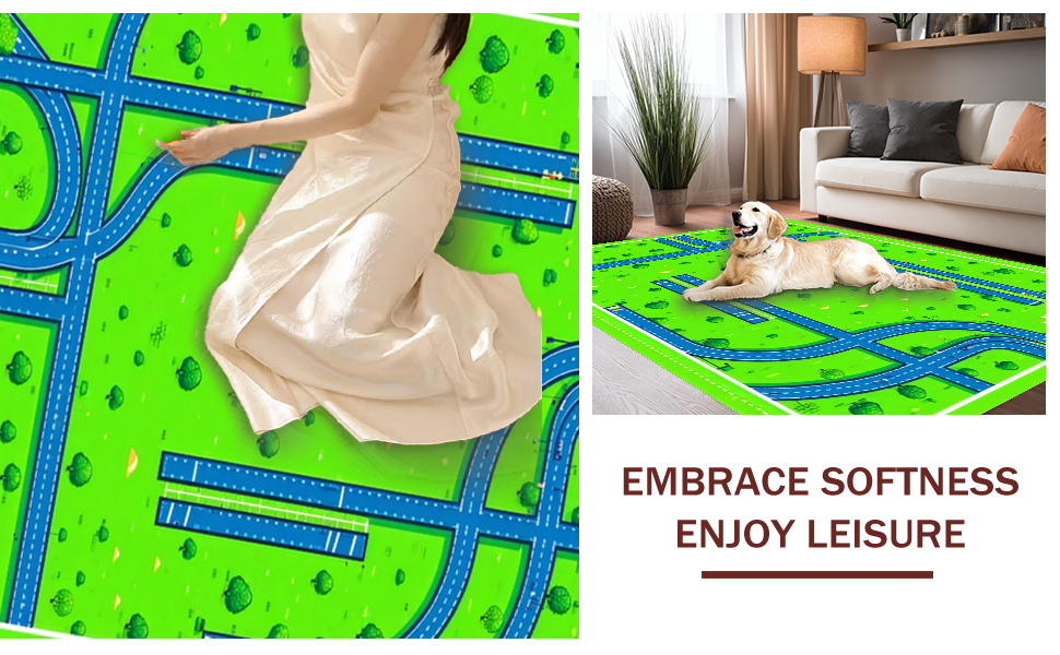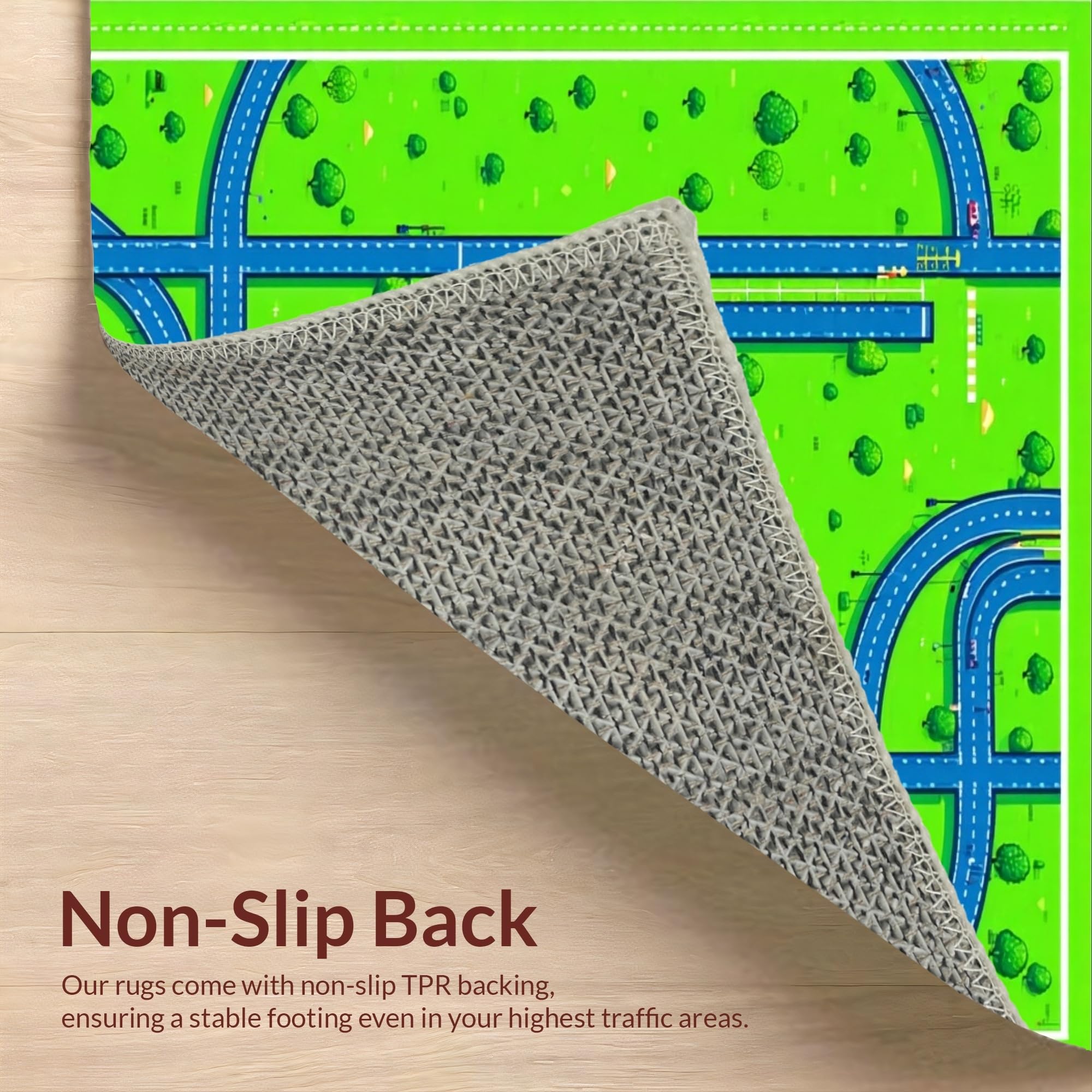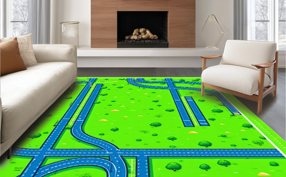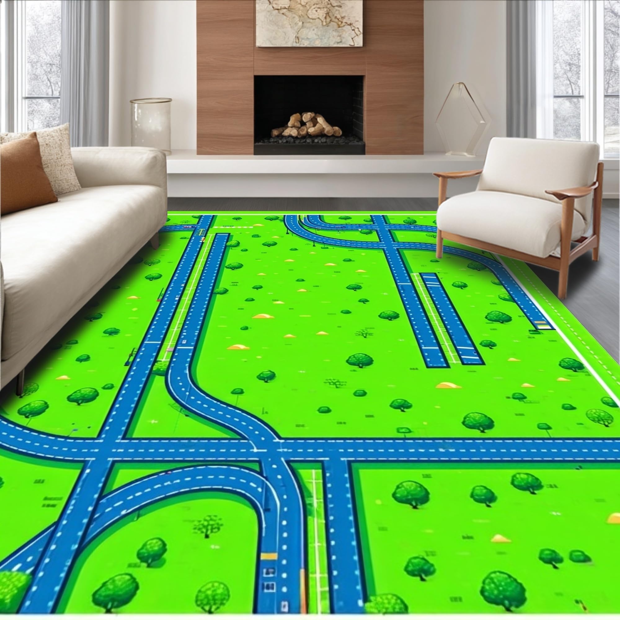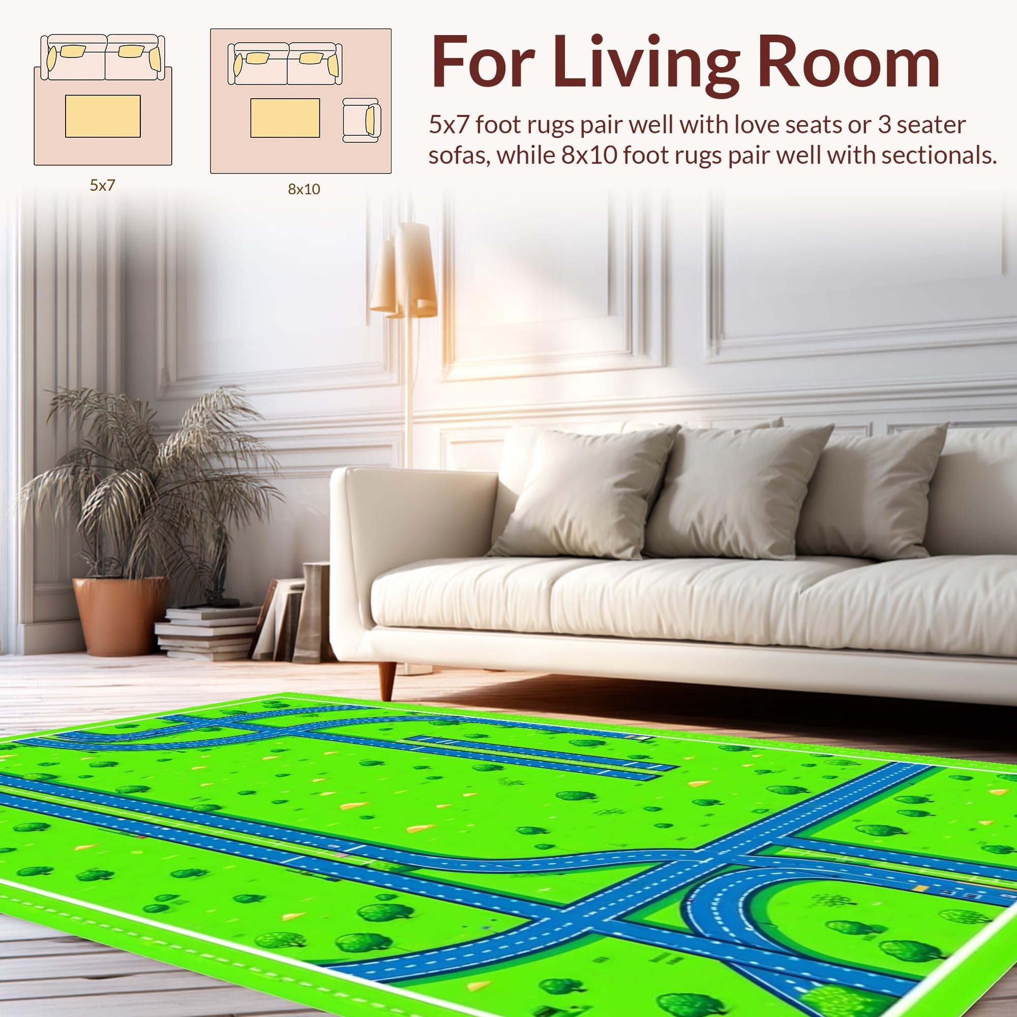 Ultra Soft Area Rug, Non Slip, Stain Resistant, Washable Area Rugs for Living Room, Bedroom, Engaging Child-Friendly City Map Style(Green) Overview: