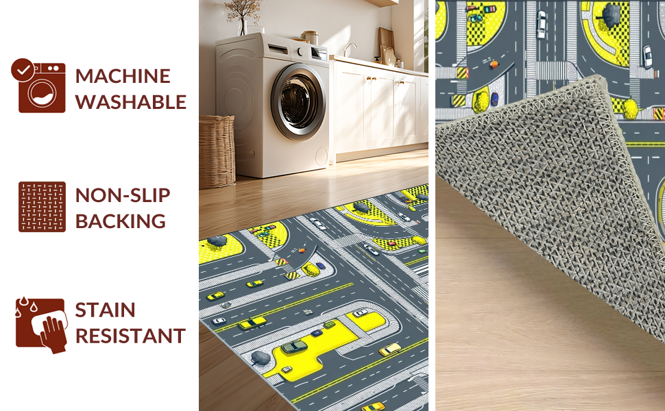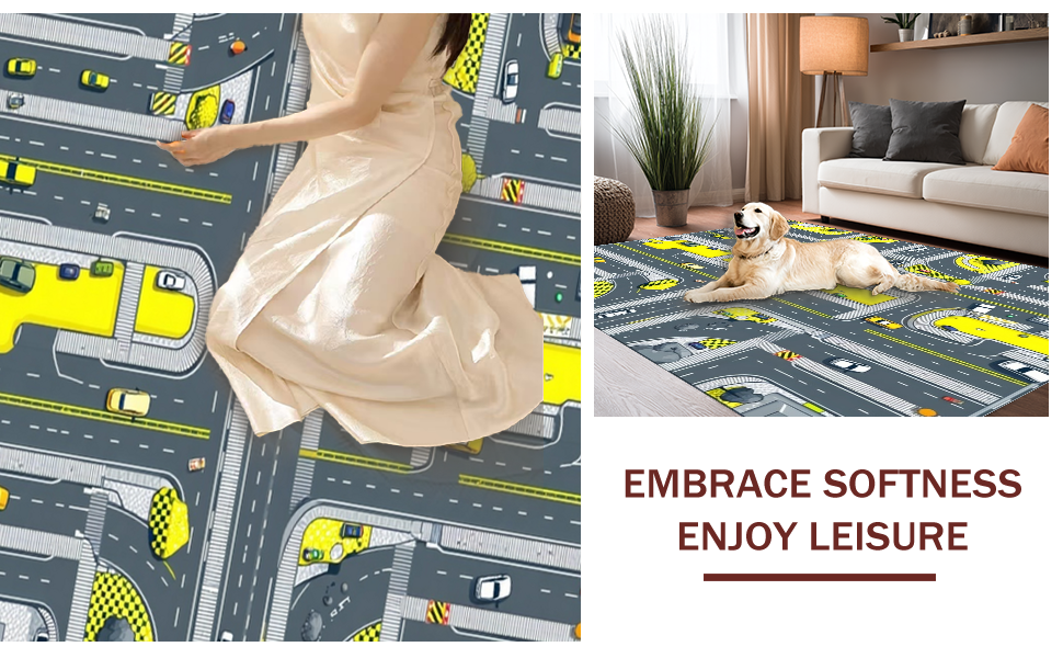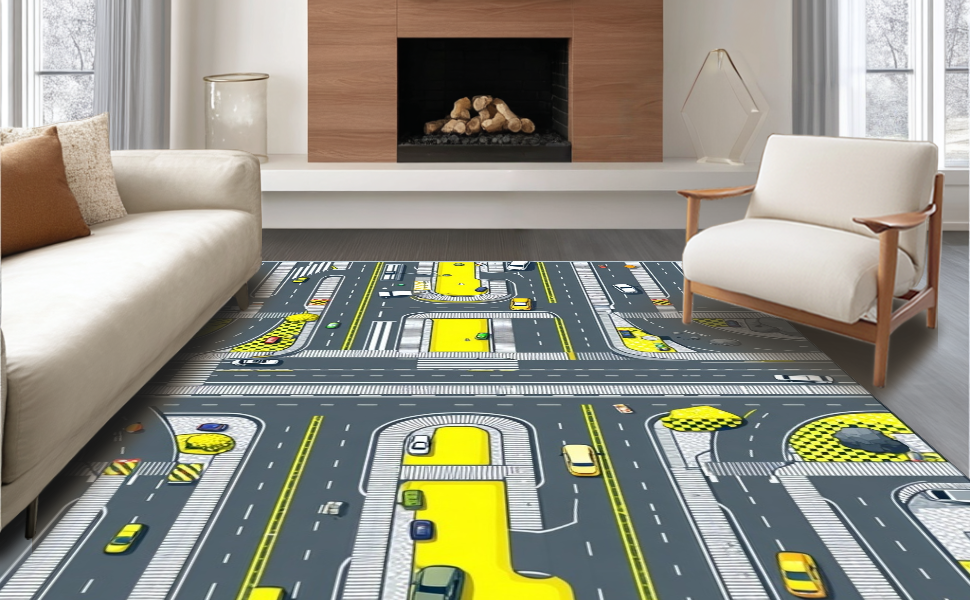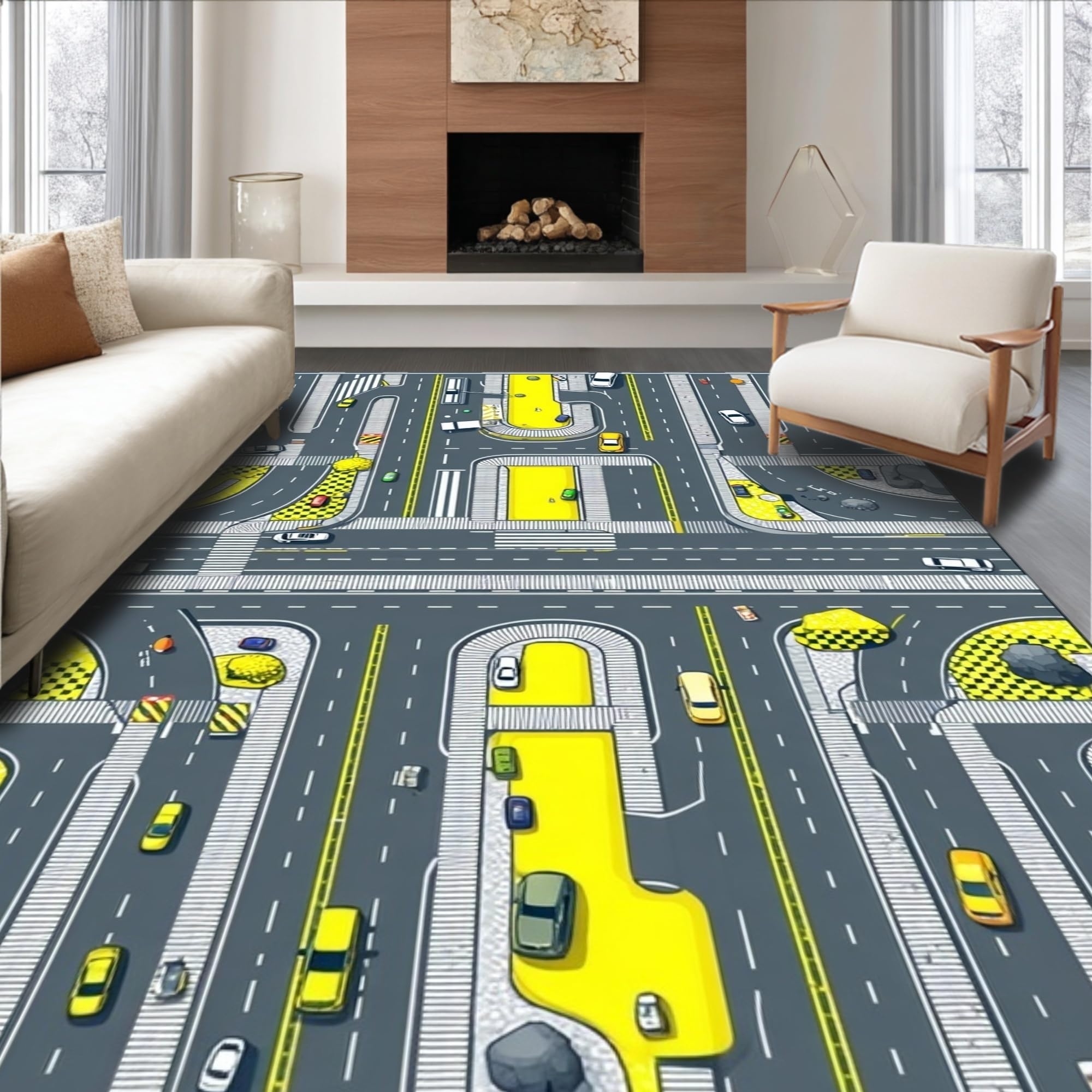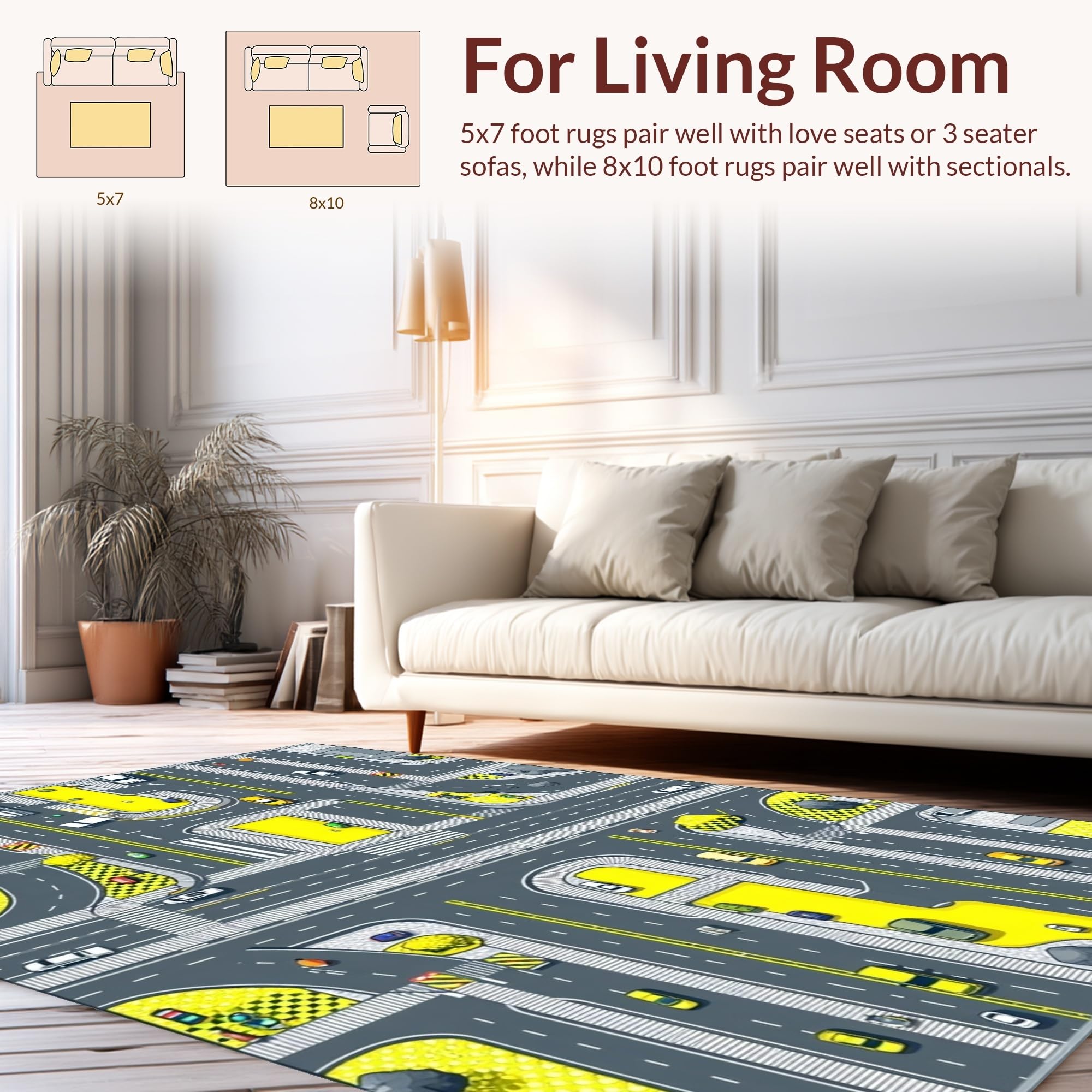 Ultra Soft Area Rug, Non Slip, Stain Resistant, Washable Area Rugs for Living Room, Bedroom, Engaging Cityscape Exploration Rug(Gray) Overview: