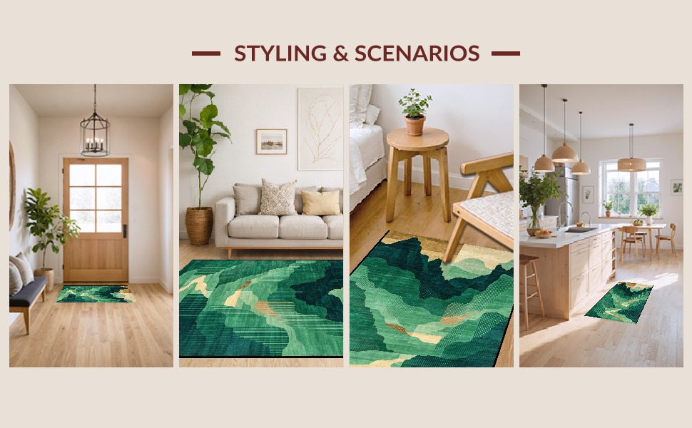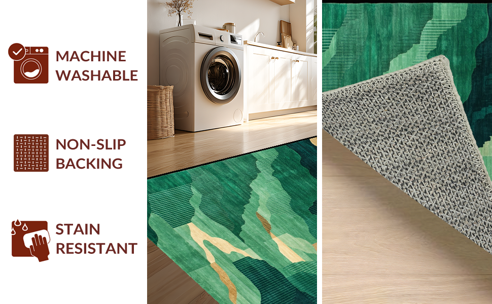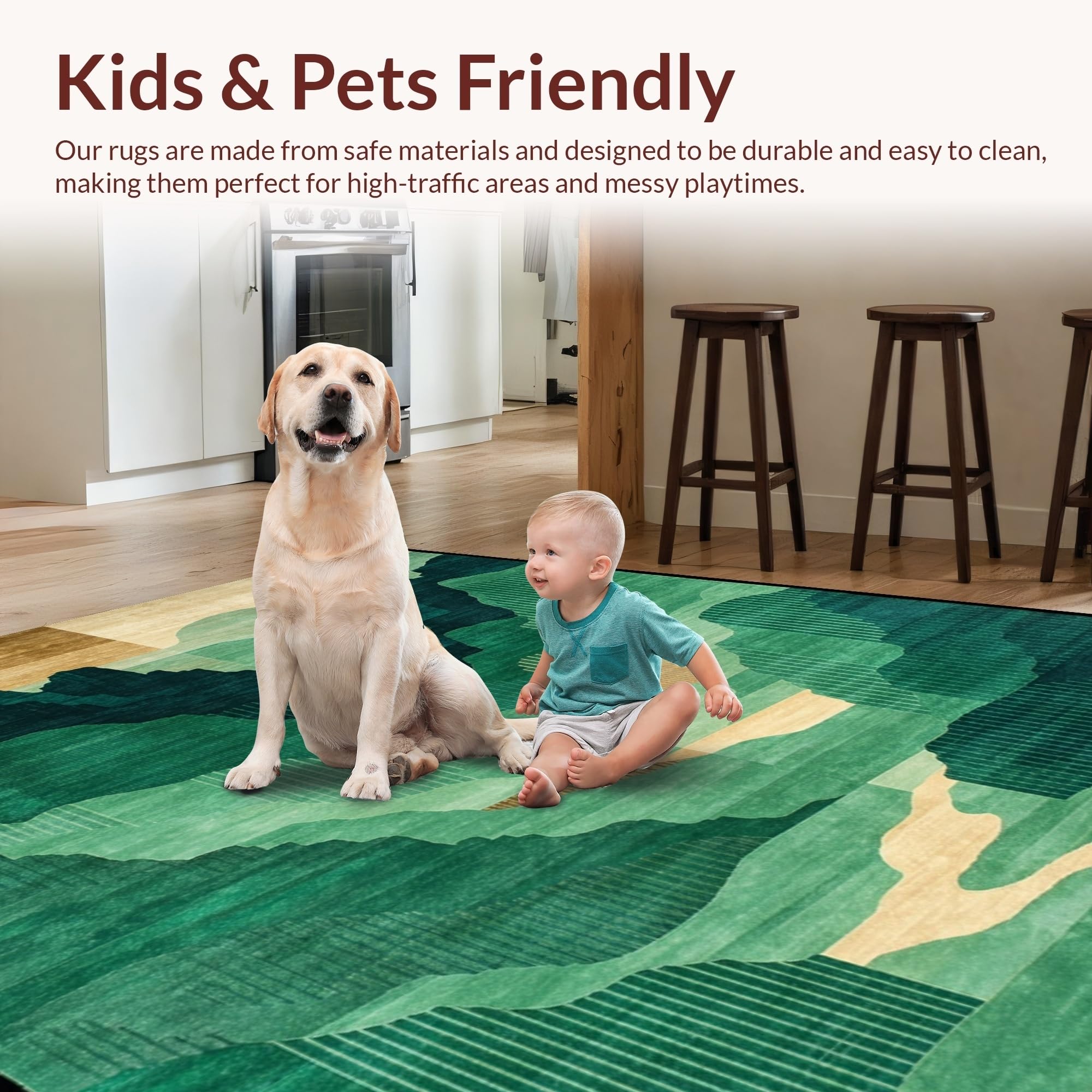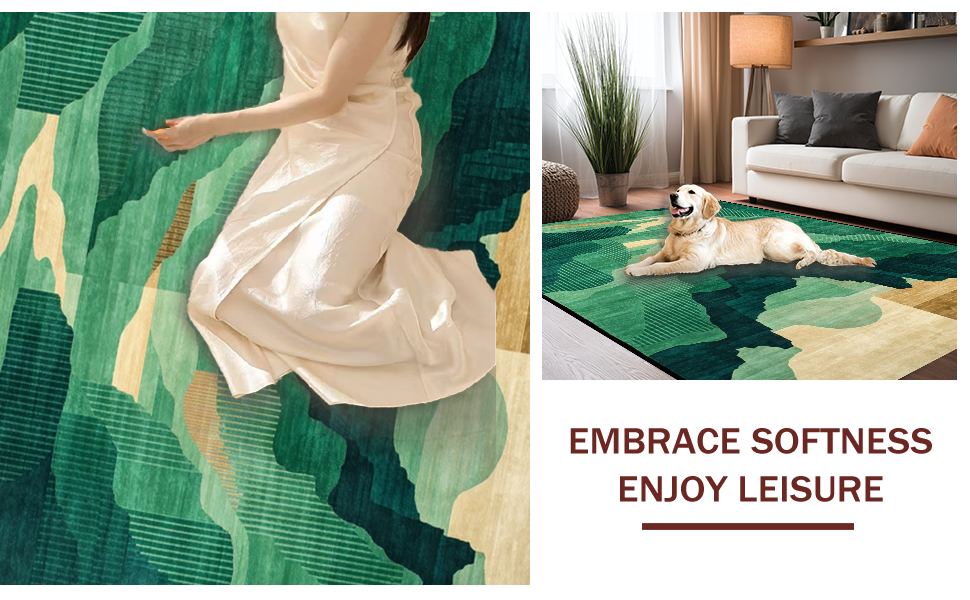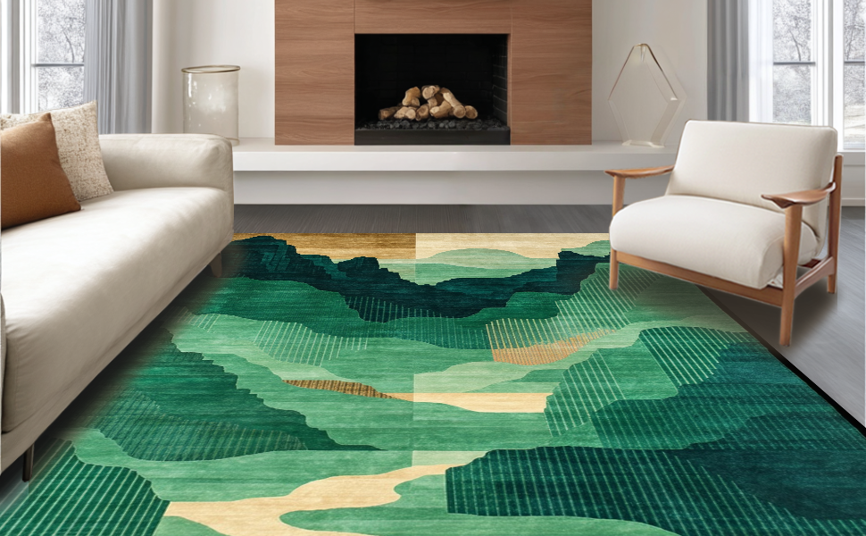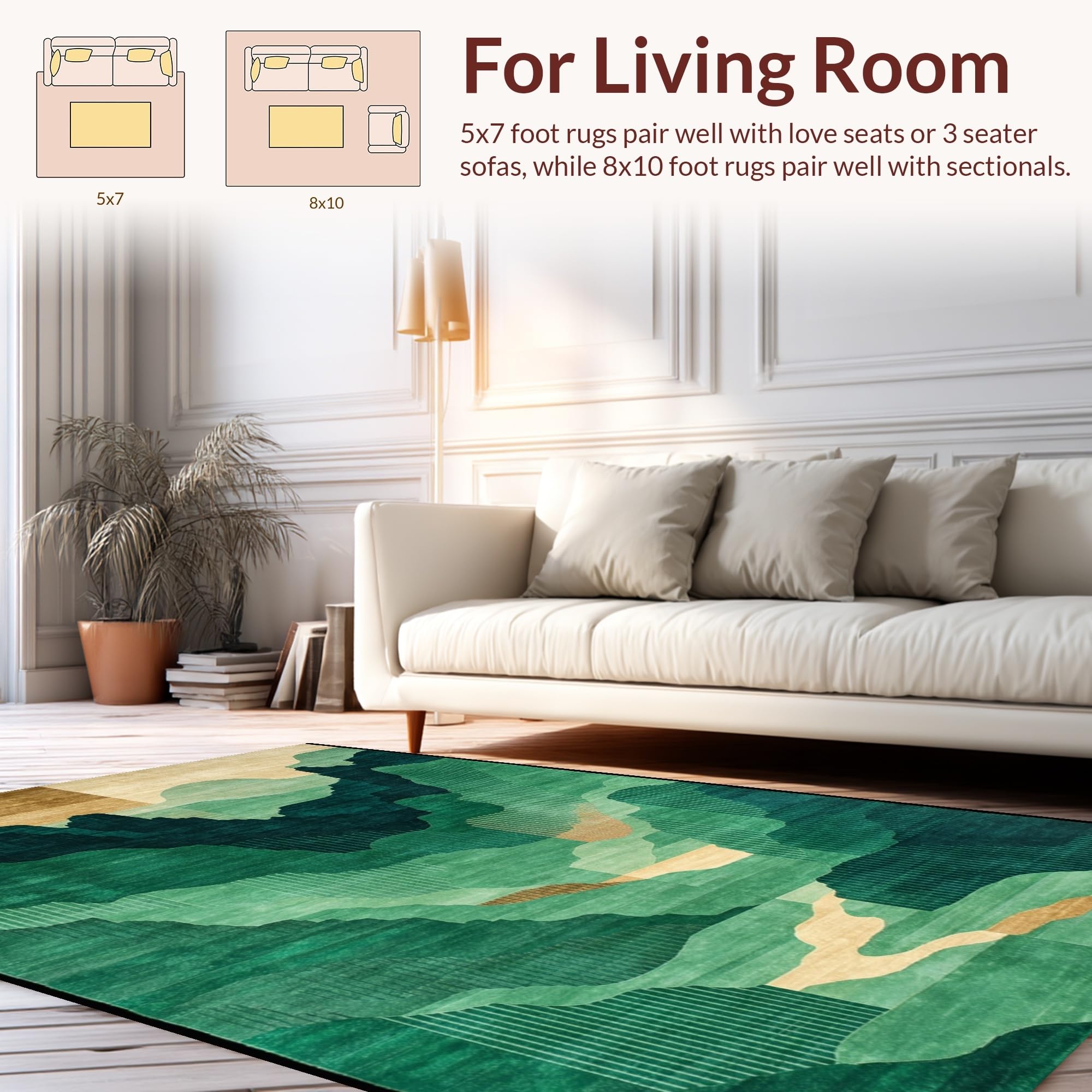 Ultra Soft Area Rug, Non Slip, Stain Resistant, Washable Area Rugs for Living Room, Bedroom, Engaging Contemporary Abstract Motif(Green) Overview:
