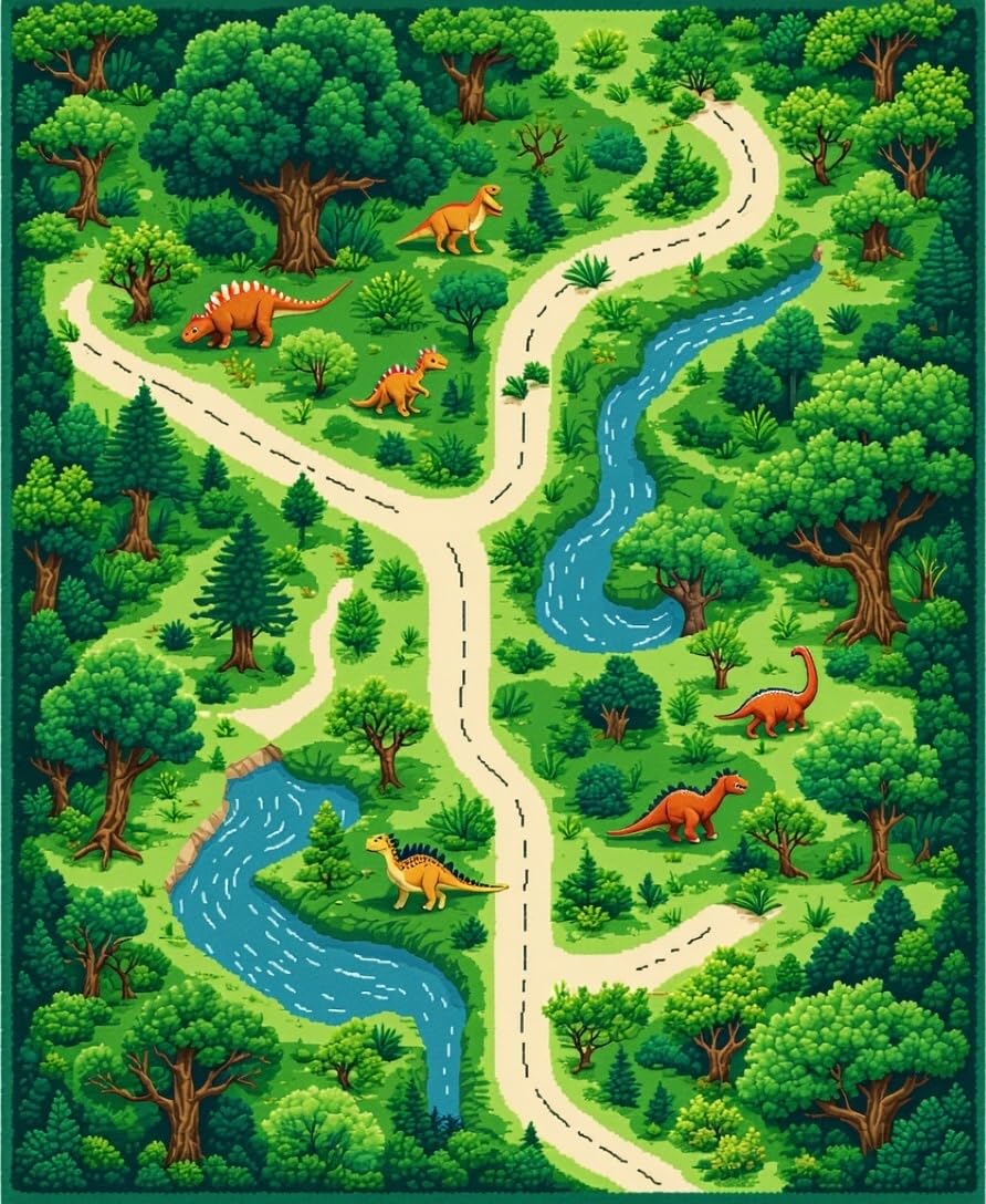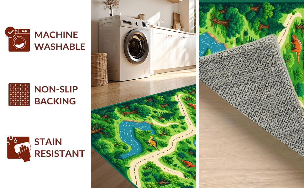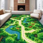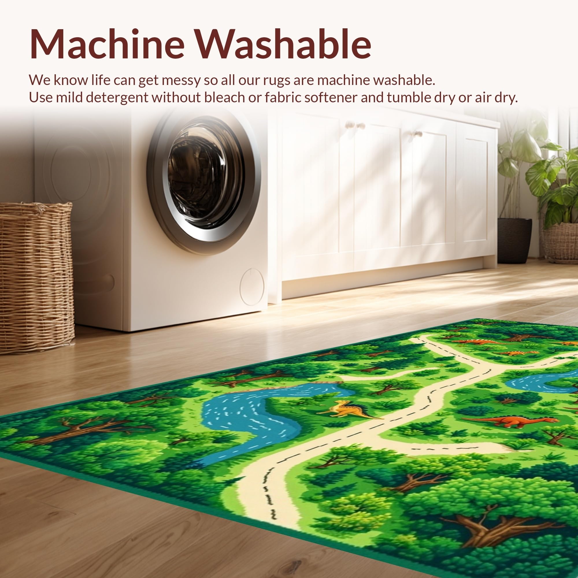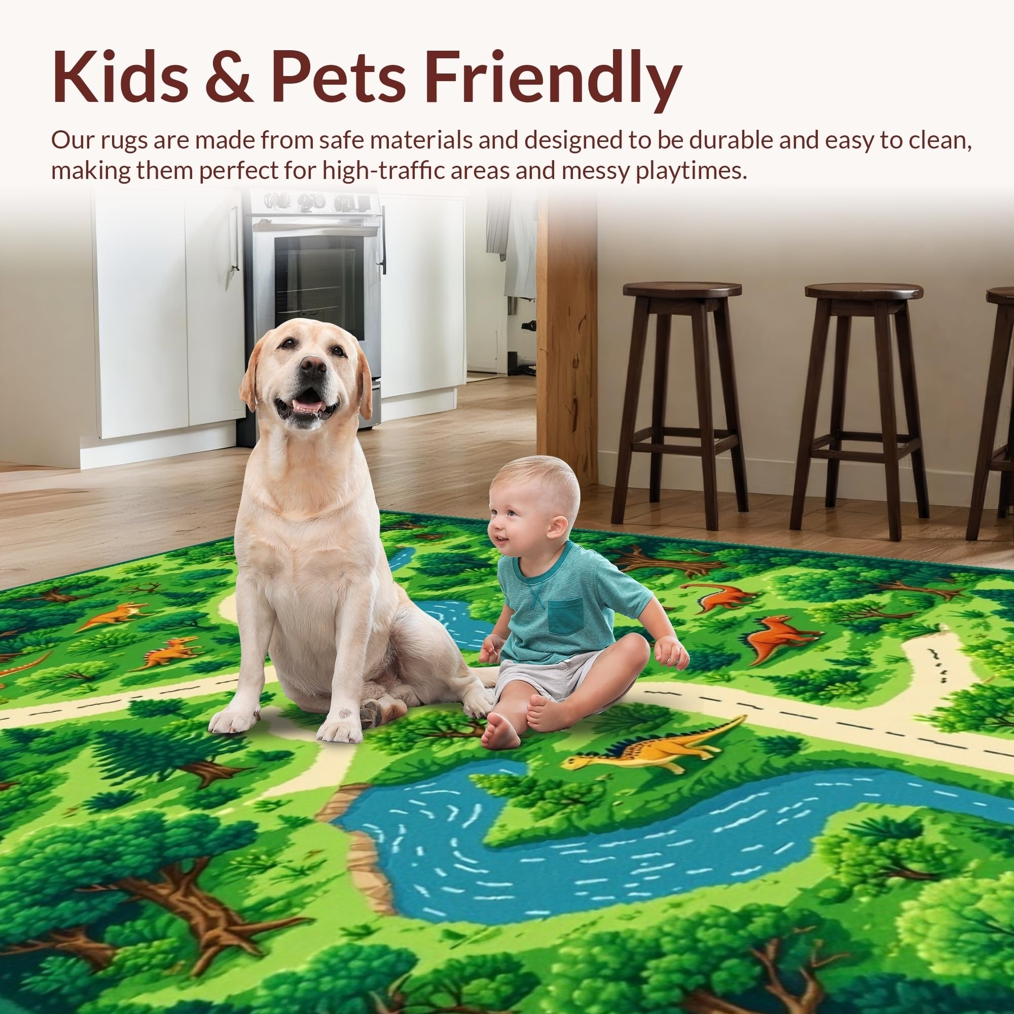 Ultra Soft Area Rug, Non Slip, Stain Resistant, Washable Area Rugs for Living Room, Bedroom, Engaging Dino Kingdom Pathway(Green) Overview: