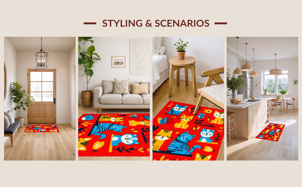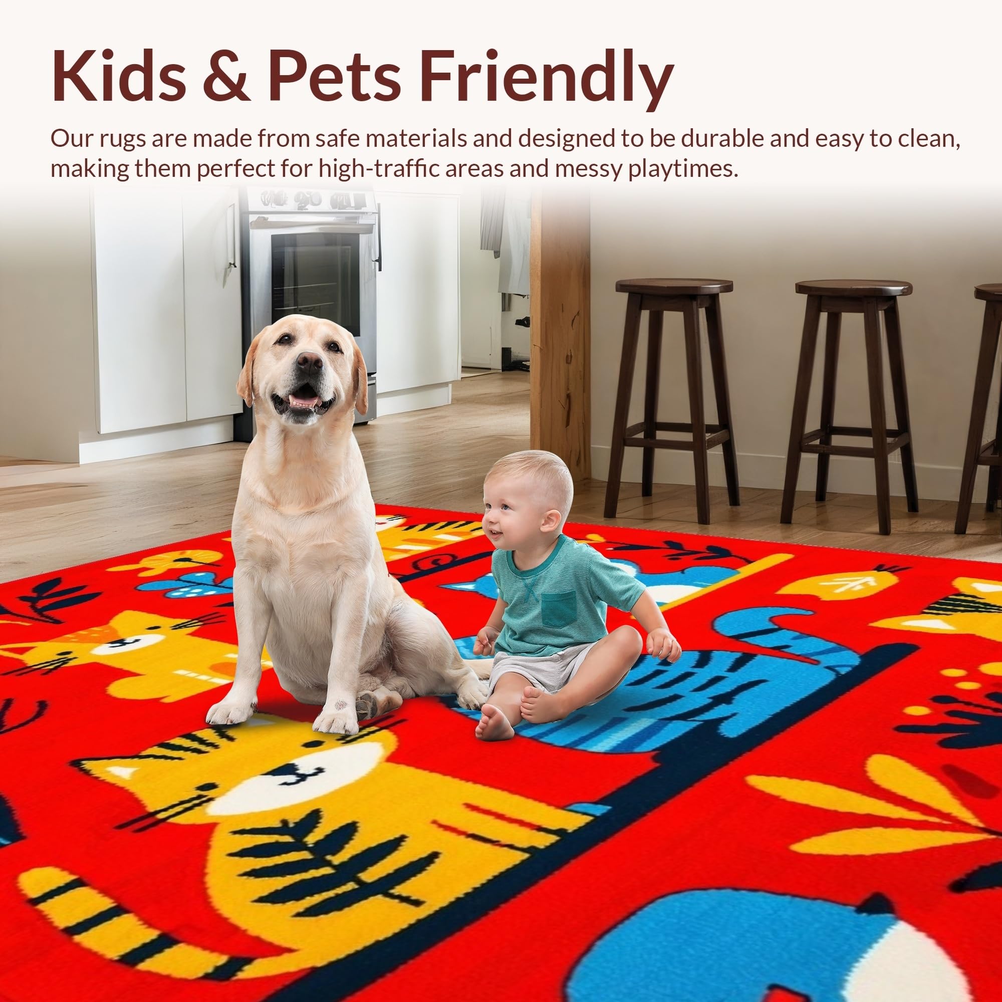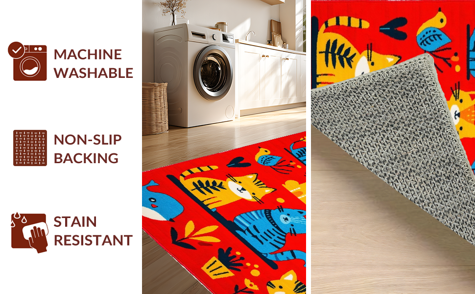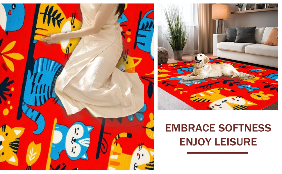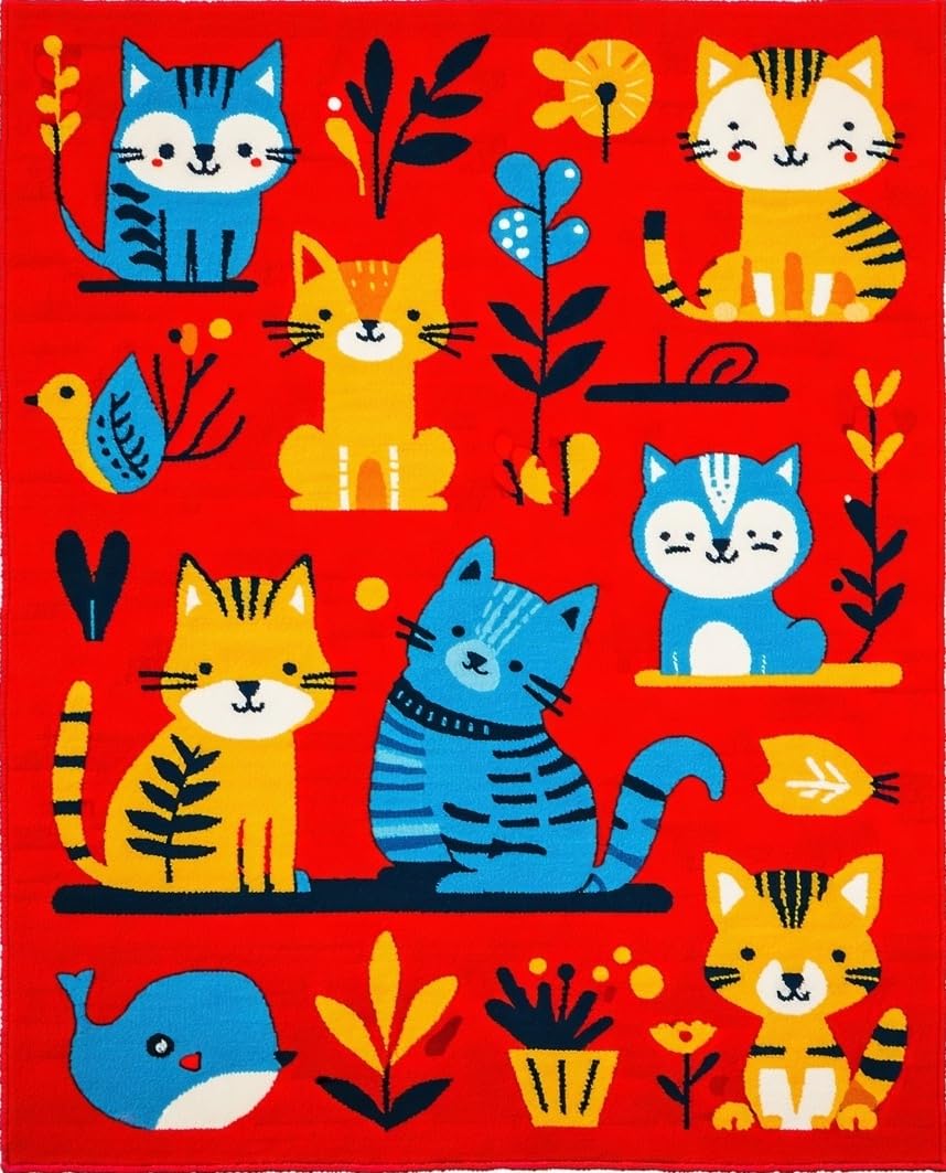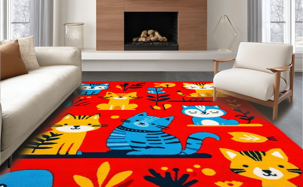 Ultra Soft Area Rug, Non Slip, Stain Resistant, Washable Area Rugs for Living Room, Bedroom, Engaging Interactive Child-Friendly Aesthetic(Red) Overview: