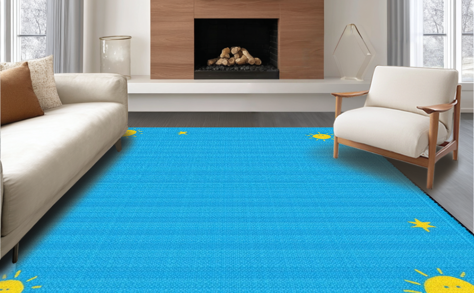 Ultra Soft Area Rug, Non Slip, Stain Resistant, Washable Area Rugs for Living Room, Bedroom, Engaging Learning-Centric Colorful Motif(Blue) Overview:
