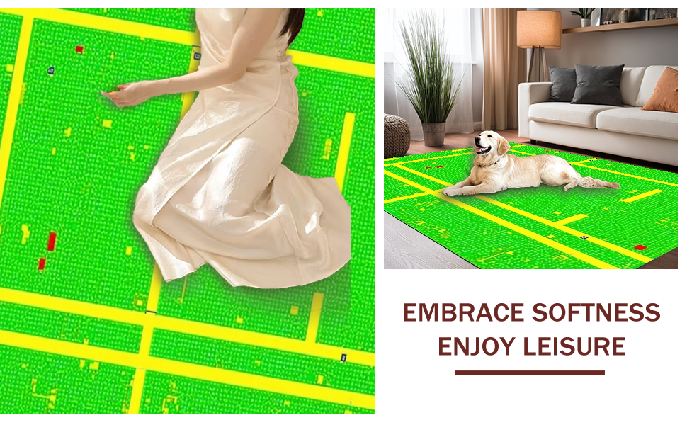 Ultra Soft Area Rug, Non Slip, Stain Resistant, Washable Area Rugs for Living Room, Bedroom, Engaging Neighborhood Scene Rug(Green) Overview: