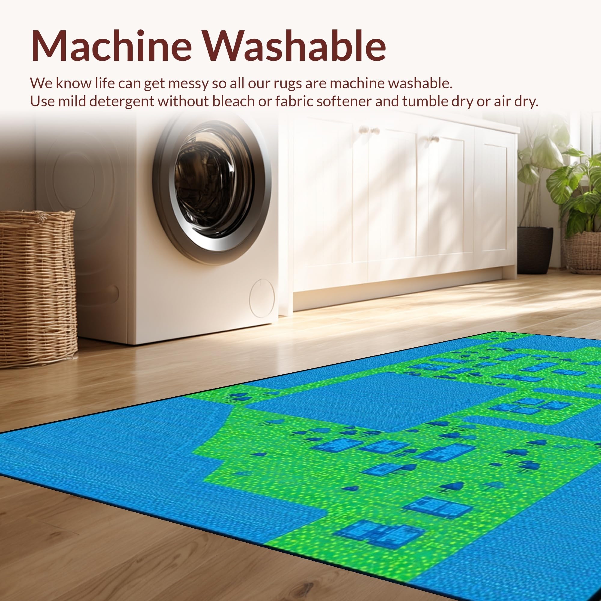 - Machine Washable: Our rugs can be easily thrown in the wash machine.