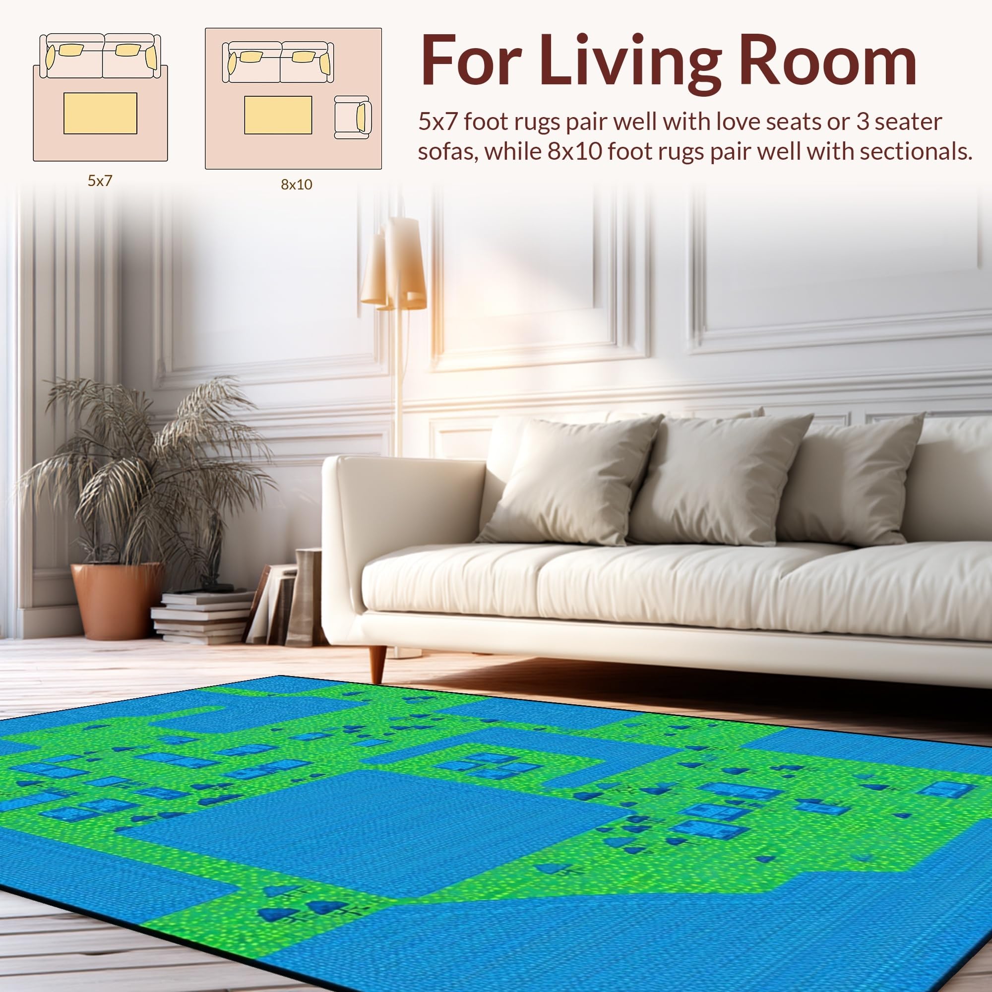 Ultra Soft Area Rug, Non Slip, Stain Resistant, Washable Area Rugs for Living Room, Bedroom, Engaging Numbered Parking Landscape(Blue) Overview: