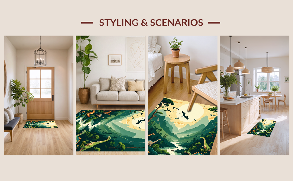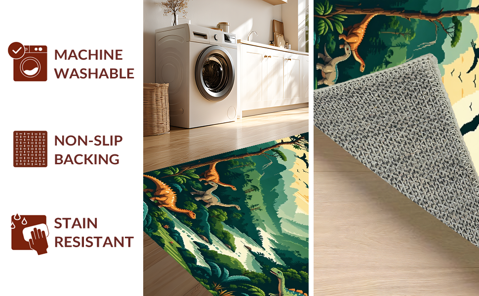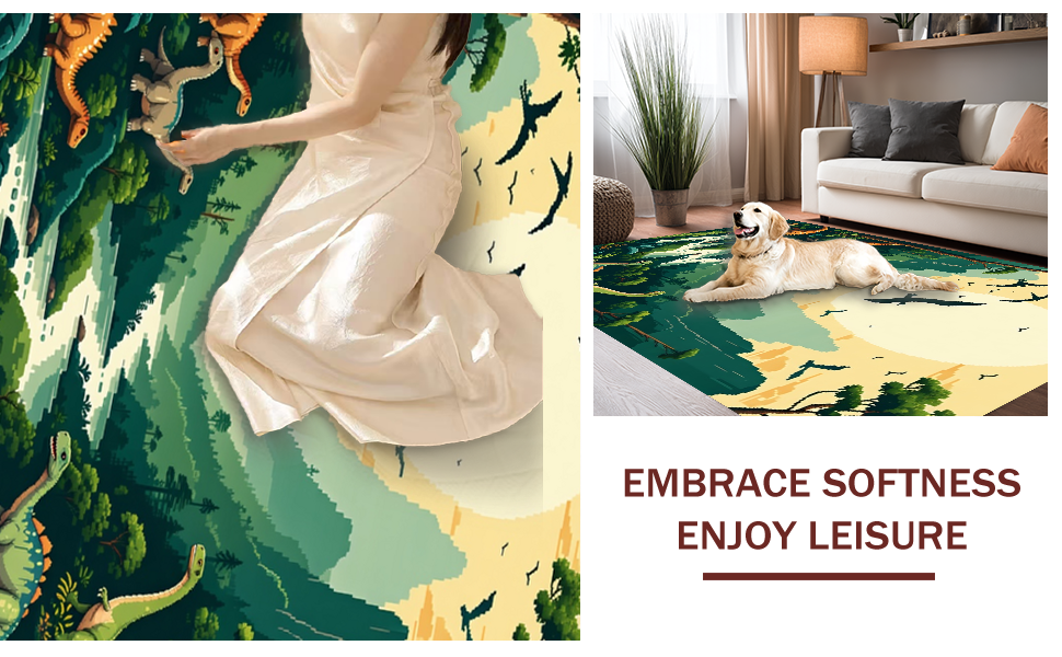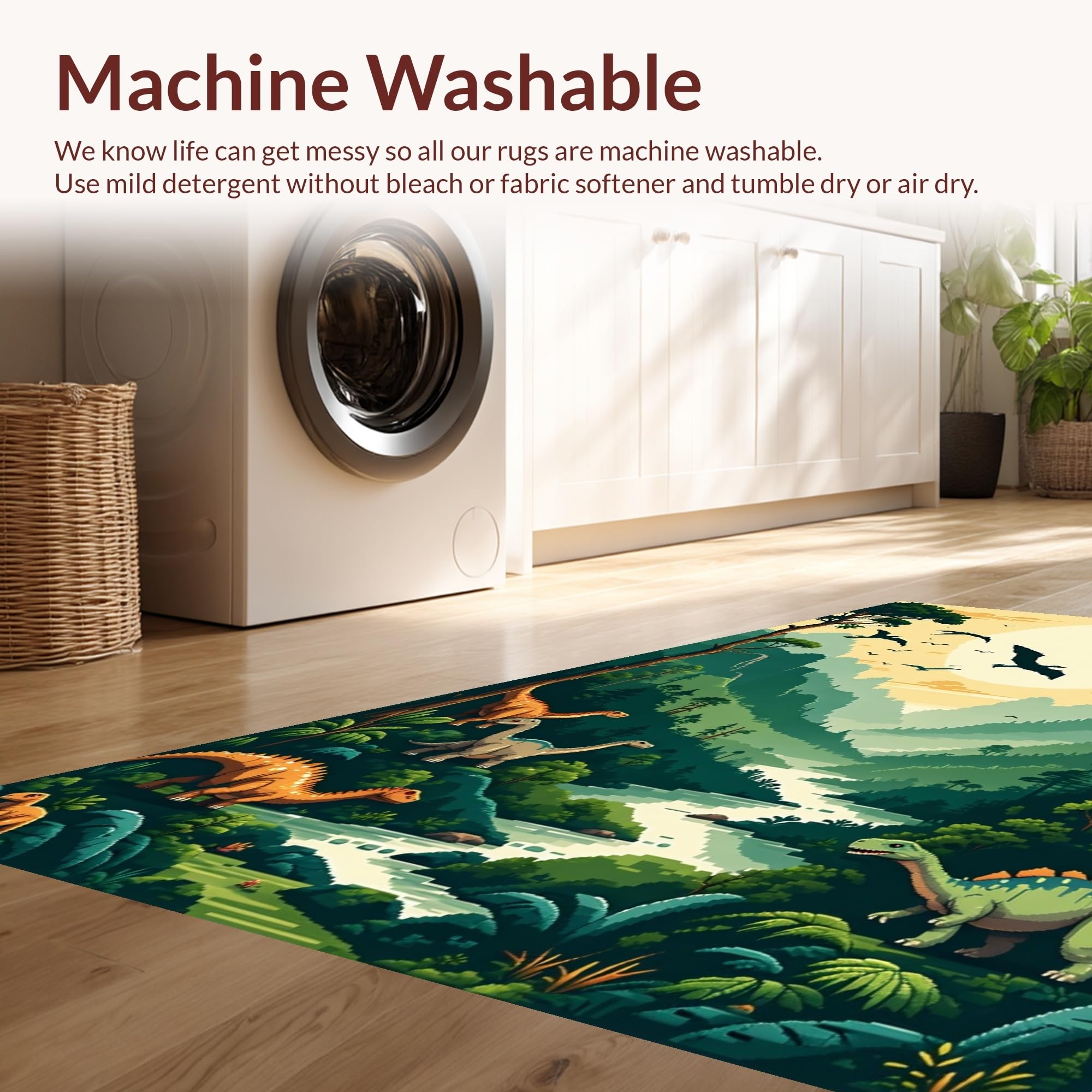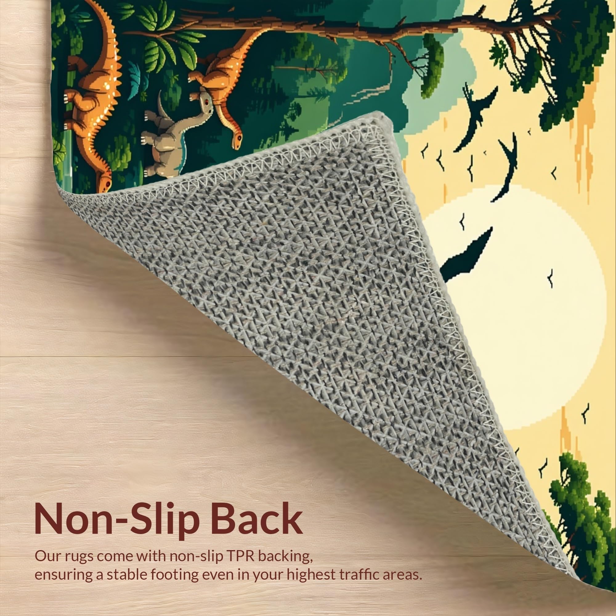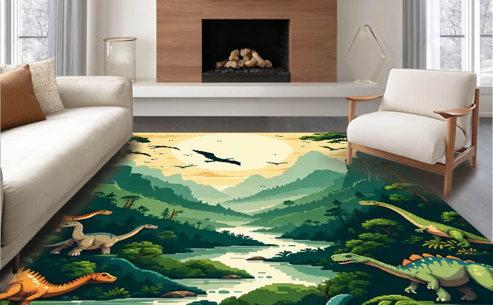 Ultra Soft Area Rug, Non Slip, Stain Resistant, Washable Area Rugs for Living Room, Bedroom, Engaging Whimsical Dino Exploration(Green) Overview: