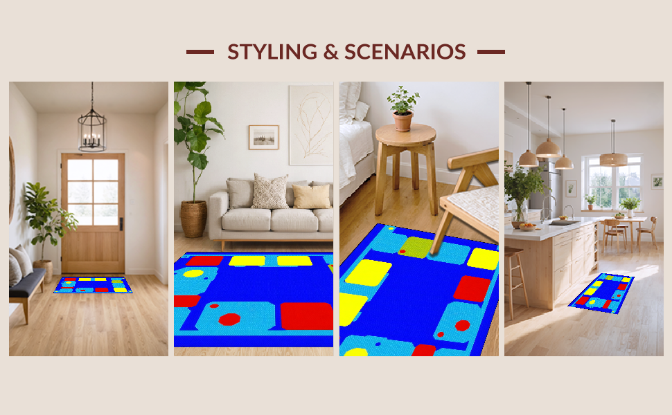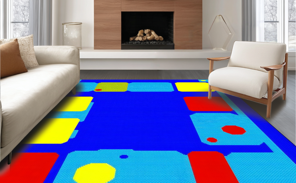Ultra Soft Area Rug, Non Slip, Stain Resistant, Washable Area Rugs for Living Room, Bedroom, Engaging Youthful Symbolic Layout(Blue) Overview: