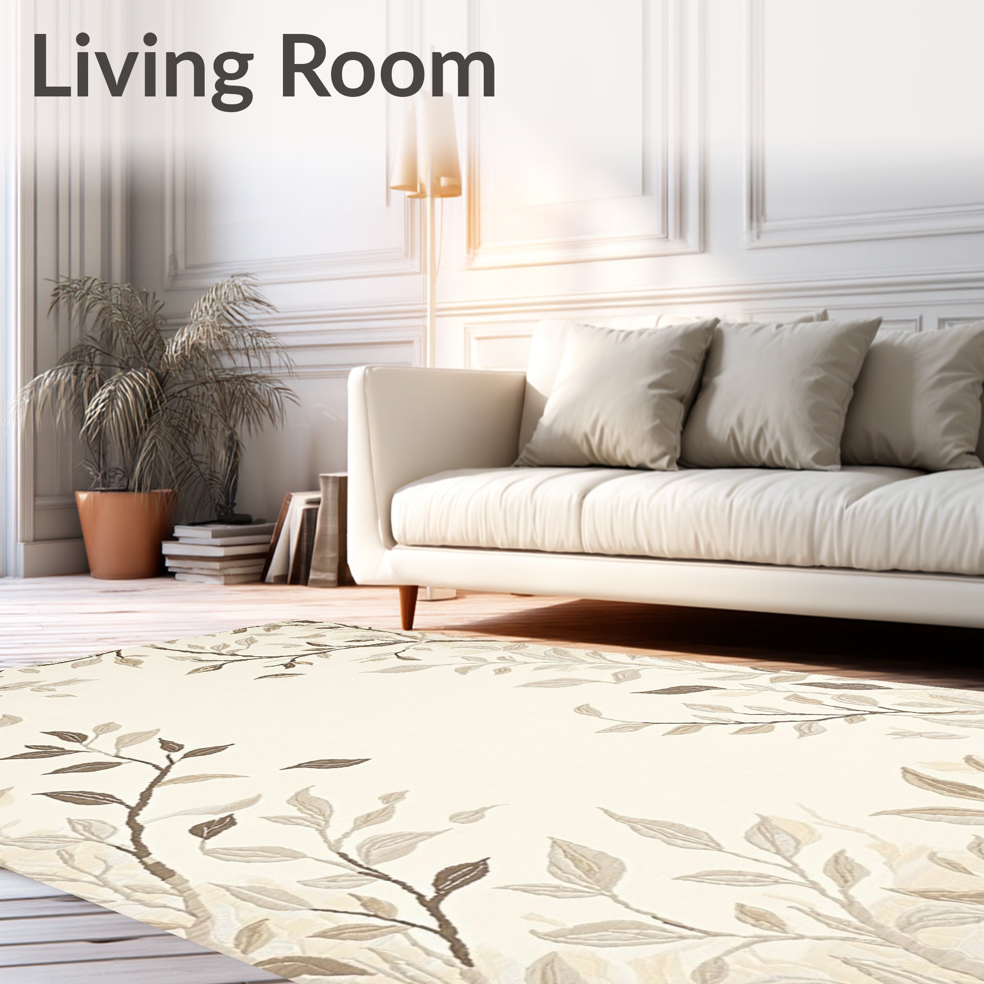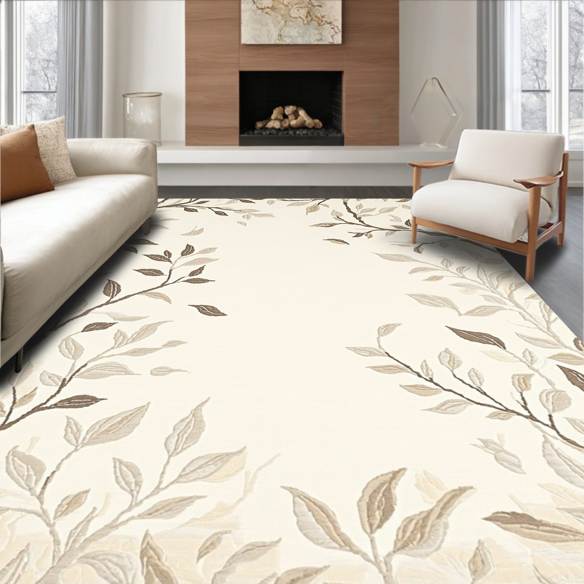 Ultra Soft Area Rug, Non Slip, Stain Resistant, Washable Area Rugs for Living Room, Bedroom, Entrance Non Slip Leaf Branch Indoor Area(Beige) Overview: