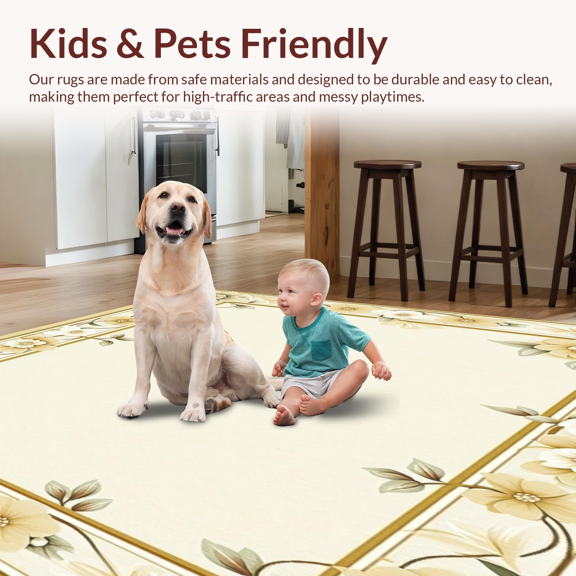Ultra Soft Area Rug, Non Slip, Stain Resistant, Washable Area Rugs for Living Room, Bedroom, Entryway Floral Design in Subtle Beige Colors(Beige) Overview: