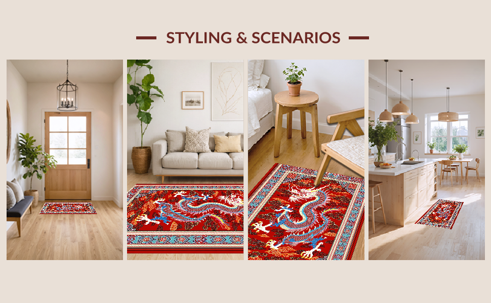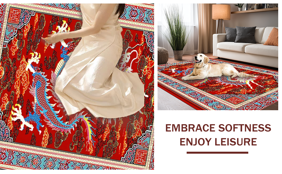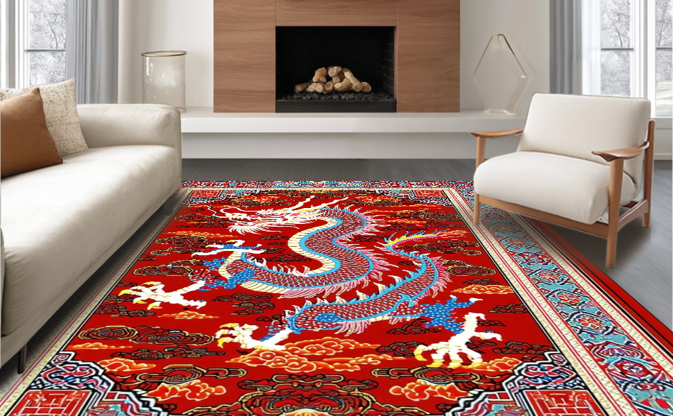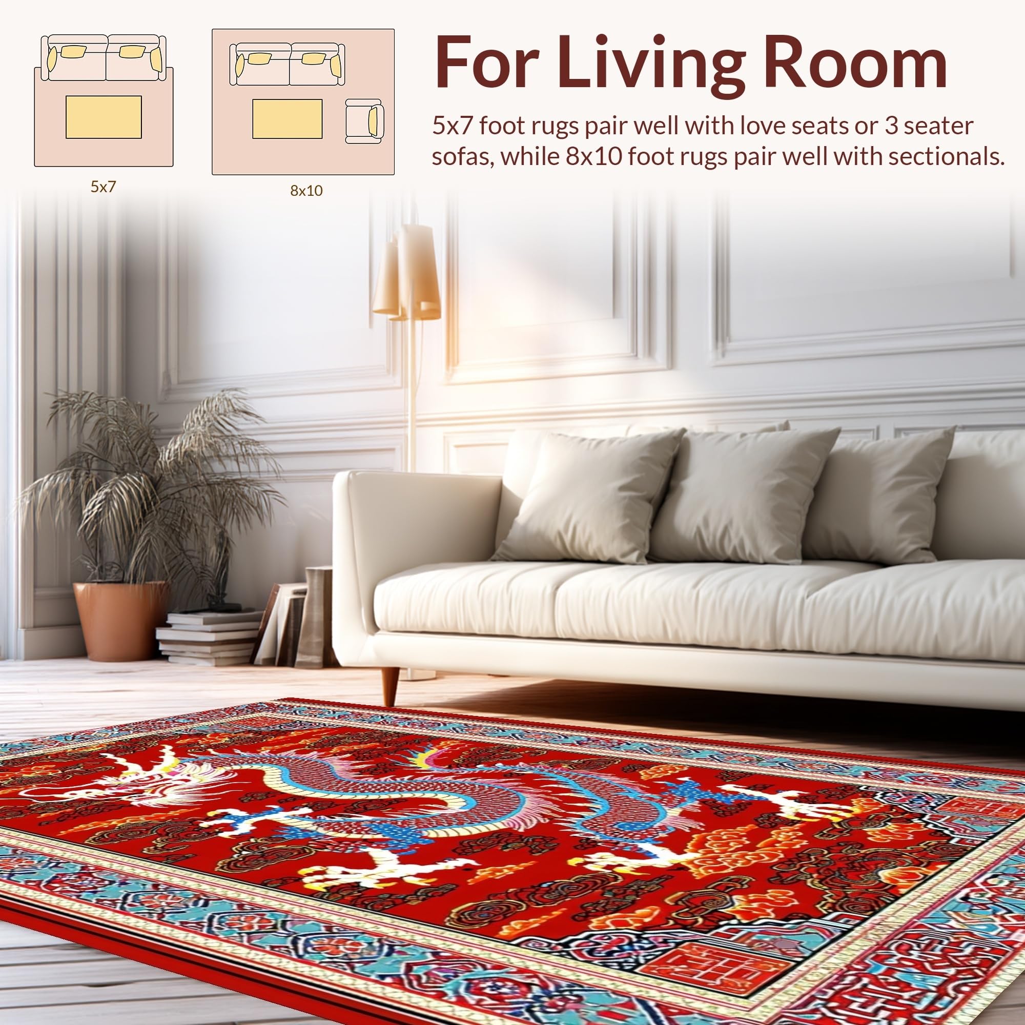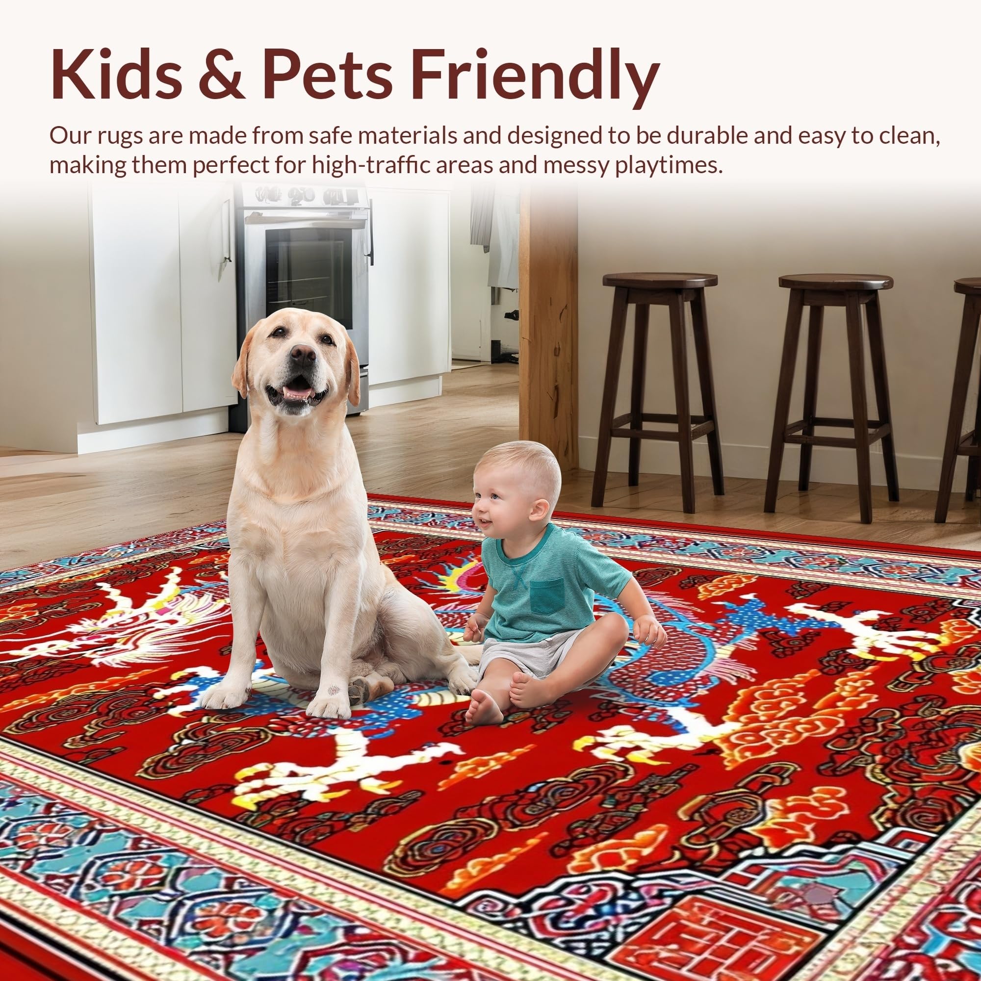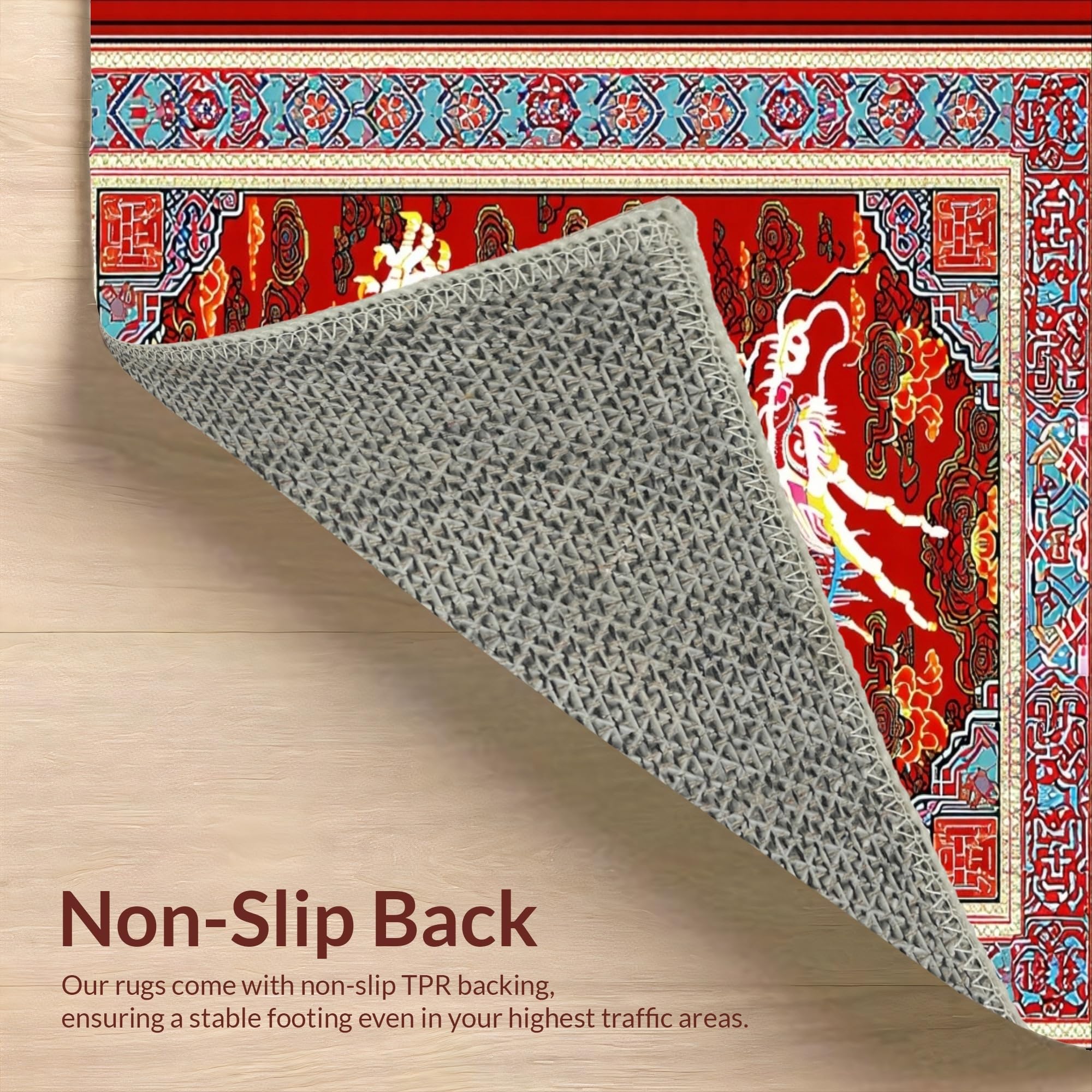 Ultra Soft Area Rug, Non Slip, Stain Resistant, Washable Area Rugs for Living Room, Bedroom, Epic Fire Ice Fantasy Motif(Red) Overview: