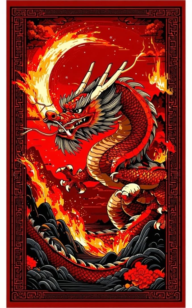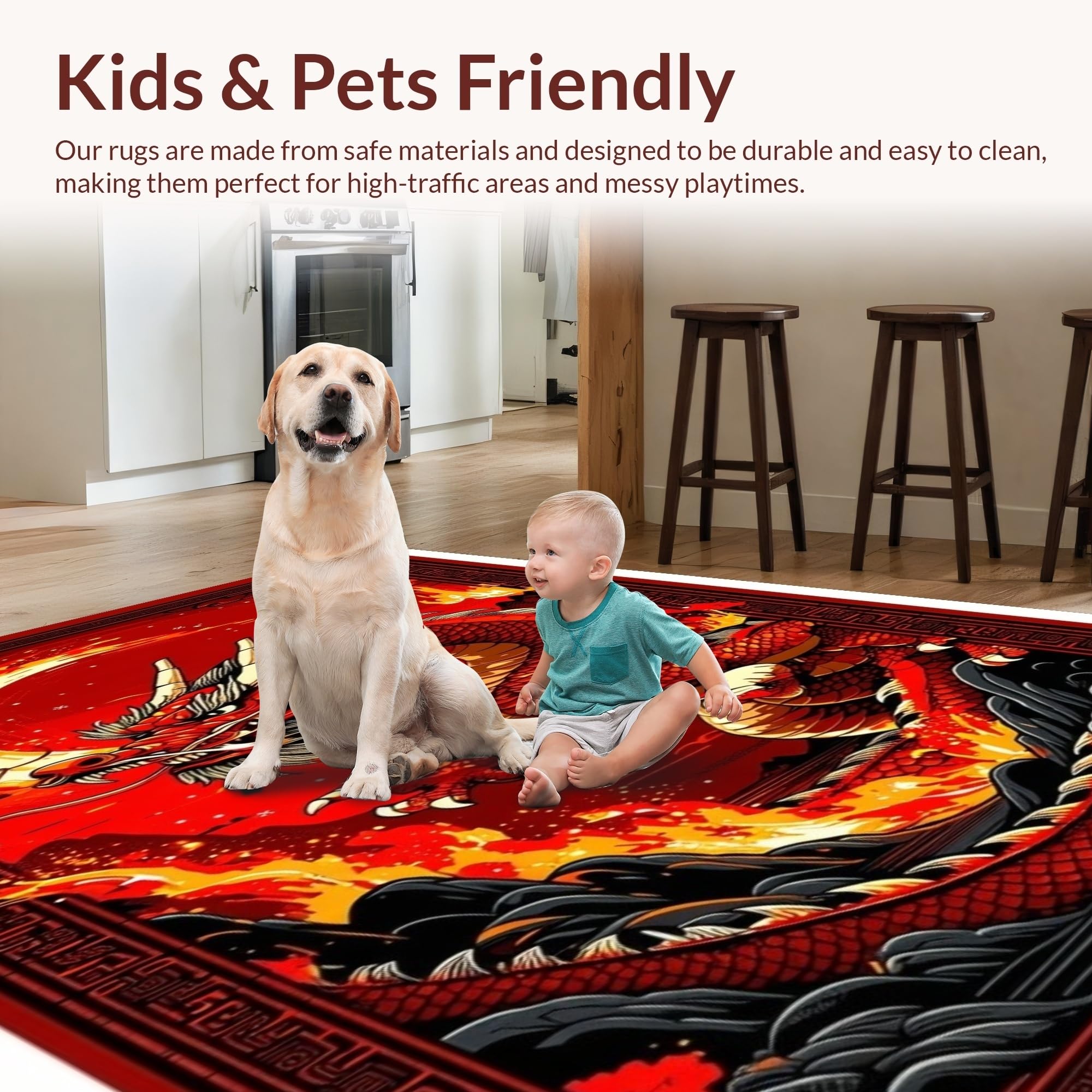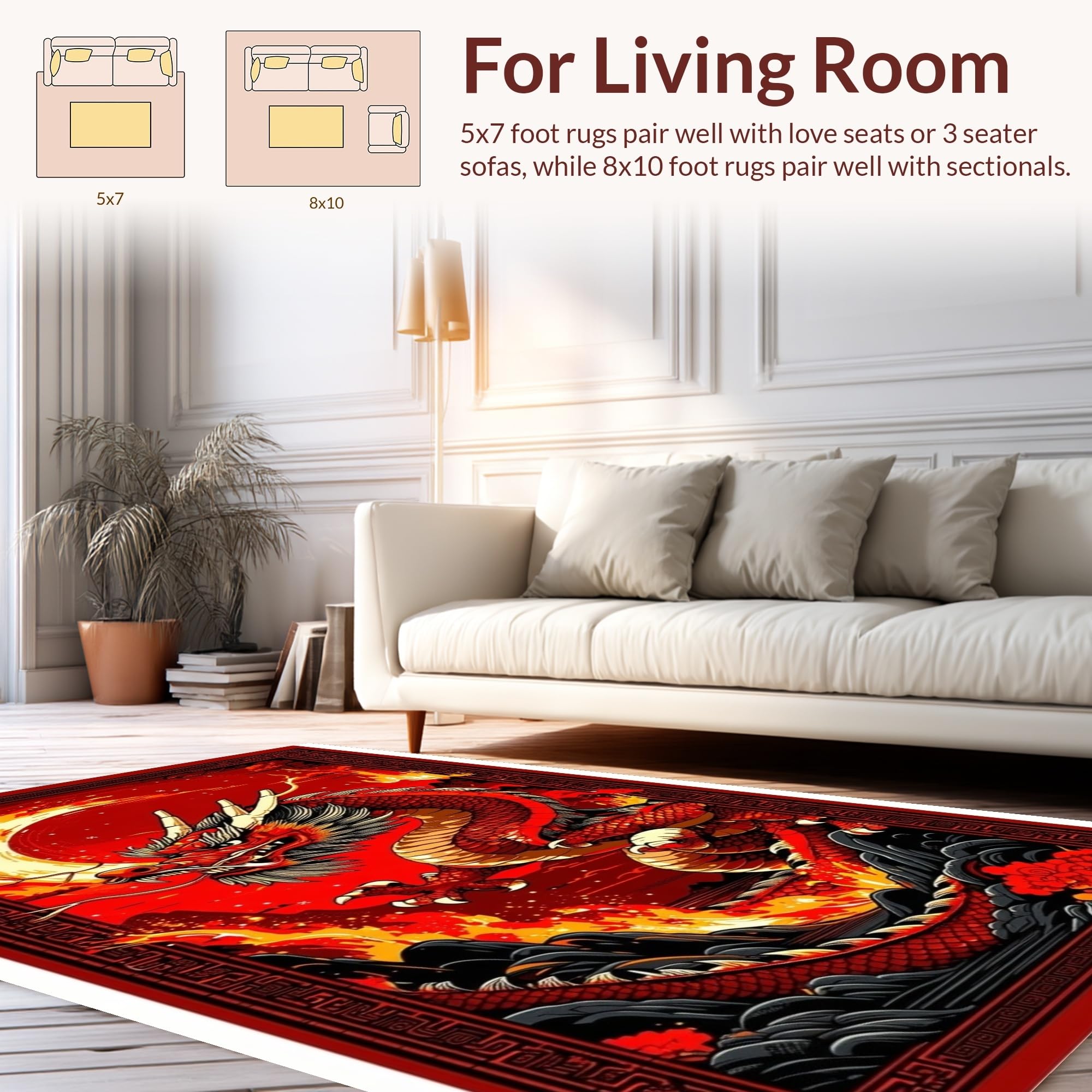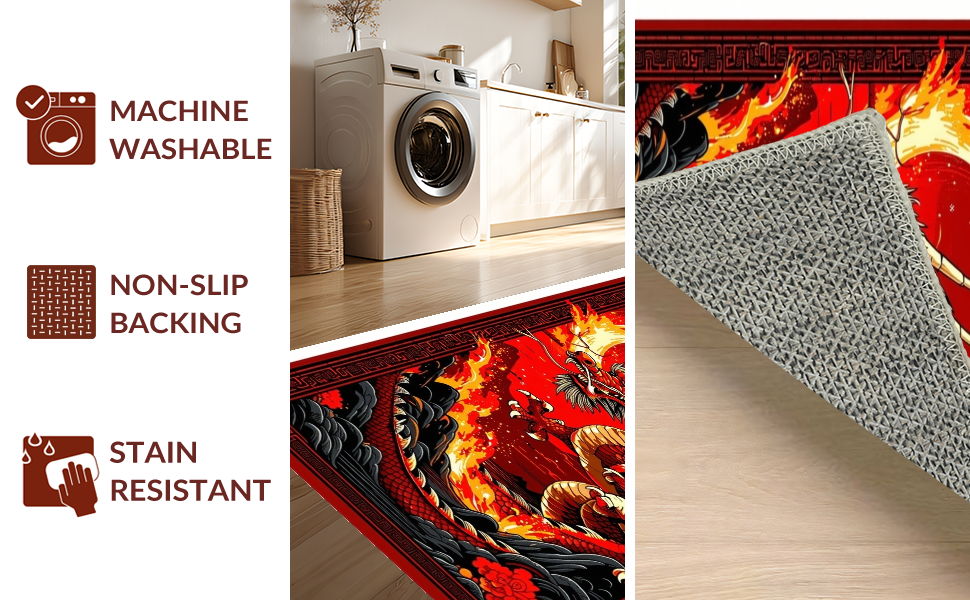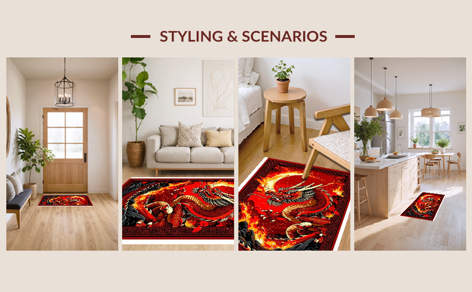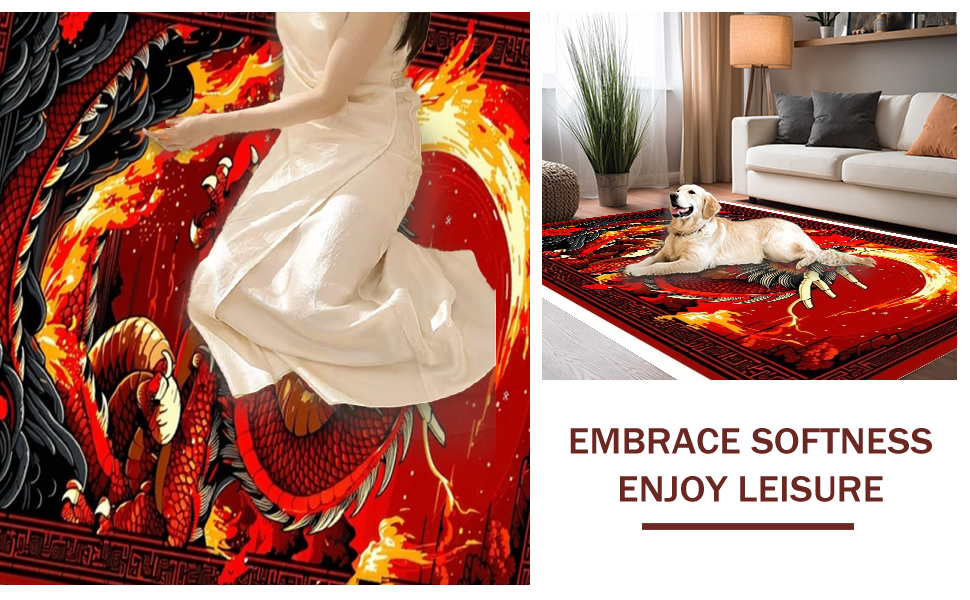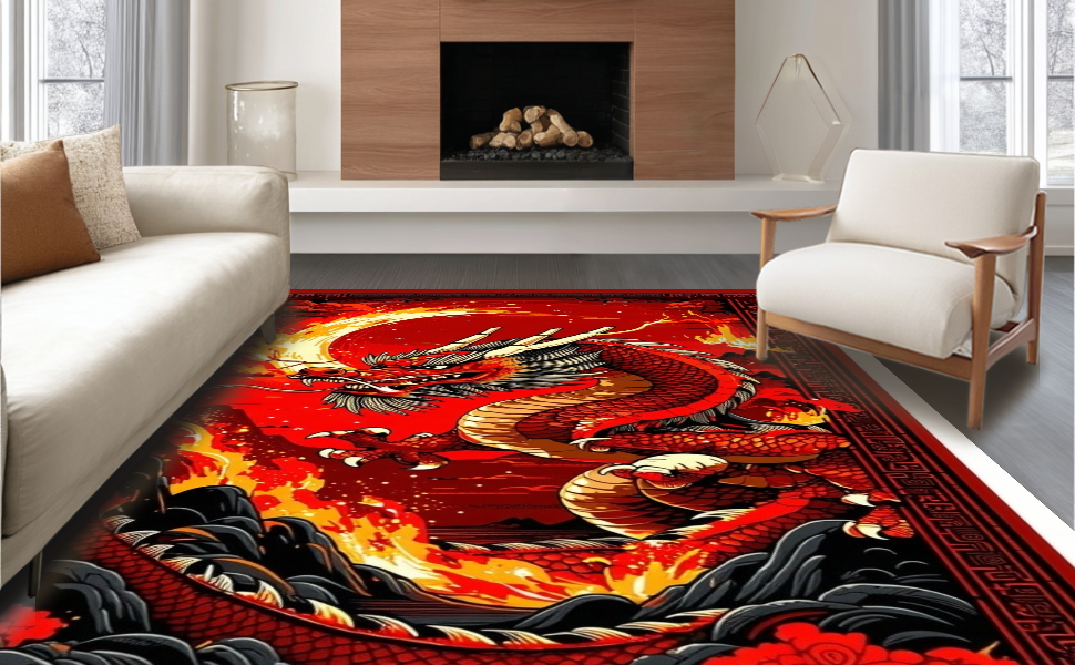Ultra Soft Area Rug, Non Slip, Stain Resistant, Washable Area Rugs for Living Room, Bedroom, Epic Mythical Beasts Design Theme(Red) Overview: