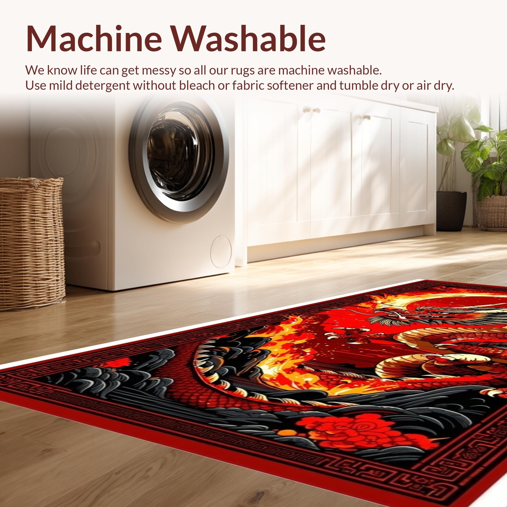 - Machine Washable: Our rugs can be easily thrown in the wash machine.