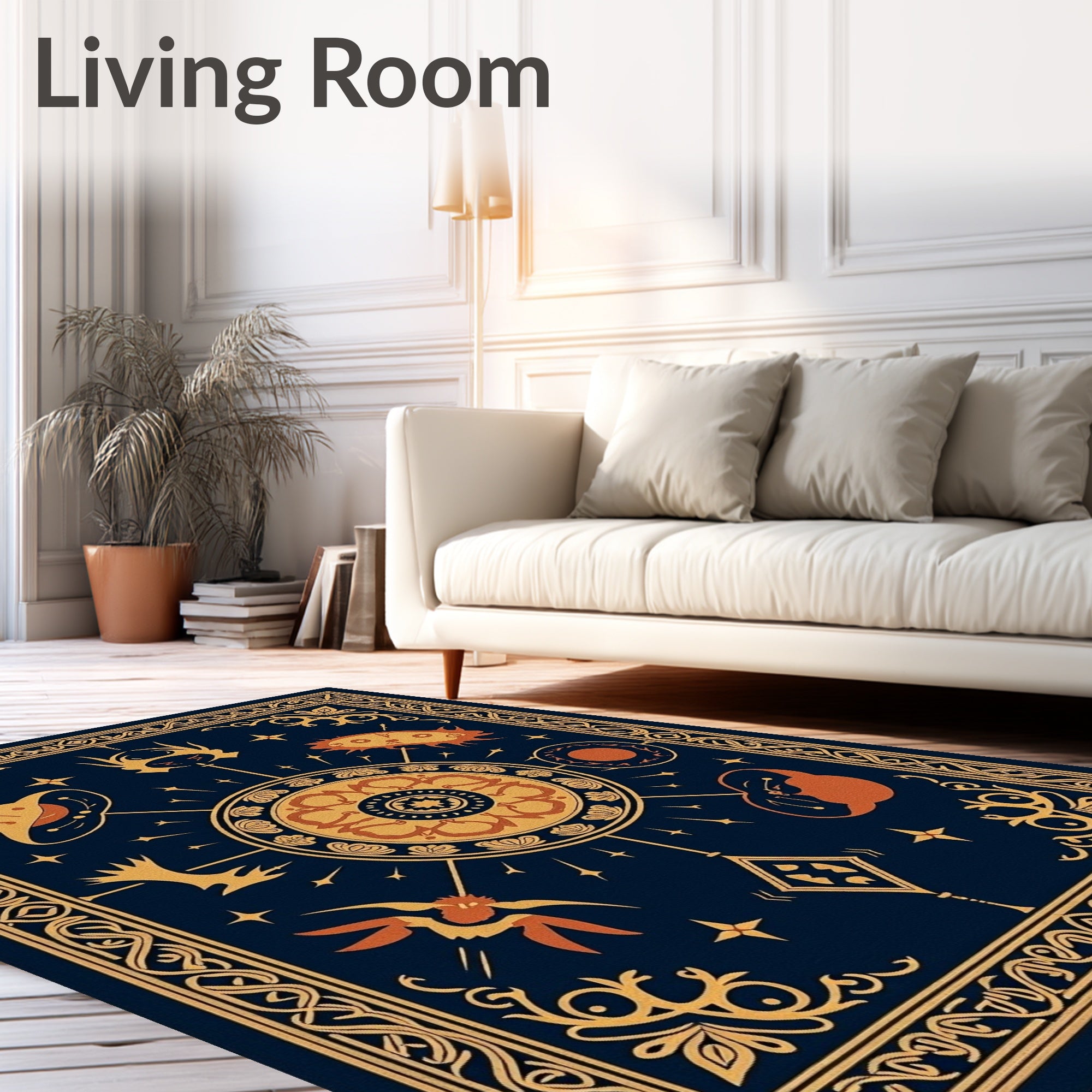 Ultra Soft Area Rug, Non Slip, Stain Resistant, Washable Area Rugs for Living Room, Bedroom, Esoteric Astrology Symbol Floor Covering(Blue) Overview: