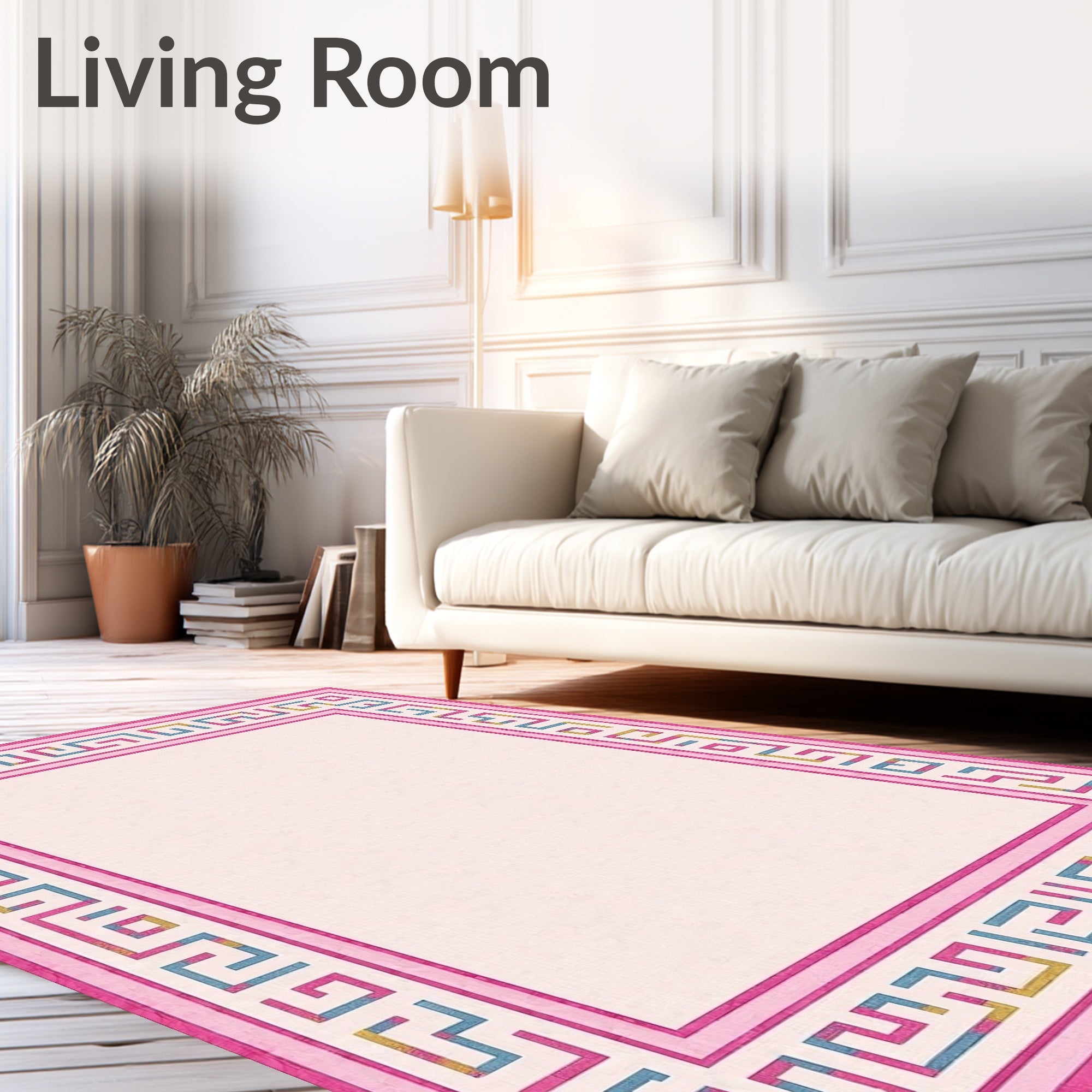 Ultra Soft Area Rug, Non Slip, Stain Resistant, Washable Area Rugs for Living Room, Bedroom, Ethereal Maze Labyrinth Authentic Charm(Pink) Overview: