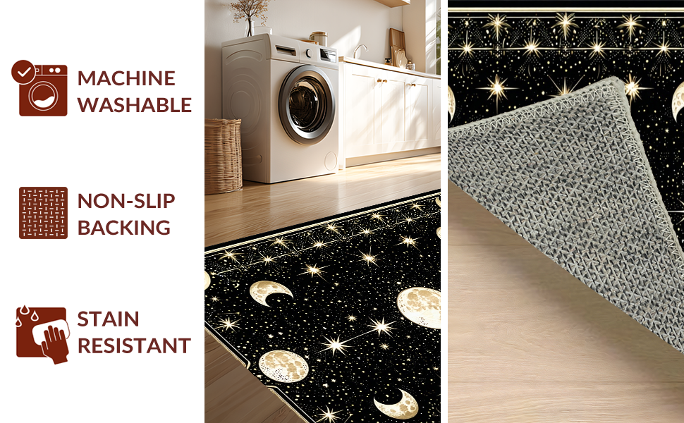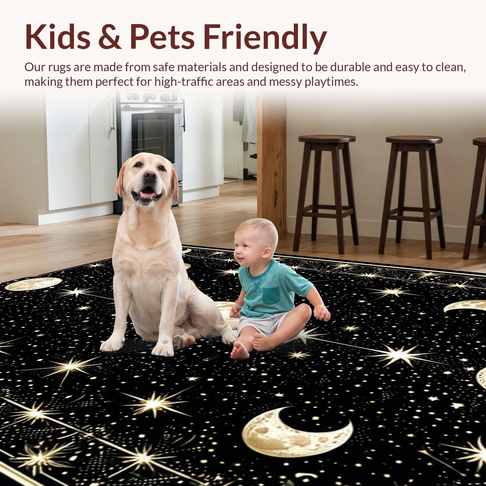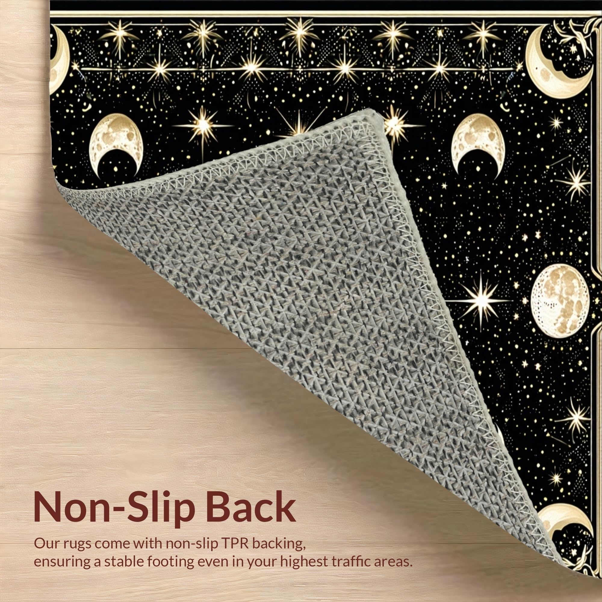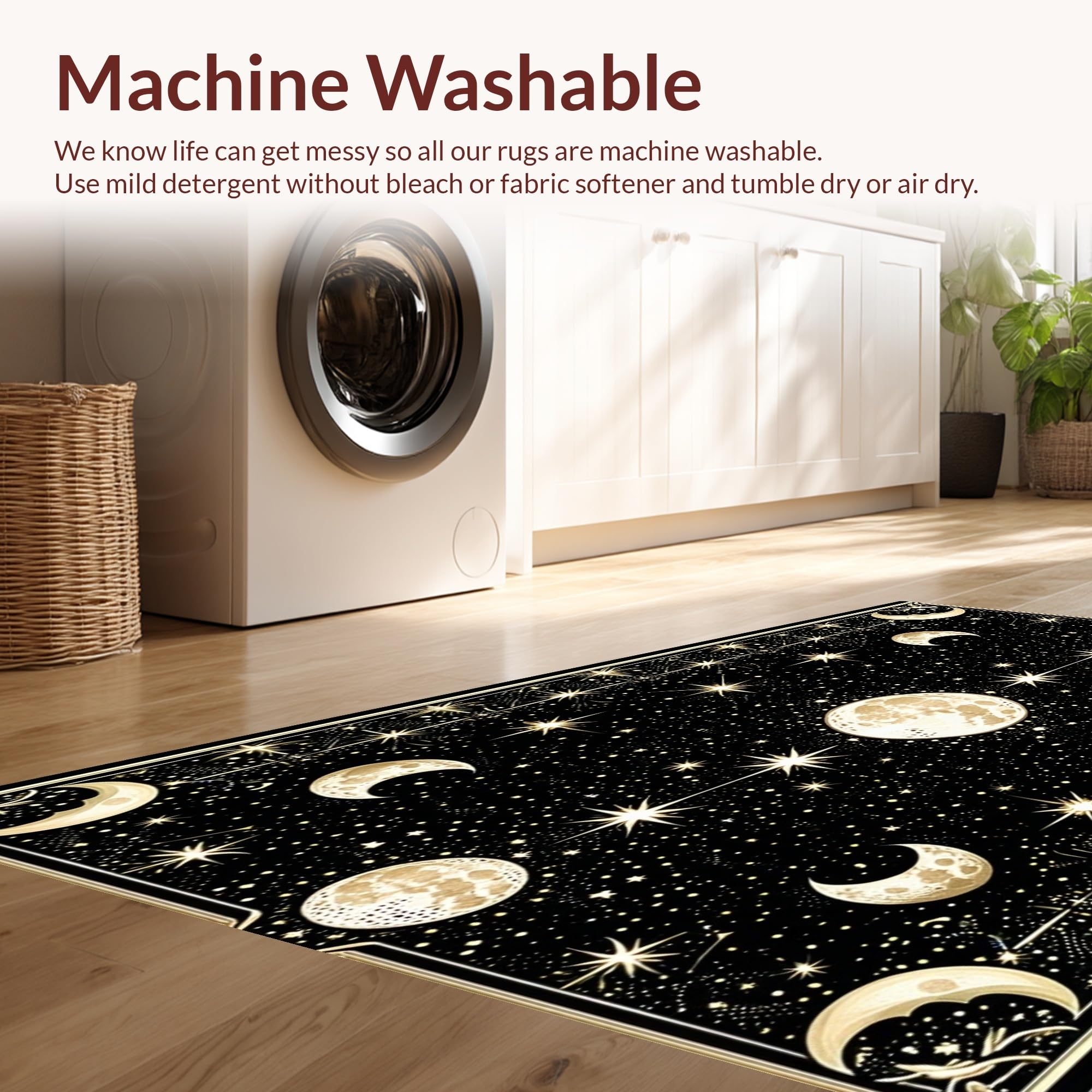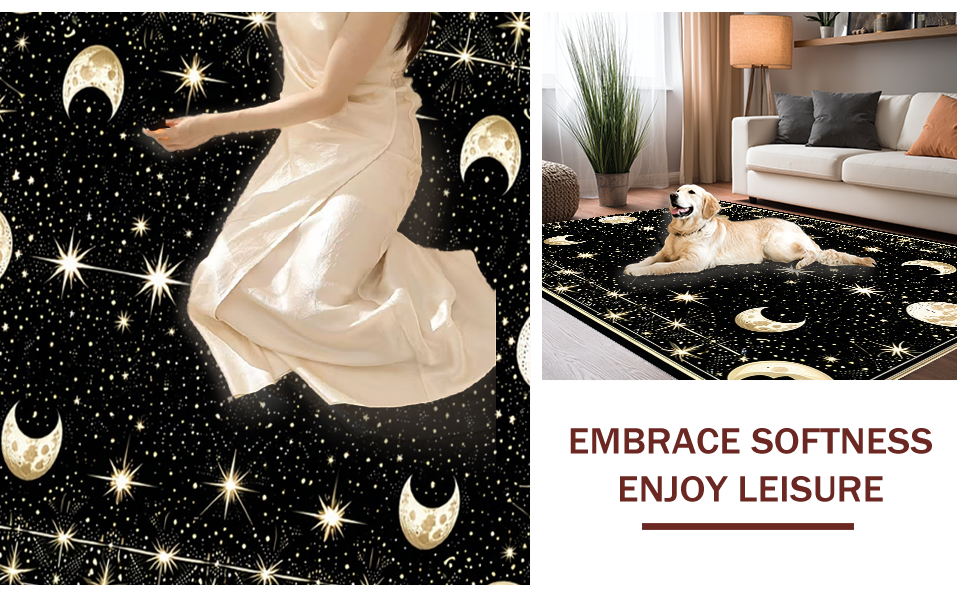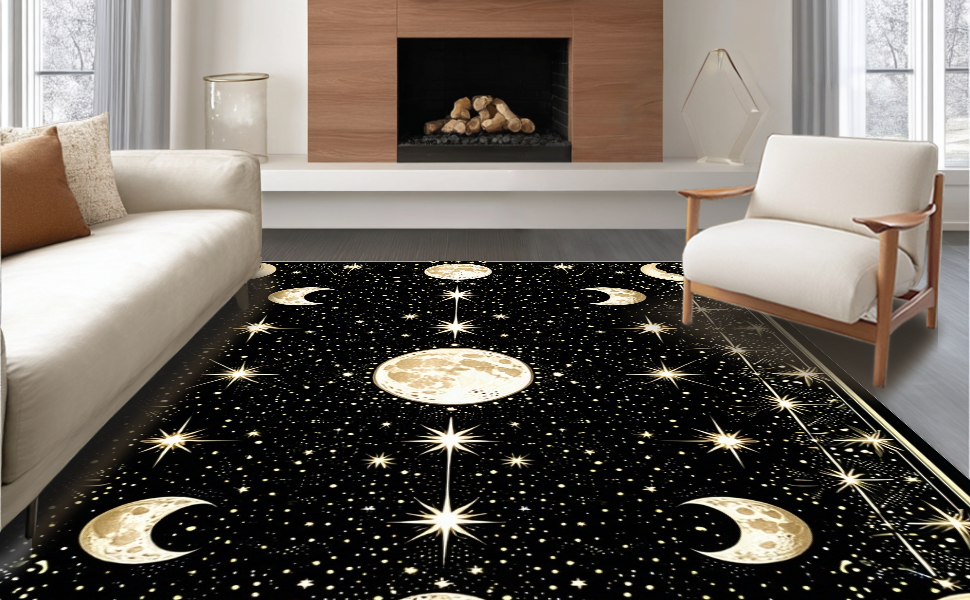 Ultra Soft Area Rug, Non Slip, Stain Resistant, Washable Area Rugs for Living Room, Bedroom, Ethereal Moonlit Geometric Allure(Black) Overview:
