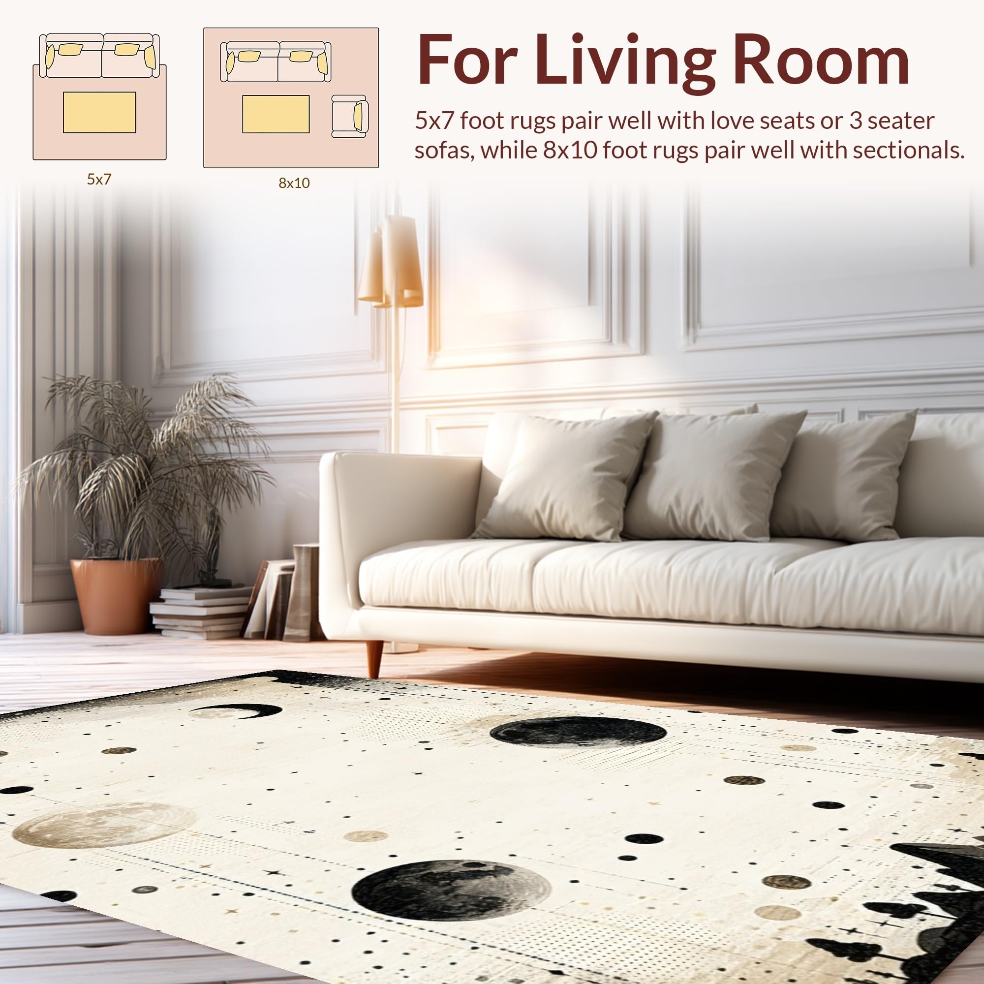 Ultra Soft Area Rug, Non Slip, Stain Resistant, Washable Area Rugs for Living Room, Bedroom, Ethereal Neutral Tasseled Artistry(Beige) Overview: