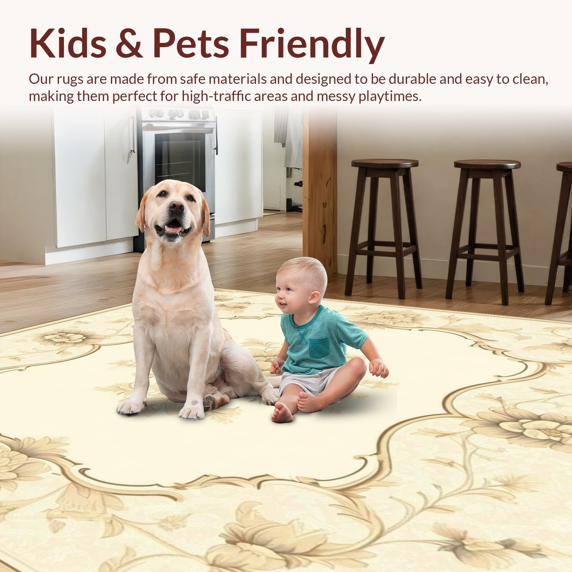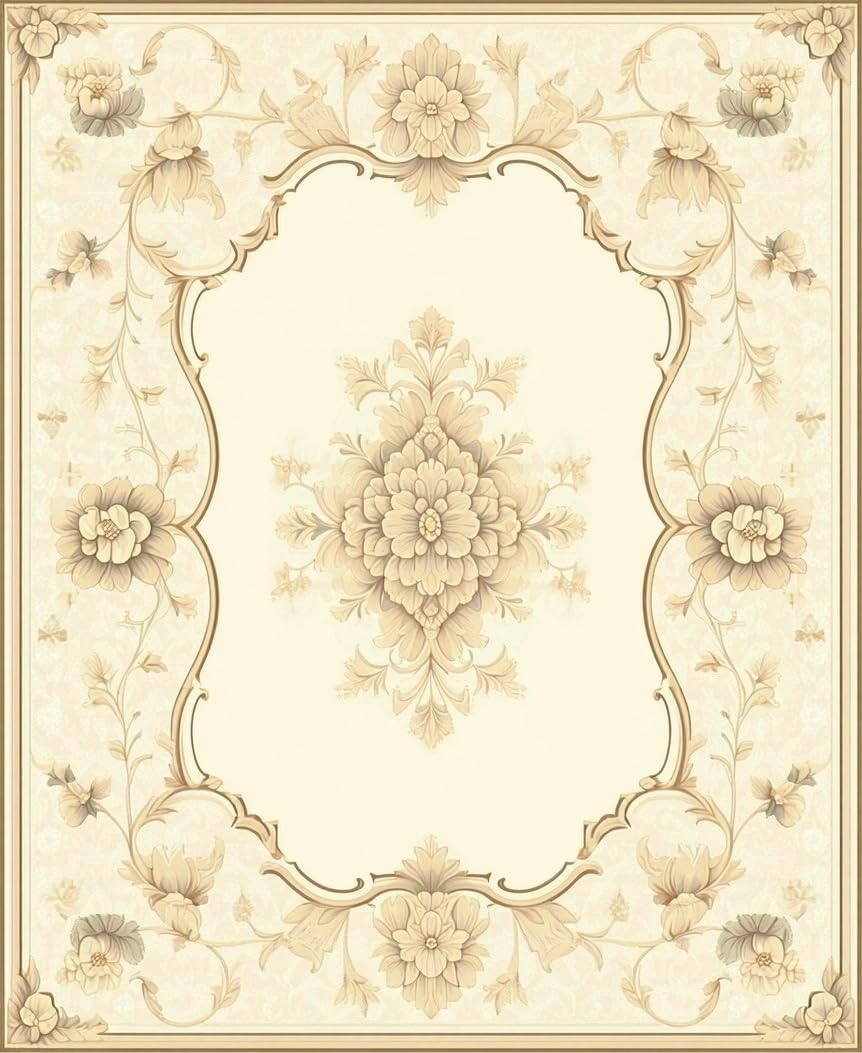 Ultra Soft Area Rug, Non Slip, Stain Resistant, Washable Area Rugs for Living Room, Bedroom, Ethereal Scallop Floral Medallion – Beige Area with Flowing Design(Beige) Overview: