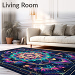 Flatwoven High Traffic Area Rug, Ethereal Spiral in Semi Circle Shape with Multicolor Galaxy Shades, Non Slip, Stain Resistant, Washable Area Rugs for Living Room, Bedroom (Blue) Overview: