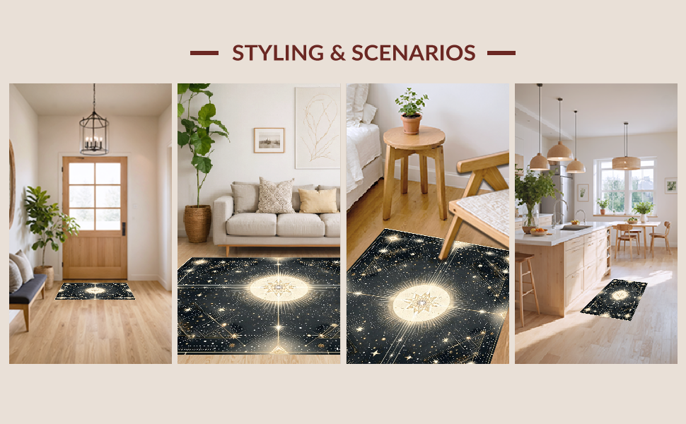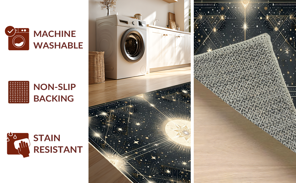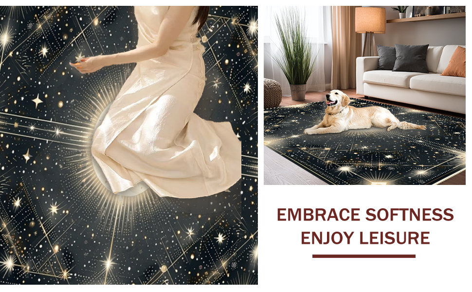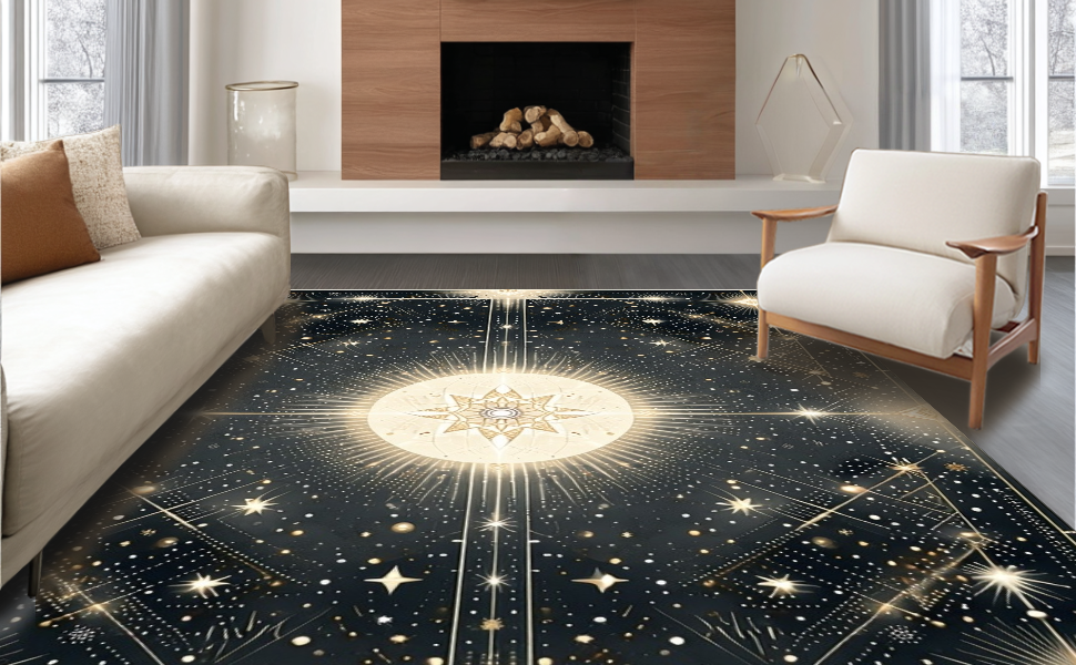 Ultra Soft Area Rug, Non Slip, Stain Resistant, Washable Area Rugs for Living Room, Bedroom, Ethereal Starry Night Aesthetic(Black) Overview: