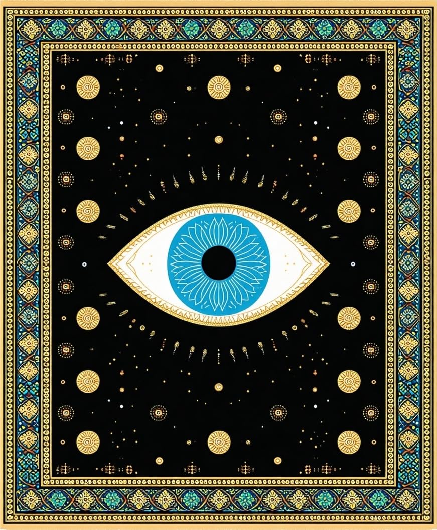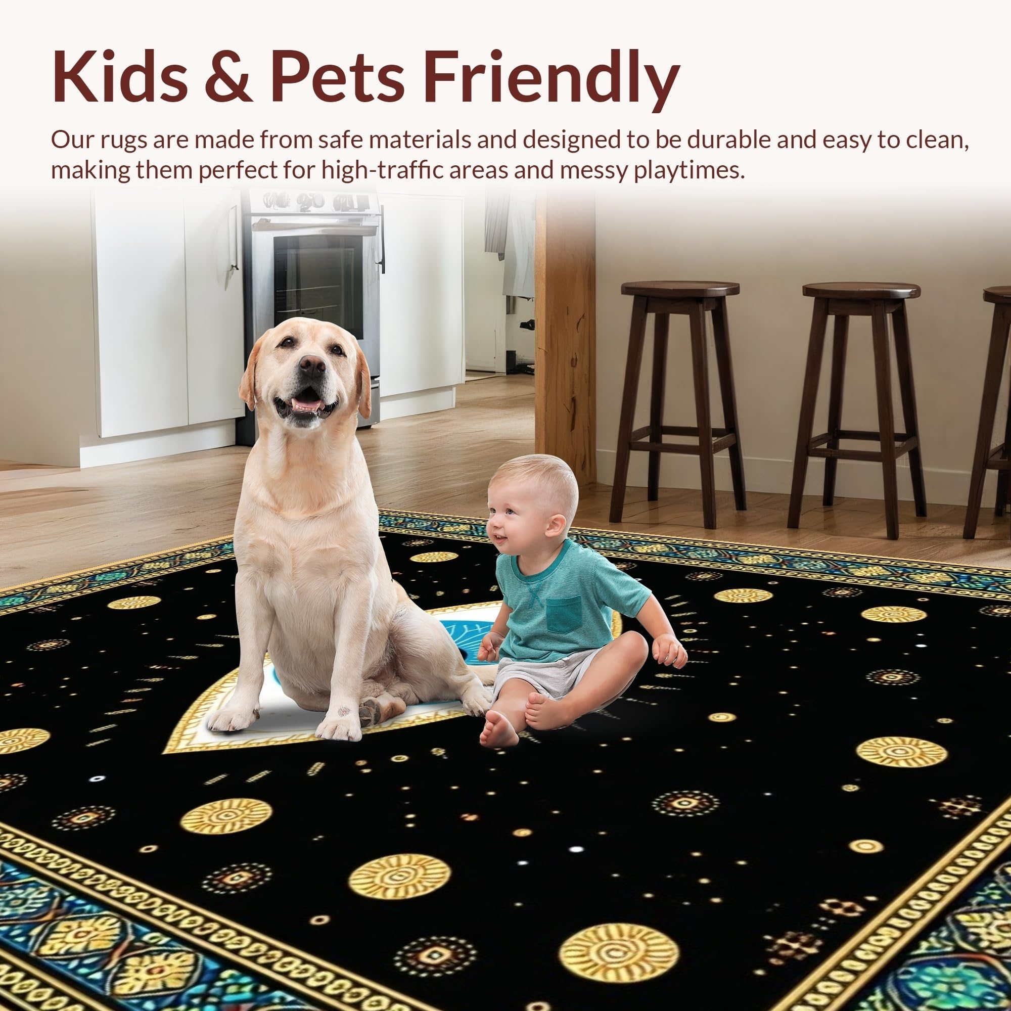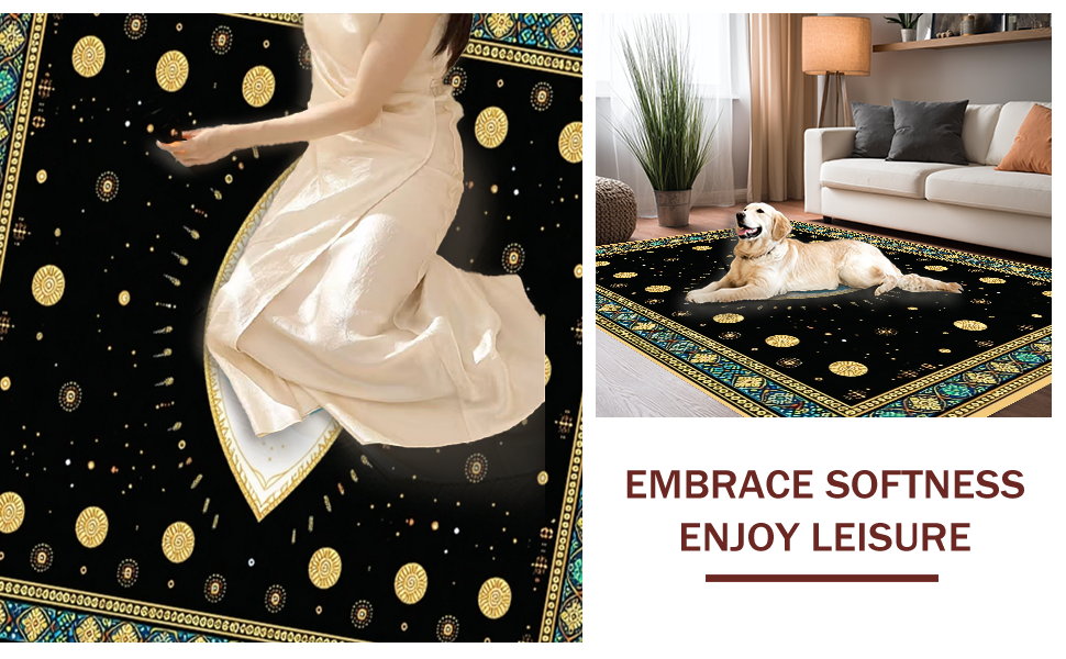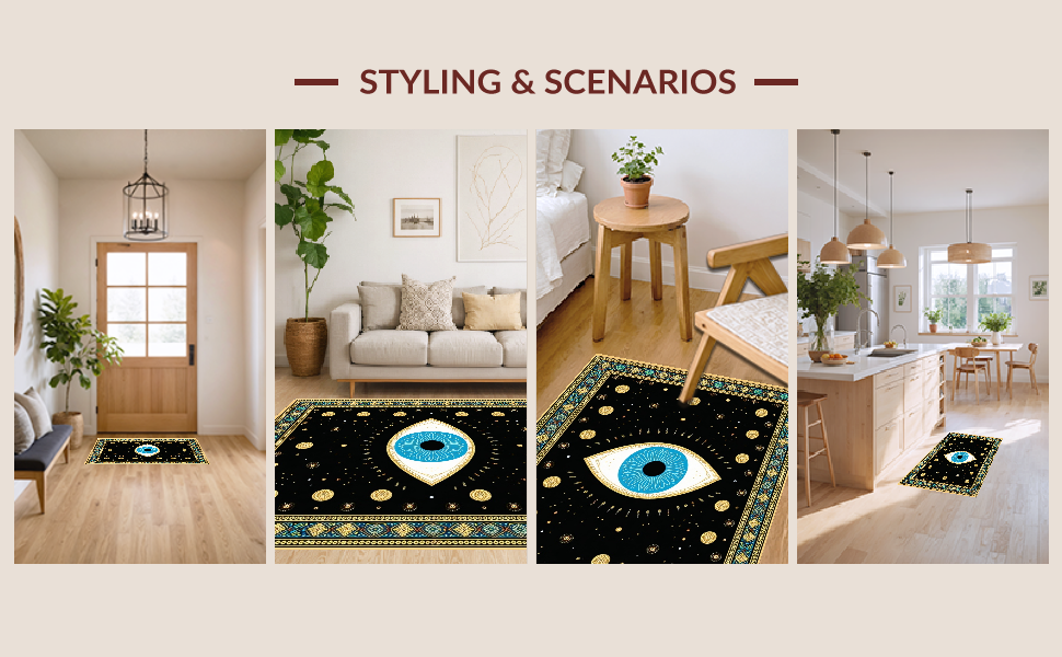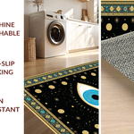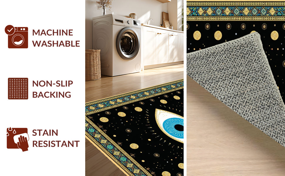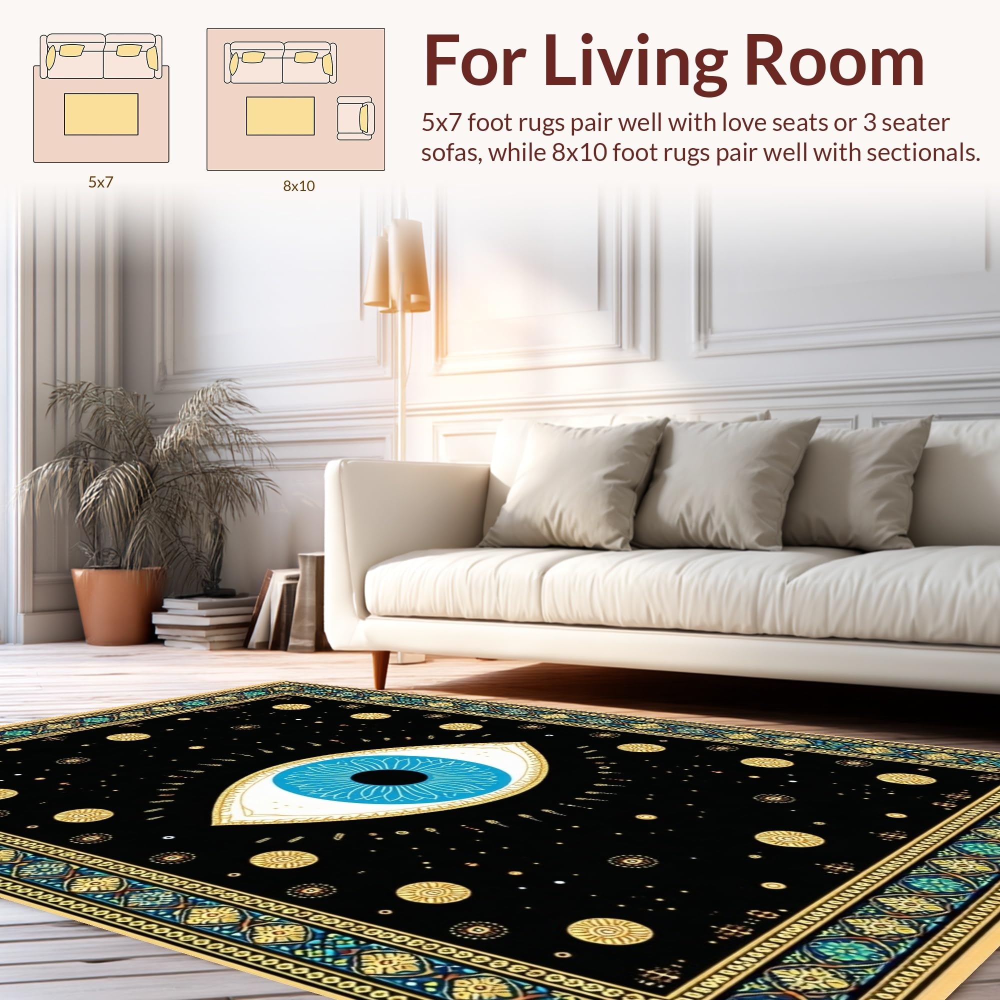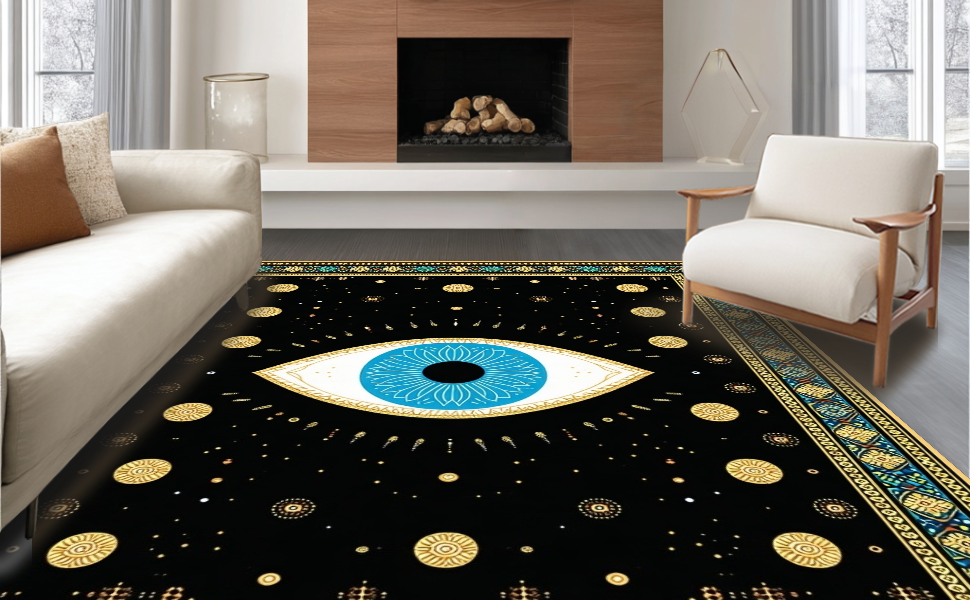 Ultra Soft Area Rug, Non Slip, Stain Resistant, Washable Area Rugs for Living Room, Bedroom, Ethnic Geometric Eye Symbol(Black) Overview: