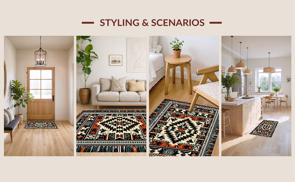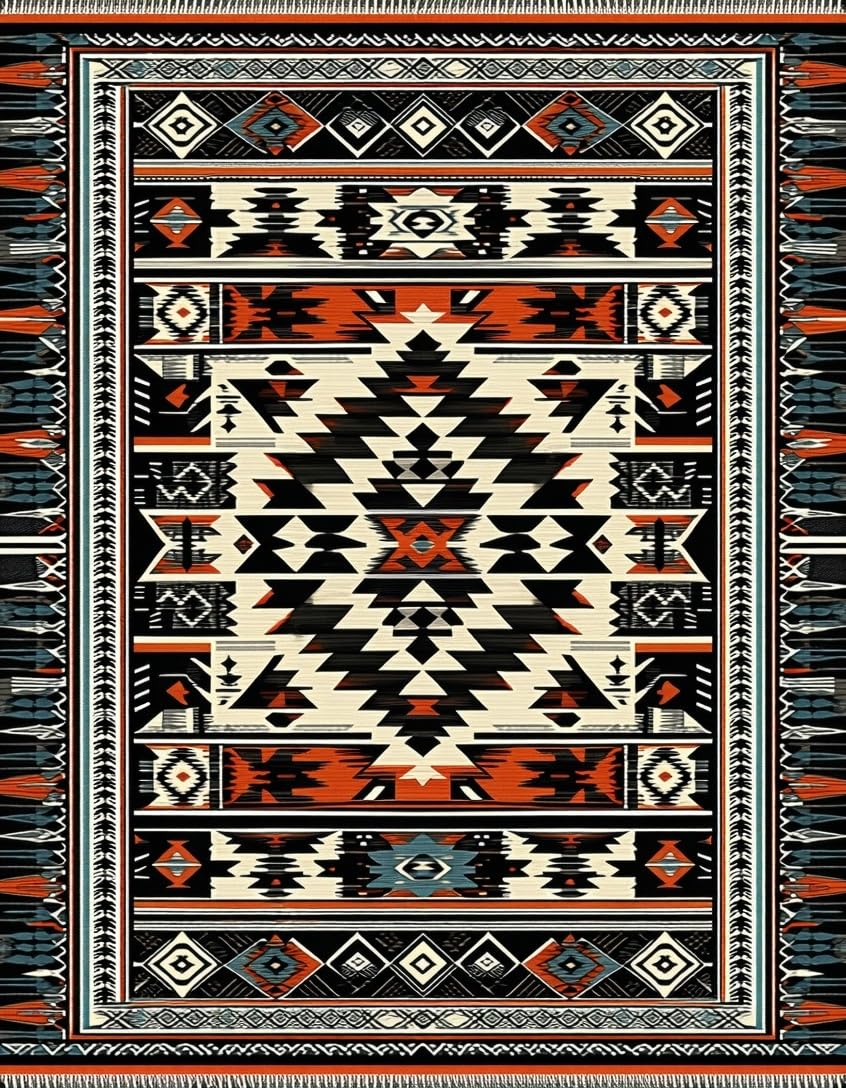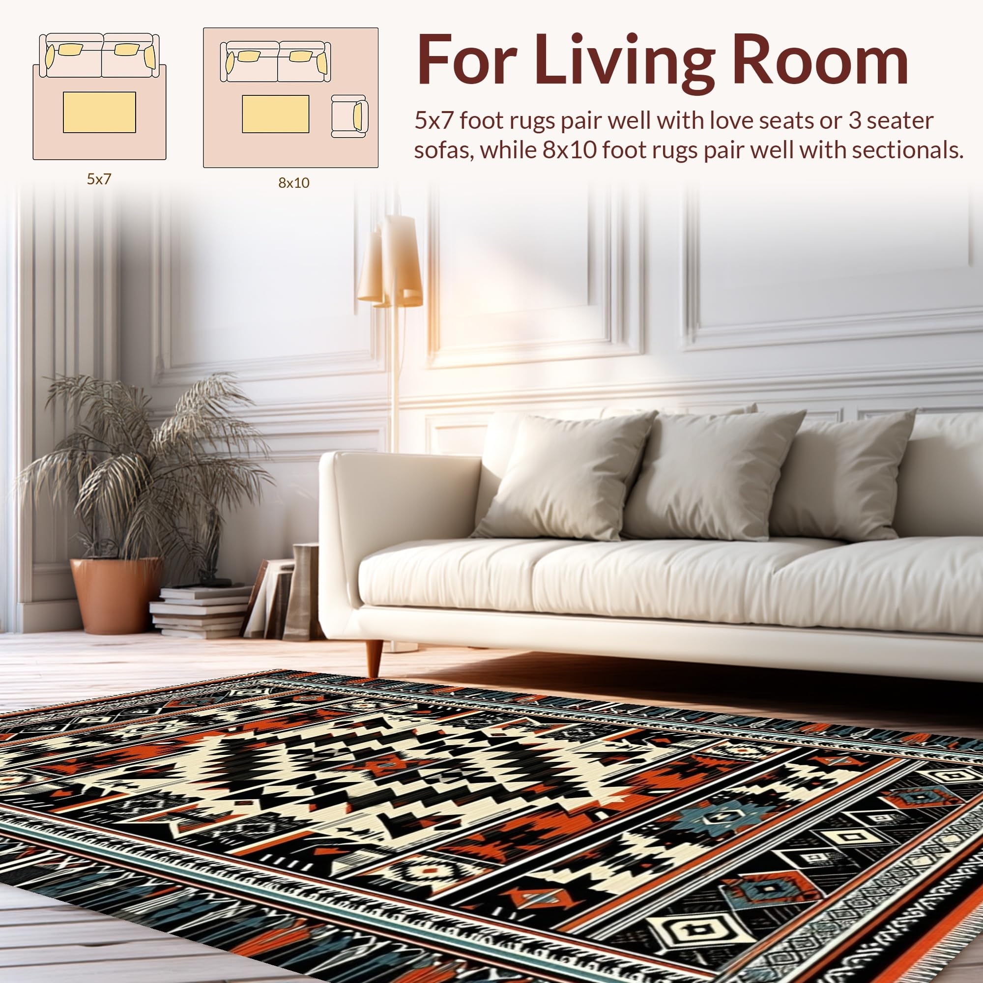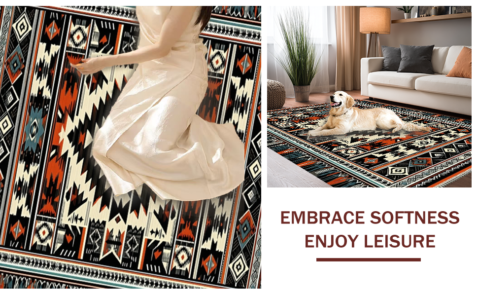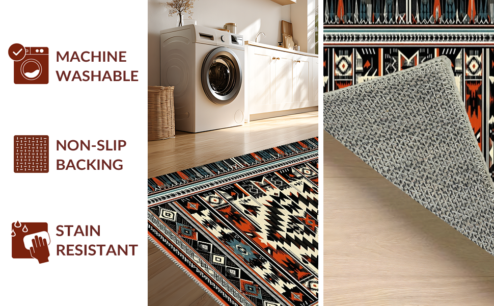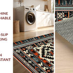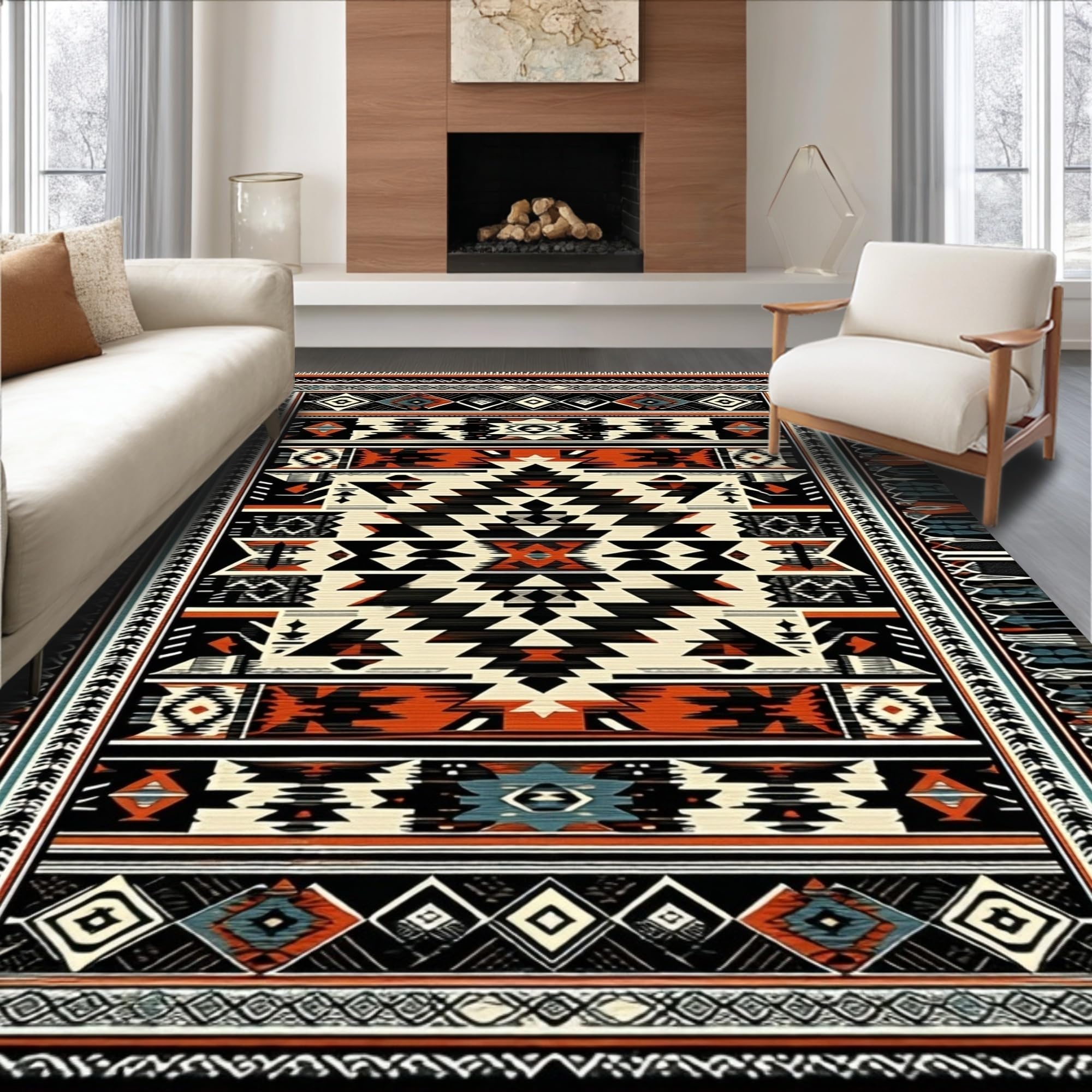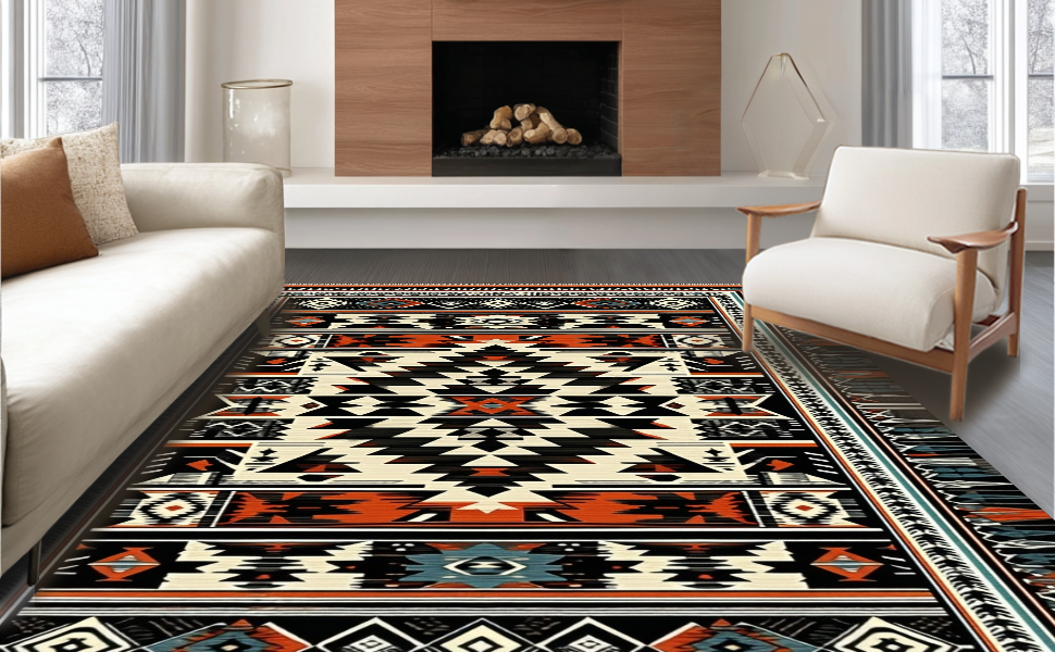 Ultra Soft Area Rug, Non Slip, Stain Resistant, Washable Area Rugs for Living Room, Bedroom, Ethnic Inspired Geometric Elegance(Black) Overview: