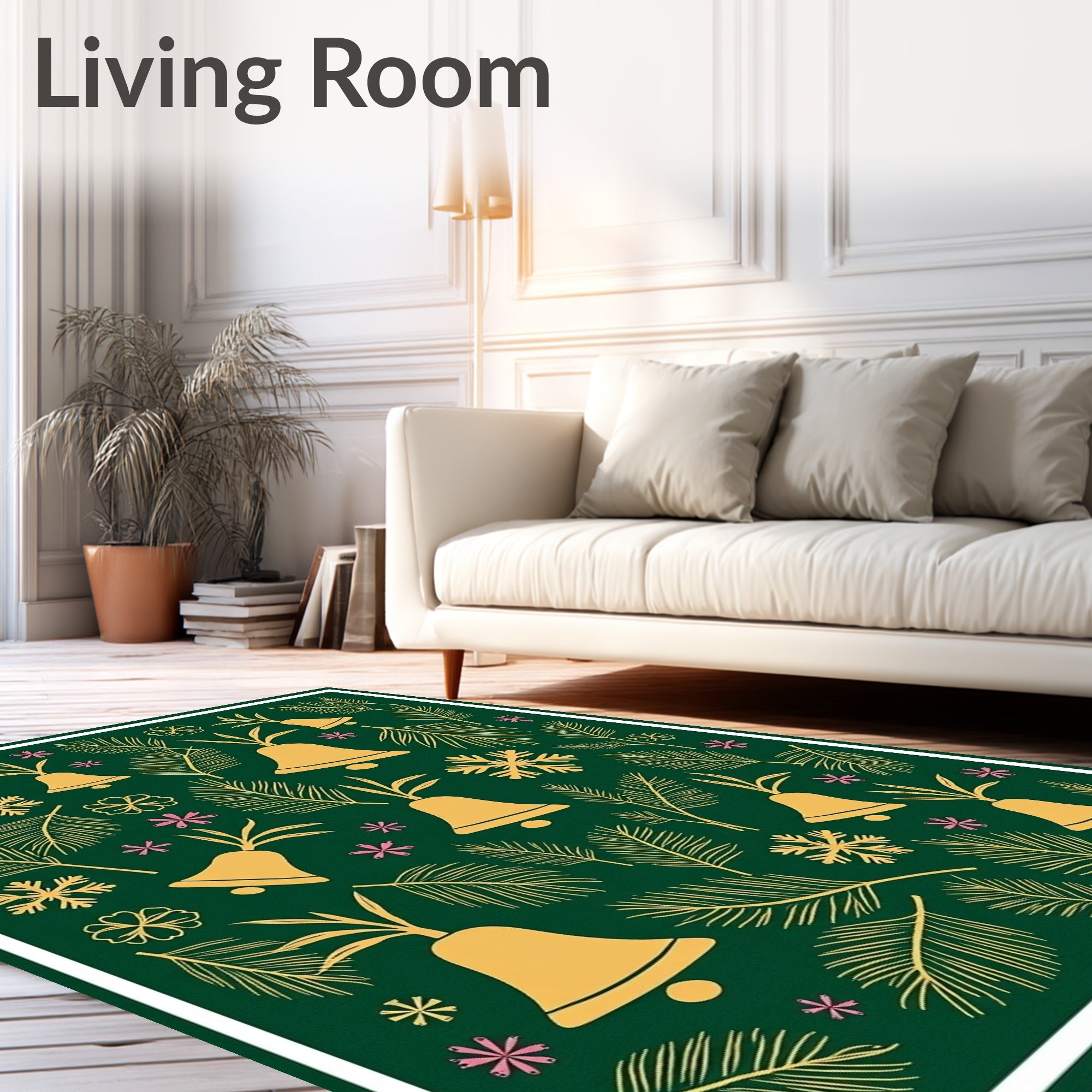 Ultra Soft Area Rug, Non Slip, Stain Resistant, Washable Area Rugs for Living Room, Bedroom, Evergreen Bough Interlocking Sleigh Bell Mosaic(Green) Overview: