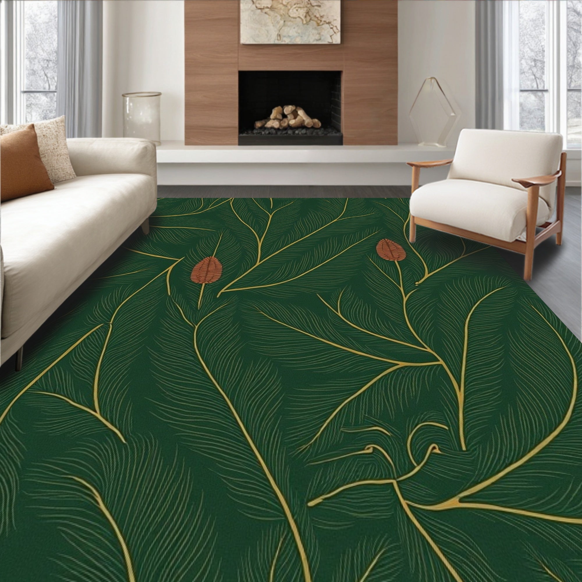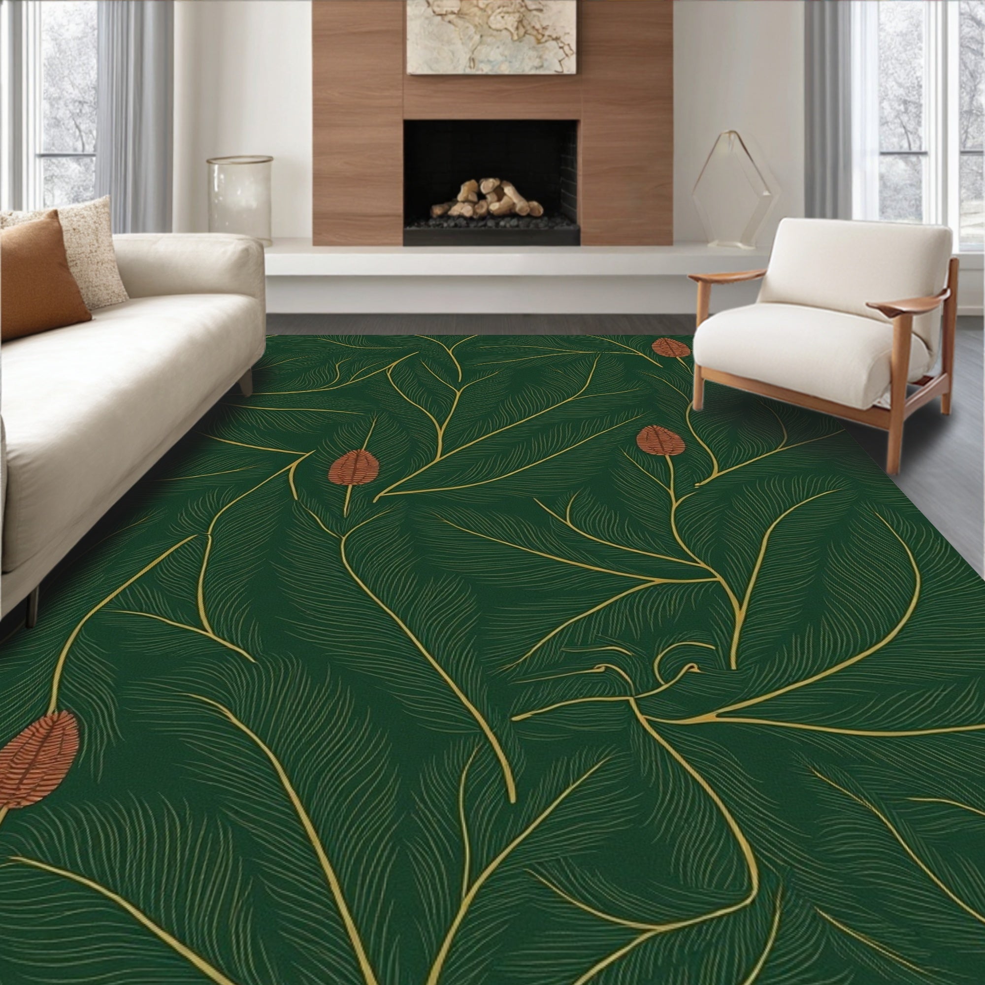 Ultra Soft Area Rug, Non Slip, Stain Resistant, Washable Area Rugs for Living Room, Bedroom, Evergreen Pine Branch Textured Accent(Green) Overview: