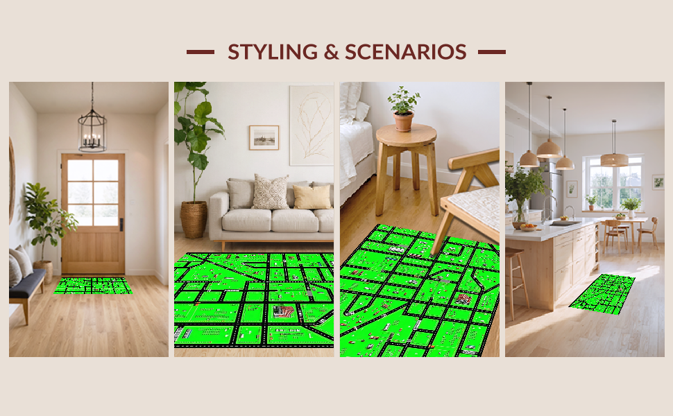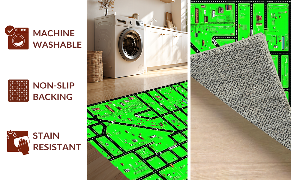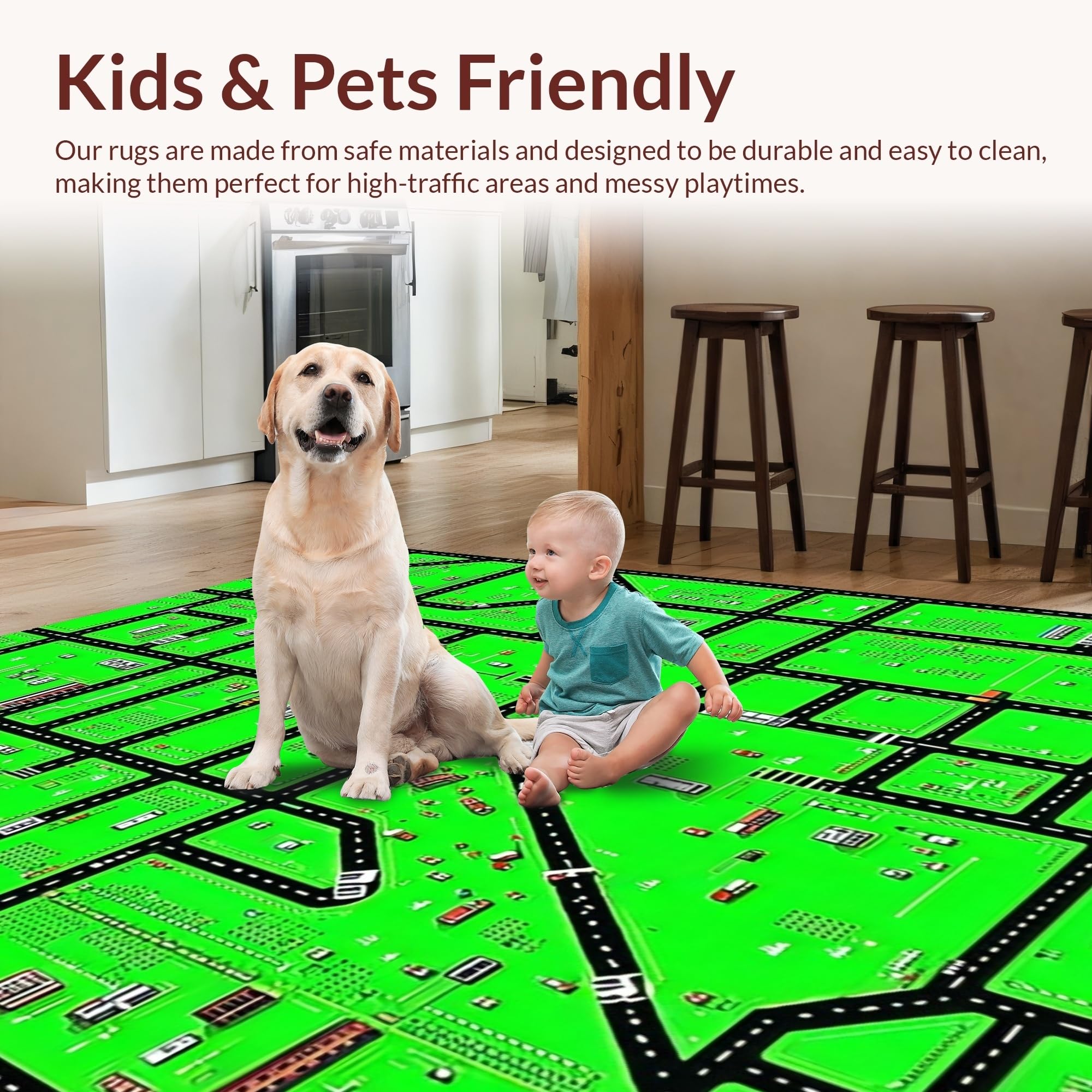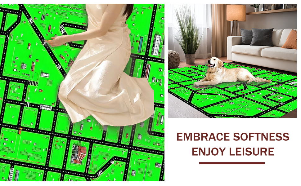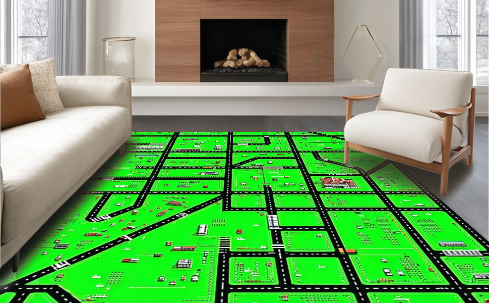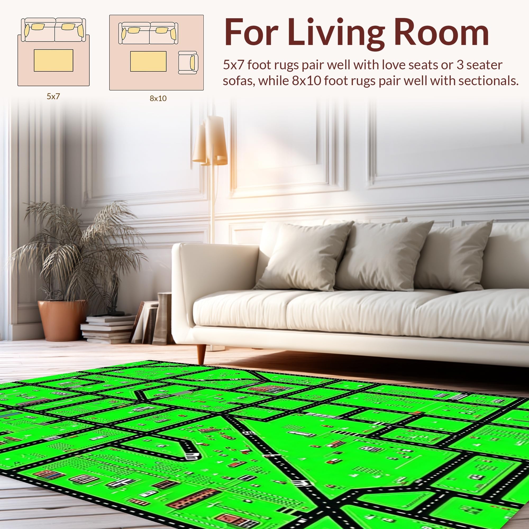 Ultra Soft Area Rug, Non Slip, Stain Resistant, Washable Area Rugs for Living Room, Bedroom, Exciting Traffic Route Design(Green) Overview: