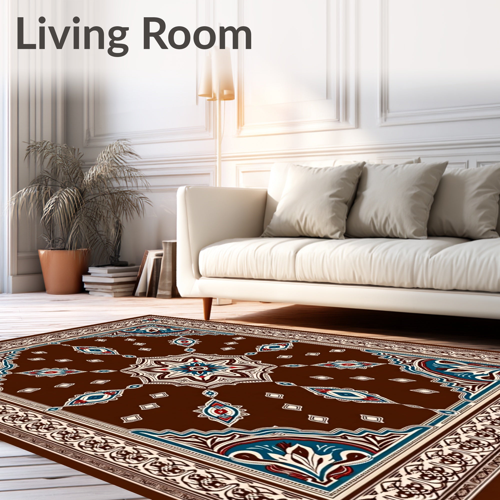 Ultra Soft Area Rug, Non Slip, Stain Resistant, Washable Area Rugs for Living Room, Bedroom, Exotic Bazaar Jewel Toned Decorative(Brown) Overview: