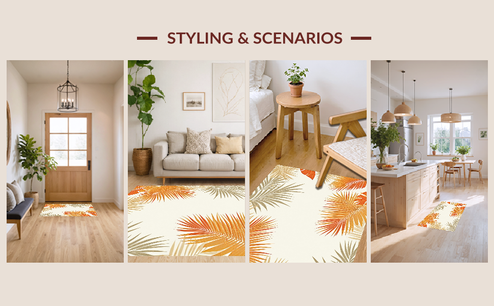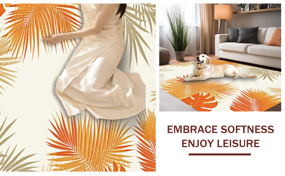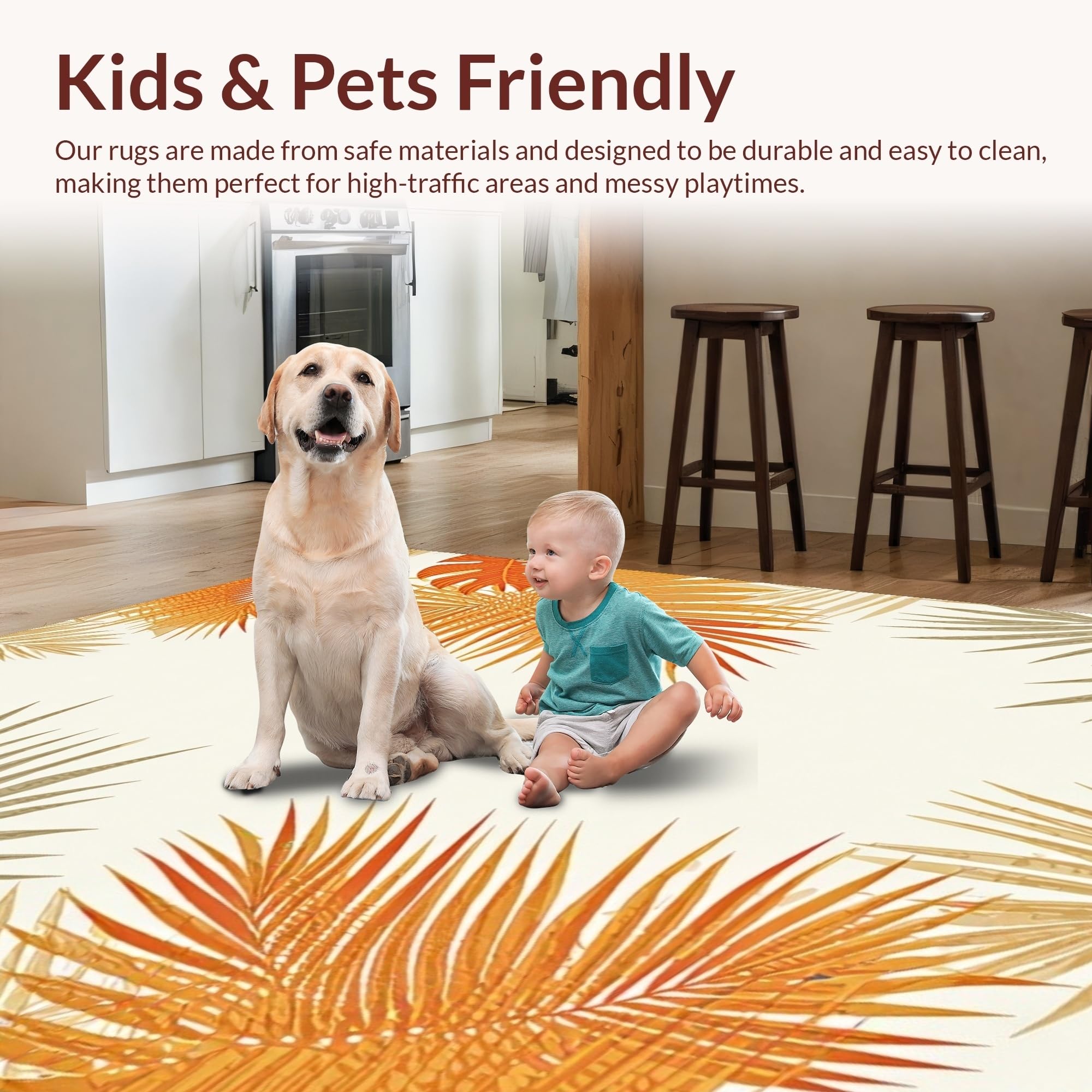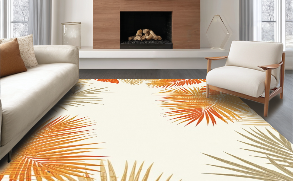 Ultra Soft Area Rug, Non Slip, Stain Resistant, Washable Area Rugs for Living Room, Bedroom, Exotic Colorful Botanical Fusion(Beige) Overview: