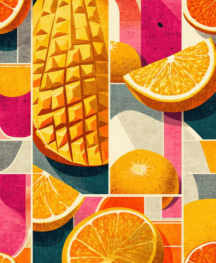 Exotic Fruit Fusion Area Rug Colorful Tropical Circle Floor Mat(Orange)