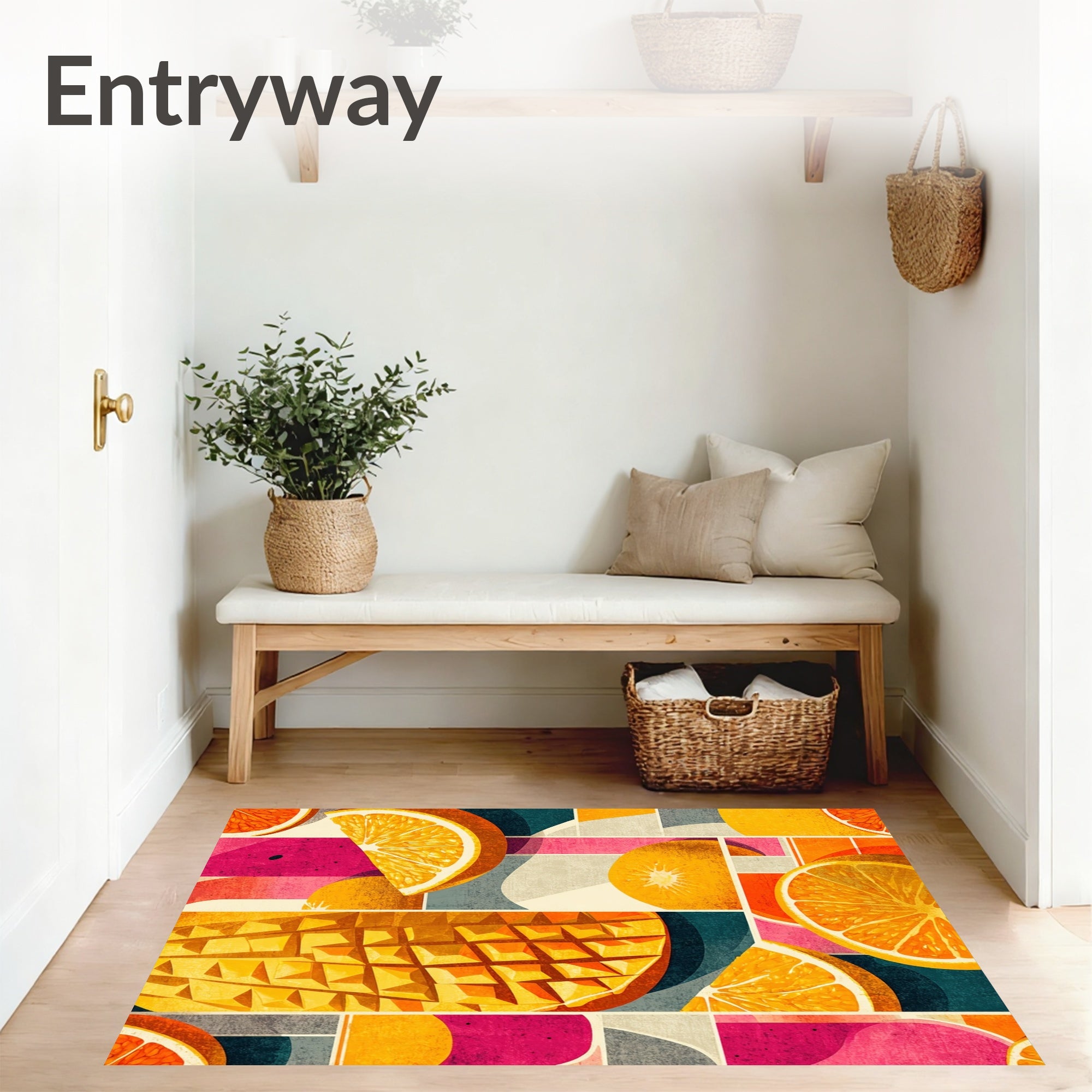 Ultra Soft Area Rug, Non Slip, Stain Resistant, Washable Area Rugs for Living Room, Bedroom, Exotic Fruit Fusion Area Rug, Colorful Tropical Circle Floor Mat(Orange) Overview: