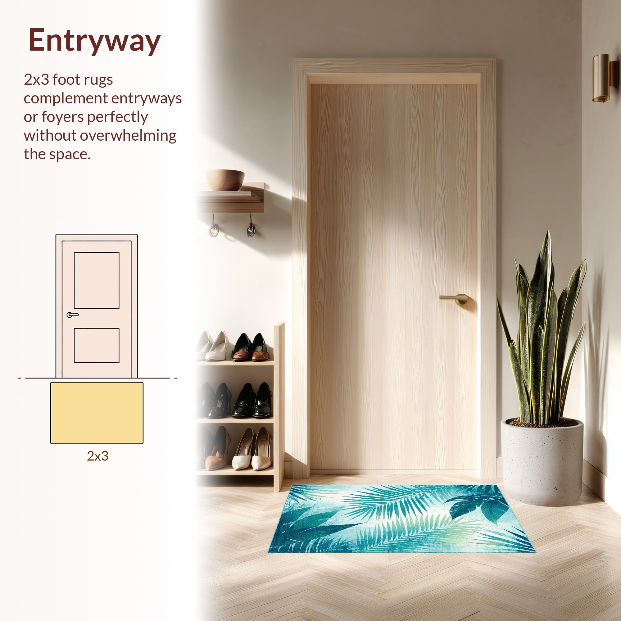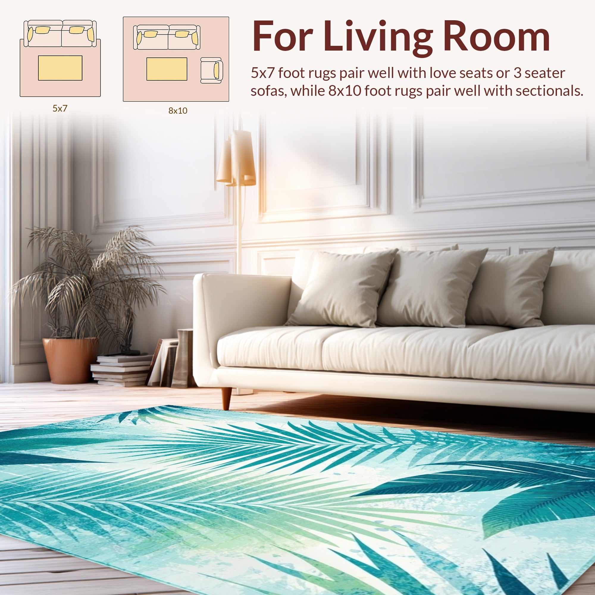 Ultra Soft Area Rug, Non Slip, Stain Resistant, Washable Area Rugs for Living Room, Bedroom, Exotic Lagoon Botanical Runner(Teal) Overview: