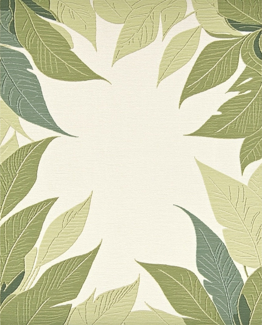 Exotic Leaf Motif Green Beige Botanical Garden Area(Beige)