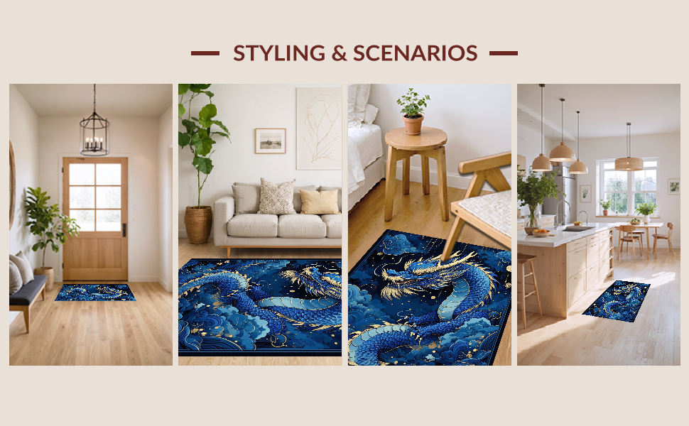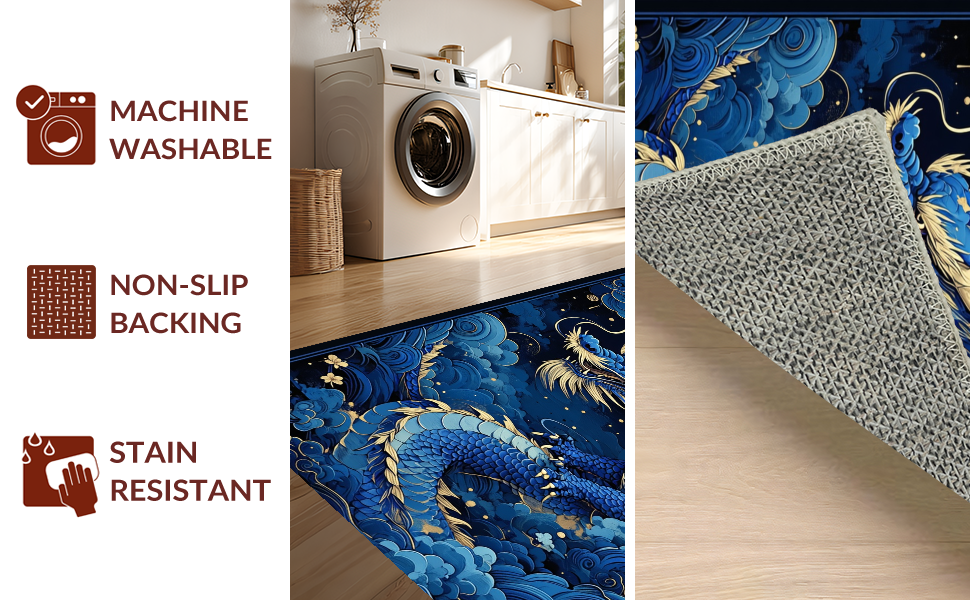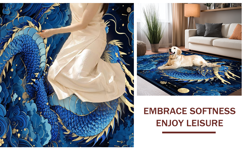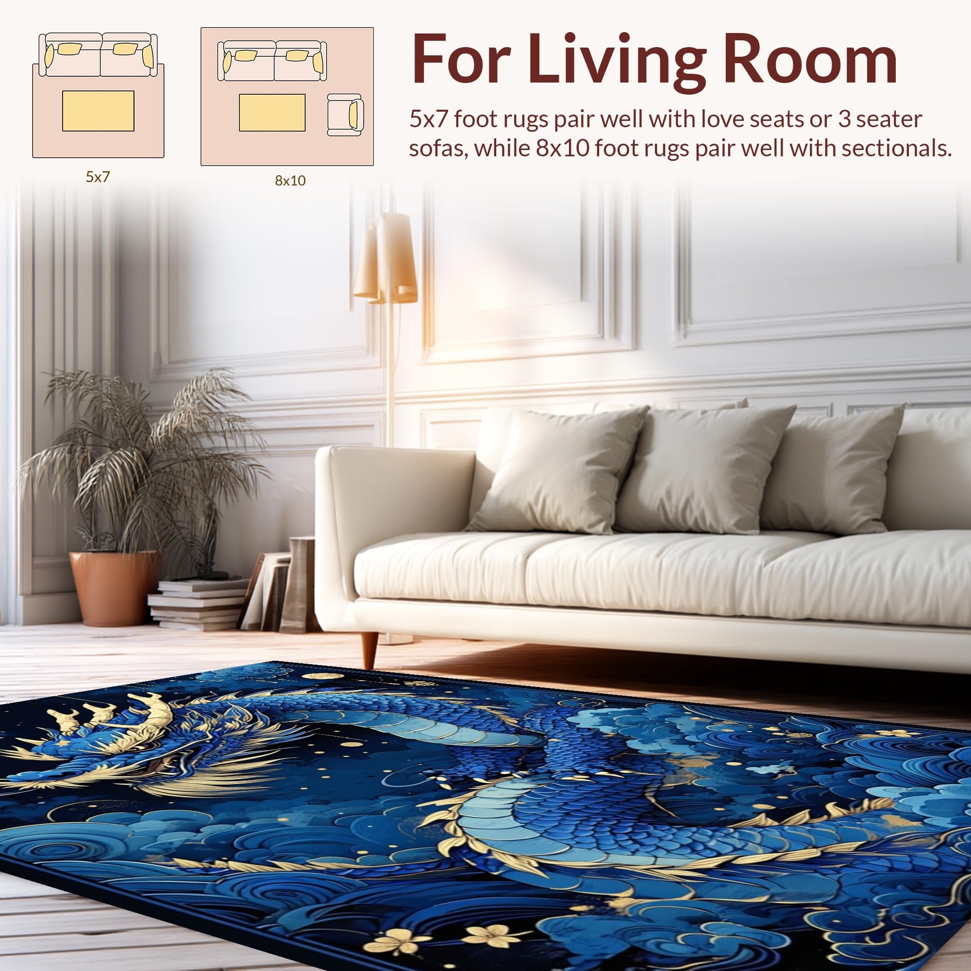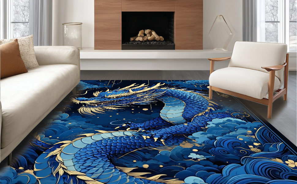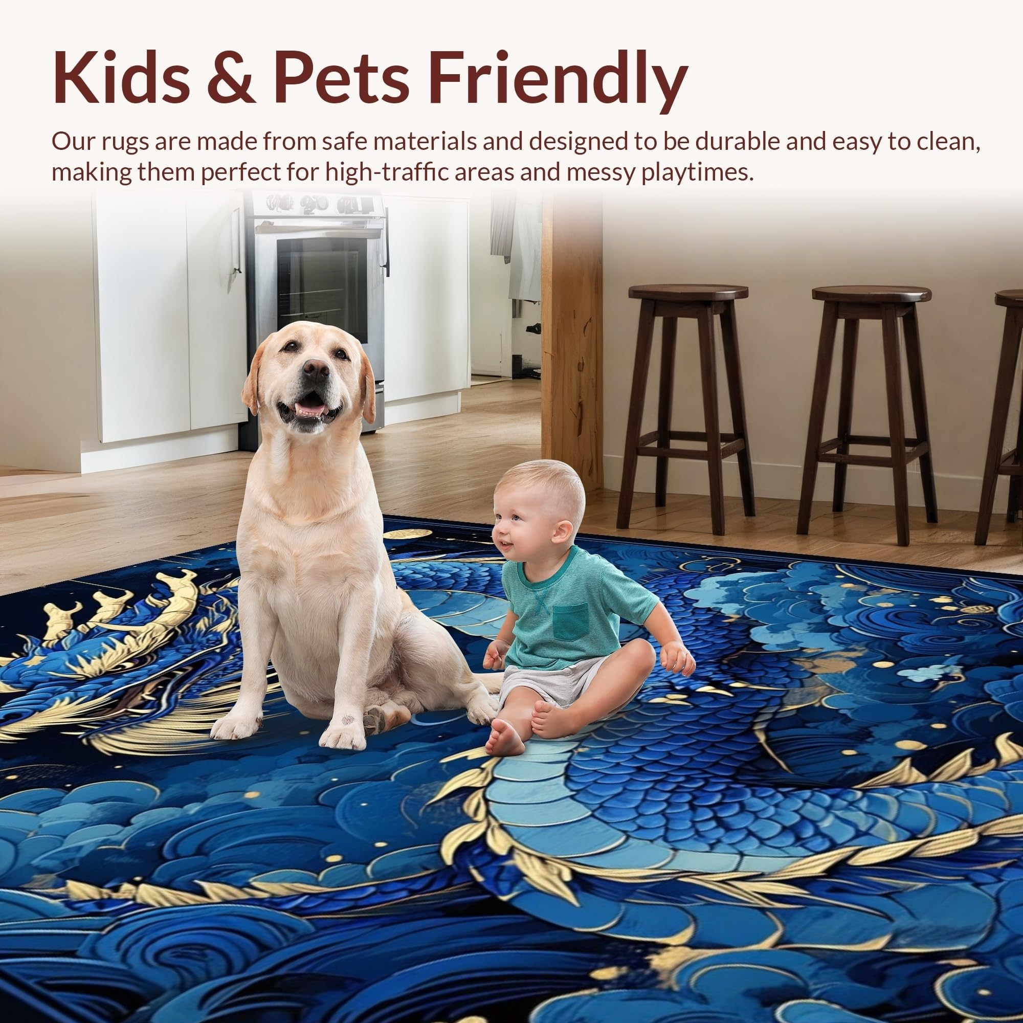 Ultra Soft Area Rug, Non Slip, Stain Resistant, Washable Area Rugs for Living Room, Bedroom, Exotic Mythical Creature Design(Blue) Overview: